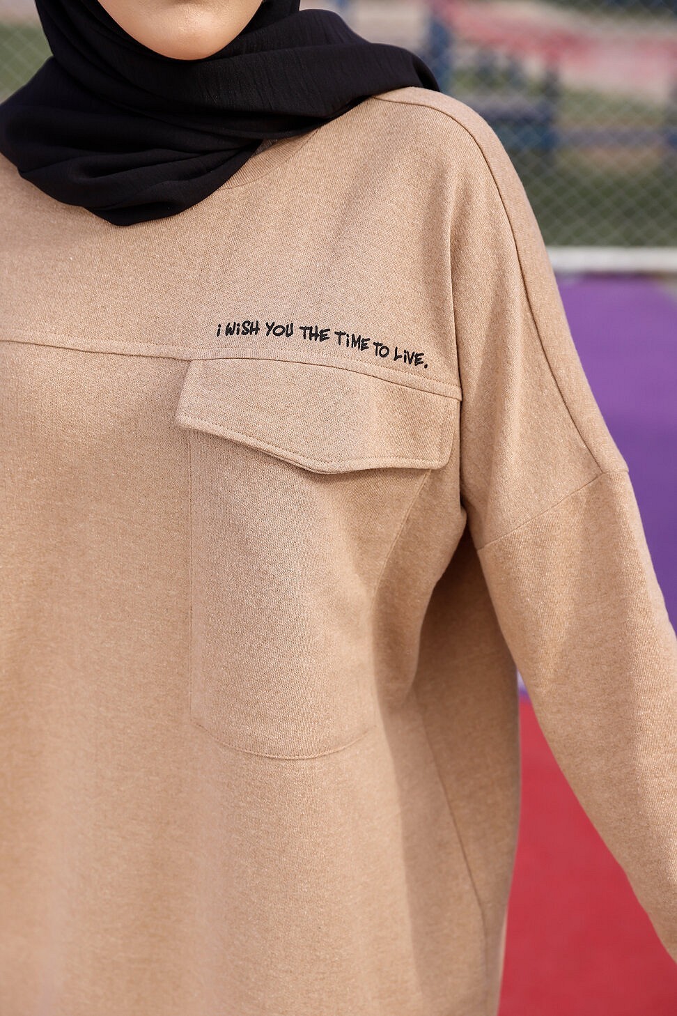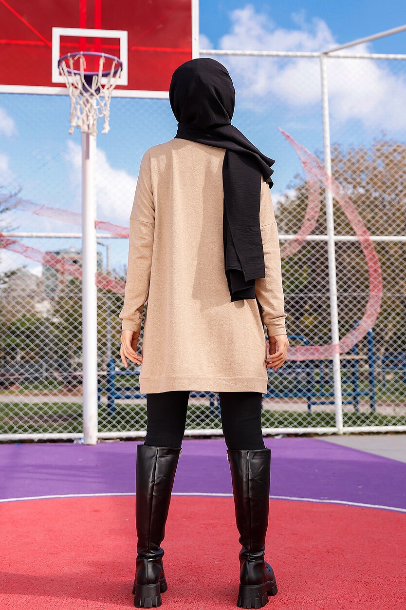 Tunique decontractee ample avec grande poche (Sweat femme Hijab) - Couleur vison