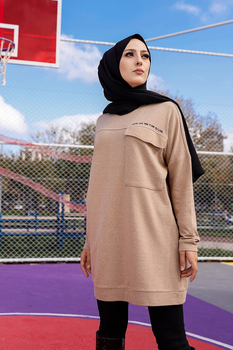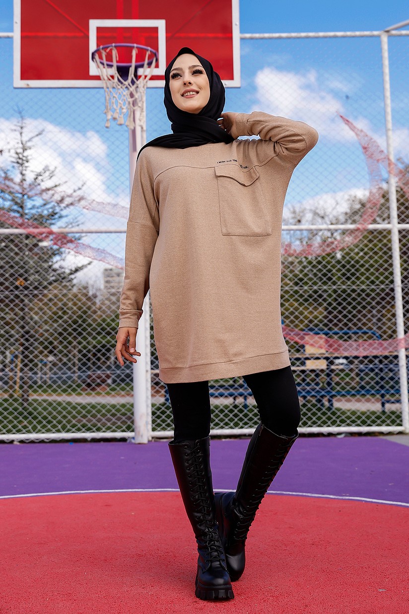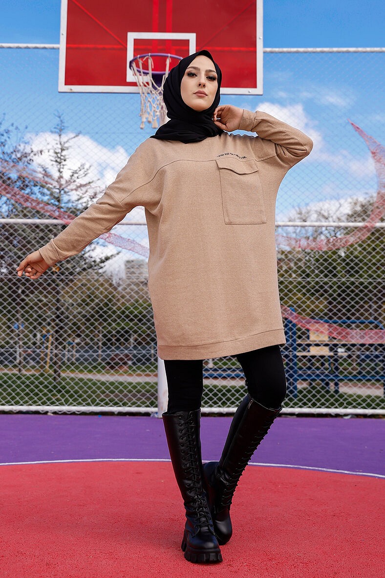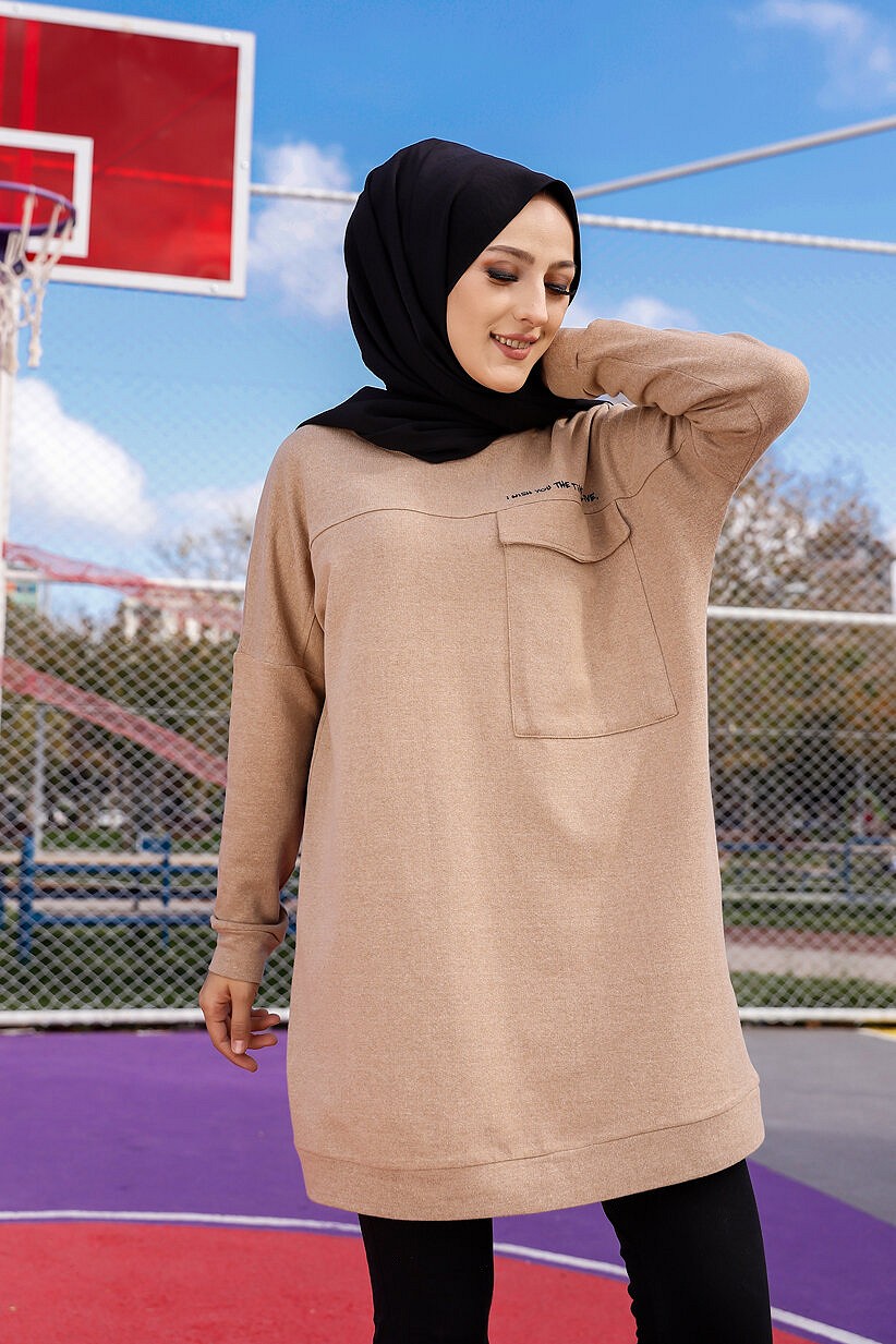 Tunique décontractée ample avec grande poche (Sweat femme Hijab) - Couleur vison Vetement & Accessoire