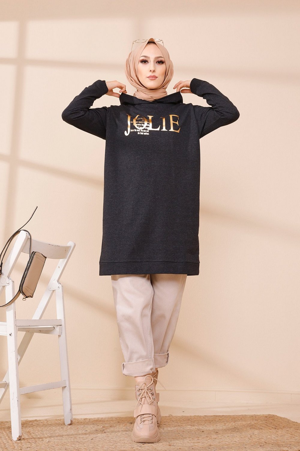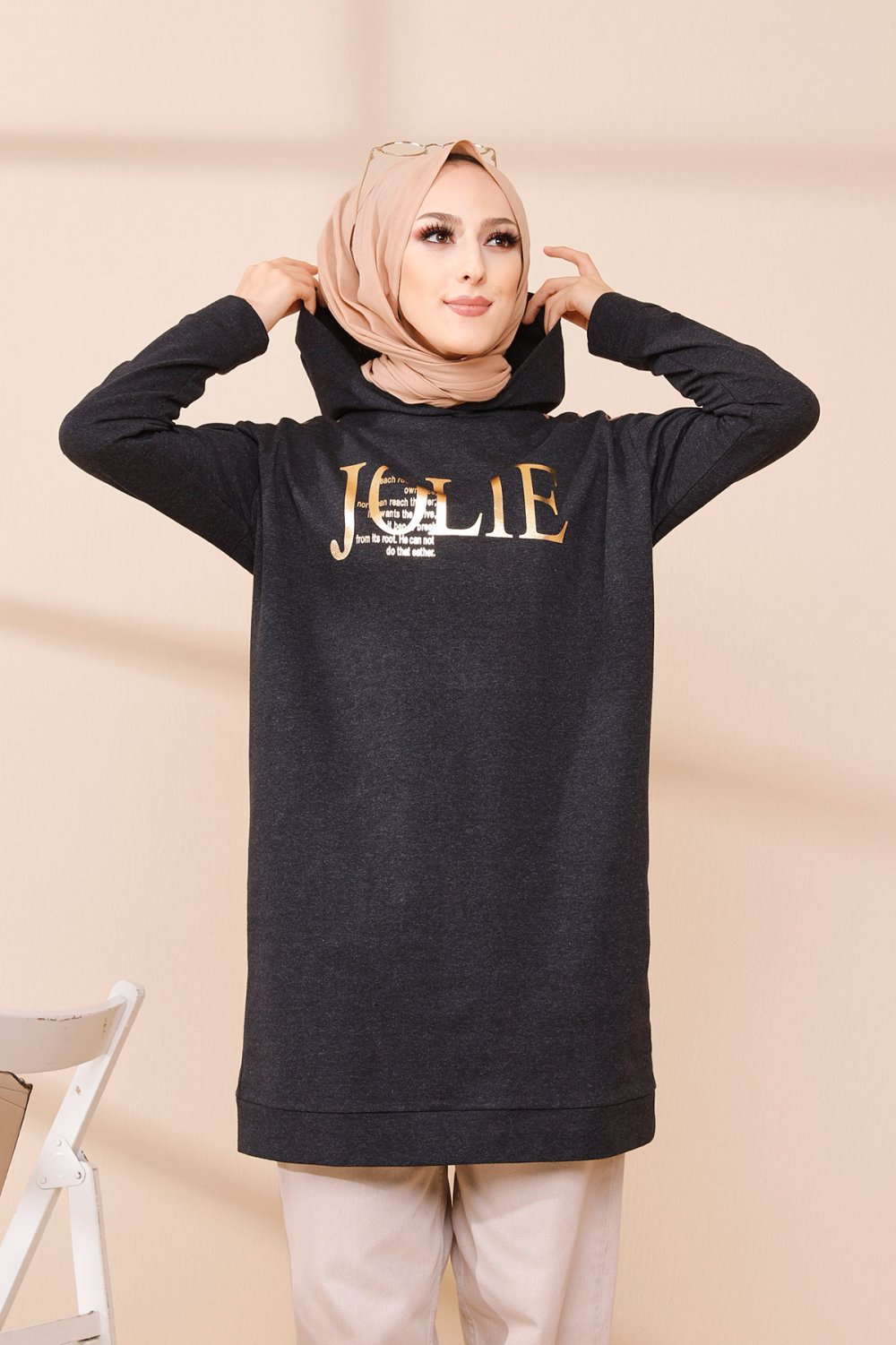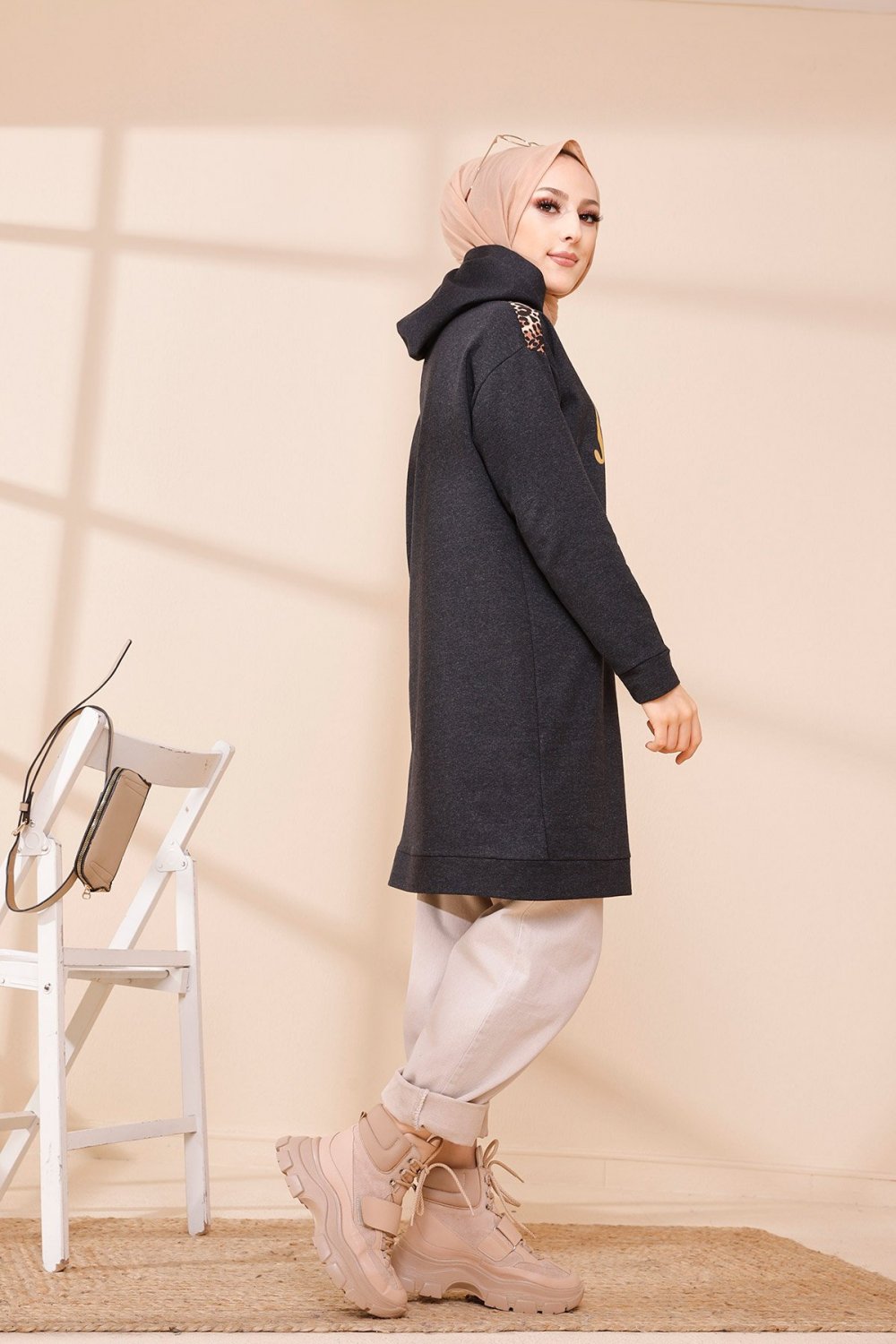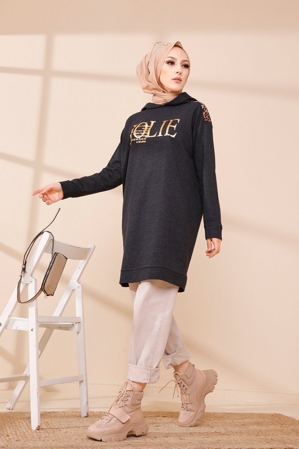 Tunique ample style décontracté et sport (Sweat Hijab moderne) - Couleur gris foncé - REF. 35506 (25.00 €) - En Promotion à 19.90 €