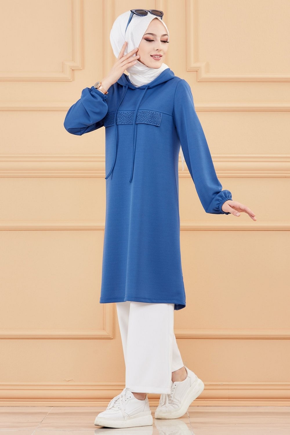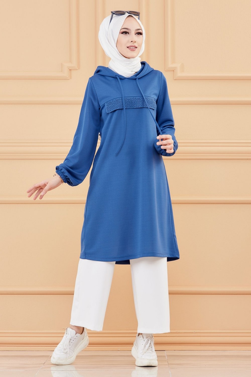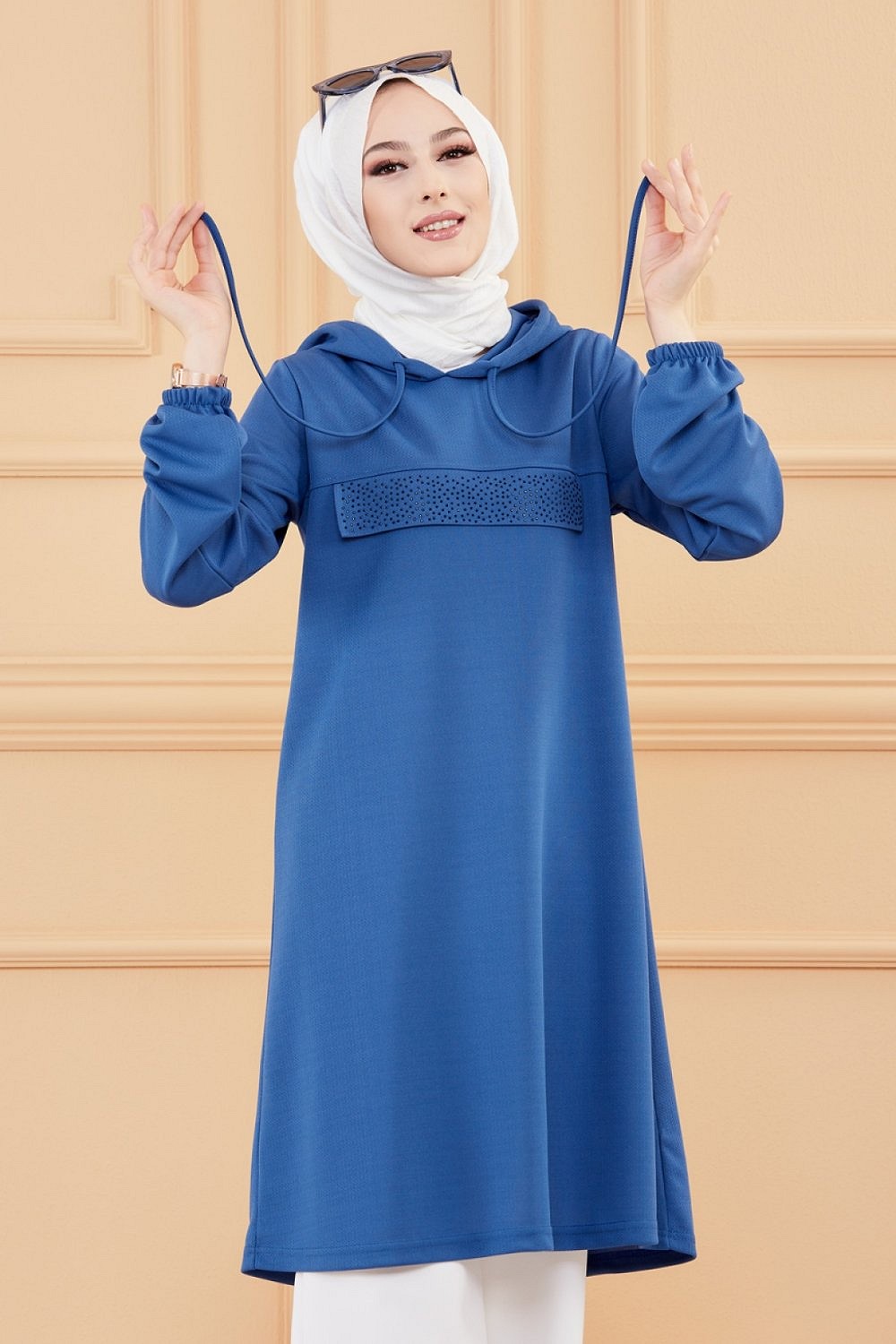 Tunique décontractée avec capuche (Vêtement moderne pour hijab) - Couleur bleu indigo Vetement & Accessoire