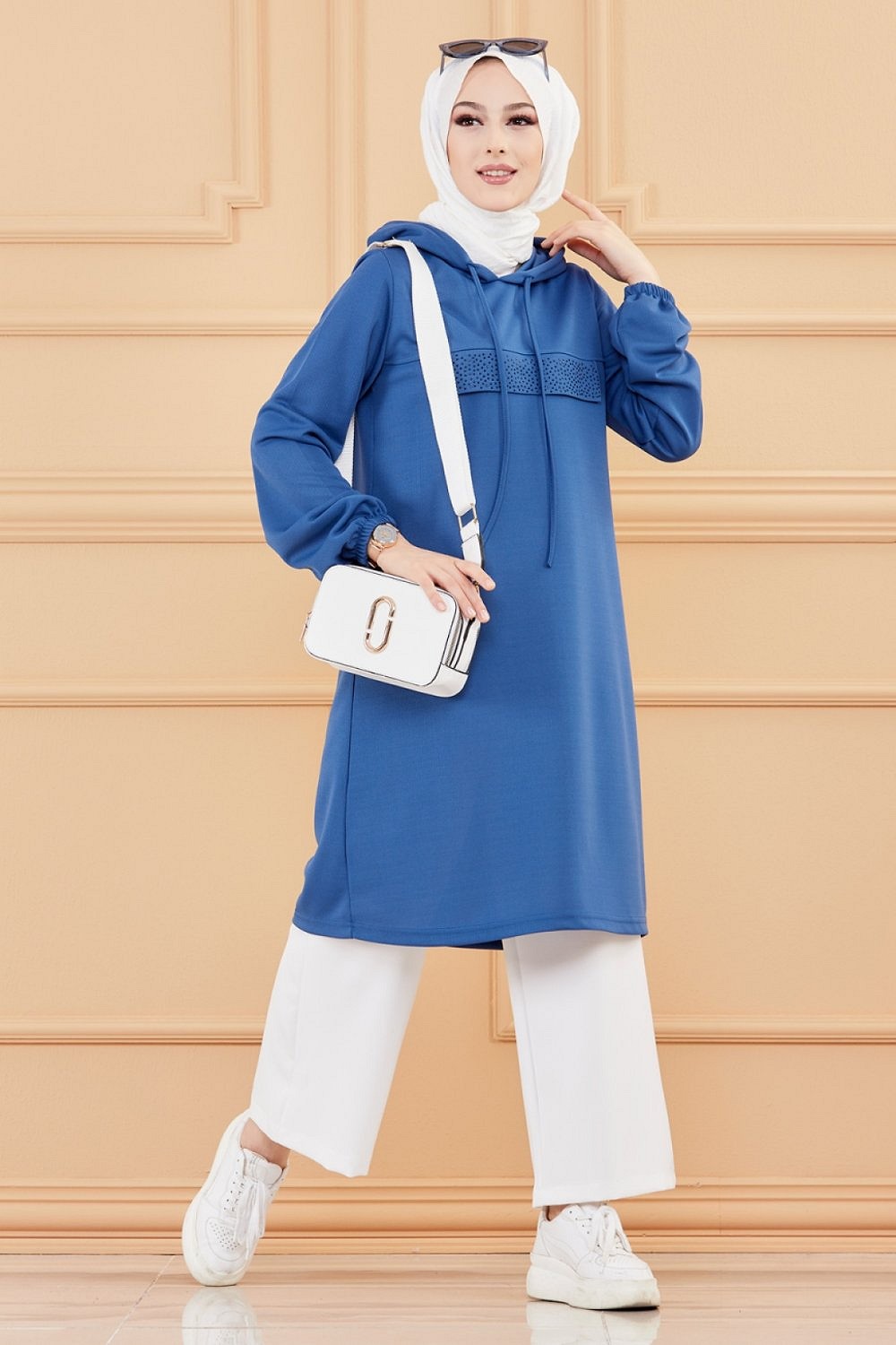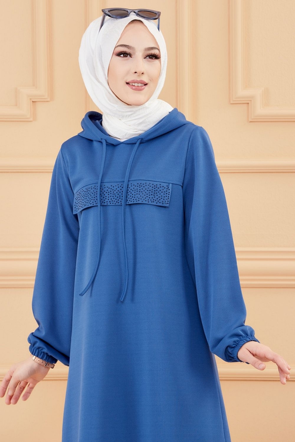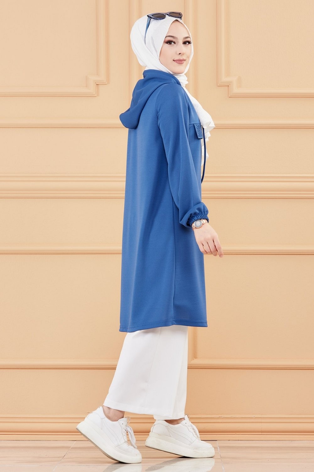 Tunique décontractée avec capuche (Vêtement moderne pour hijab) - Couleur bleu indigo Vetement & Accessoire