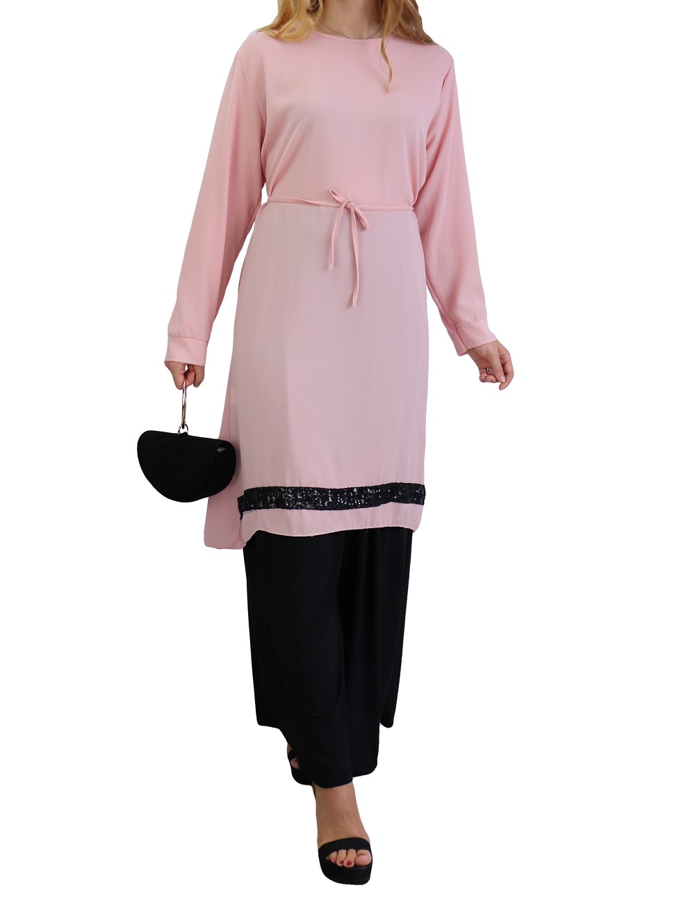 Tunique en crêpe avec strass noirs - Couleur Rose Vetement & Accessoire