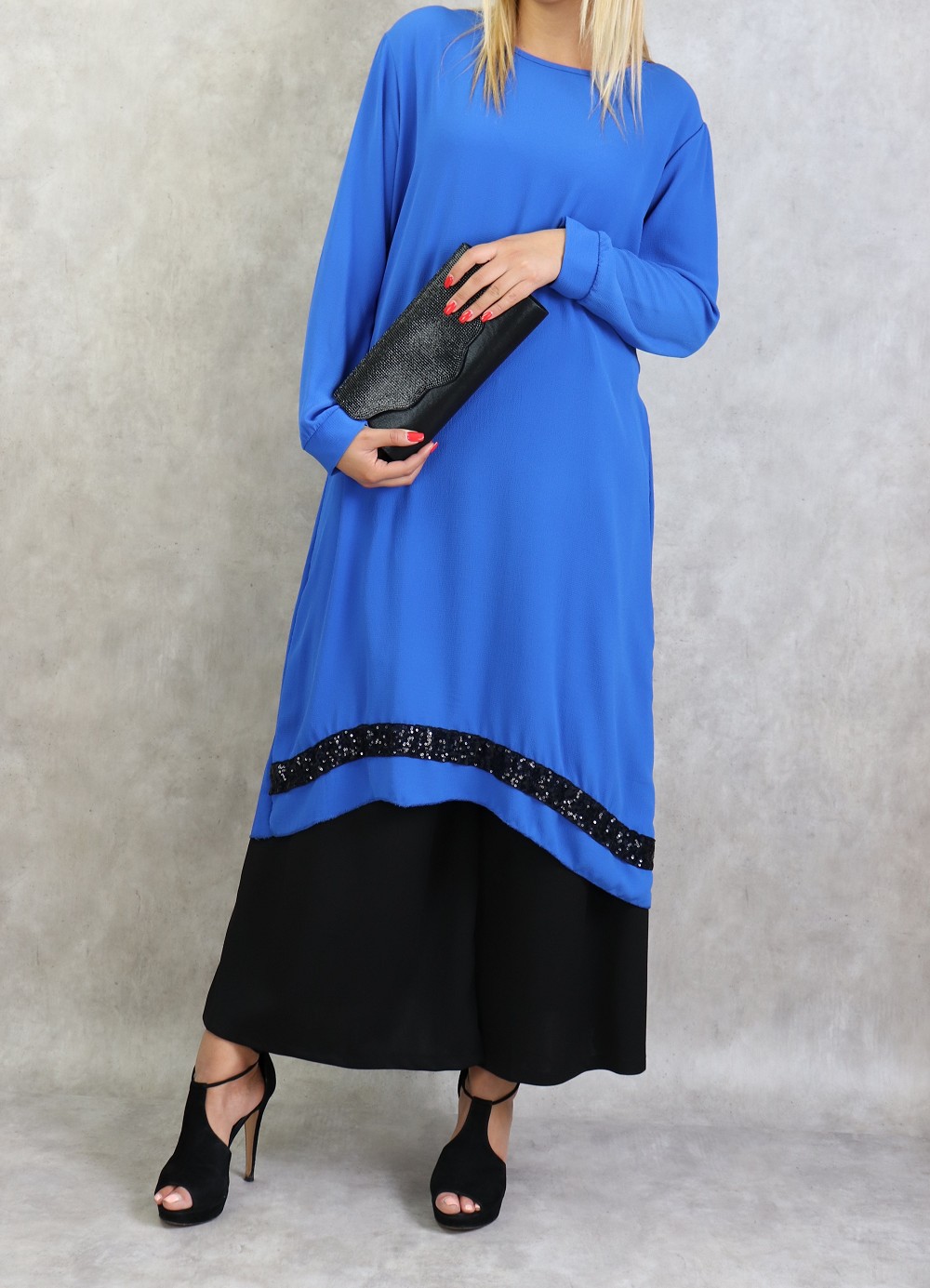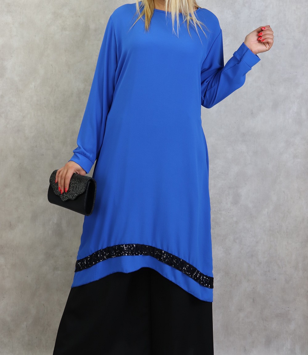 Tunique en crepe avec strass noirs (Tuniques pour femme) - Couleur Bleu roi