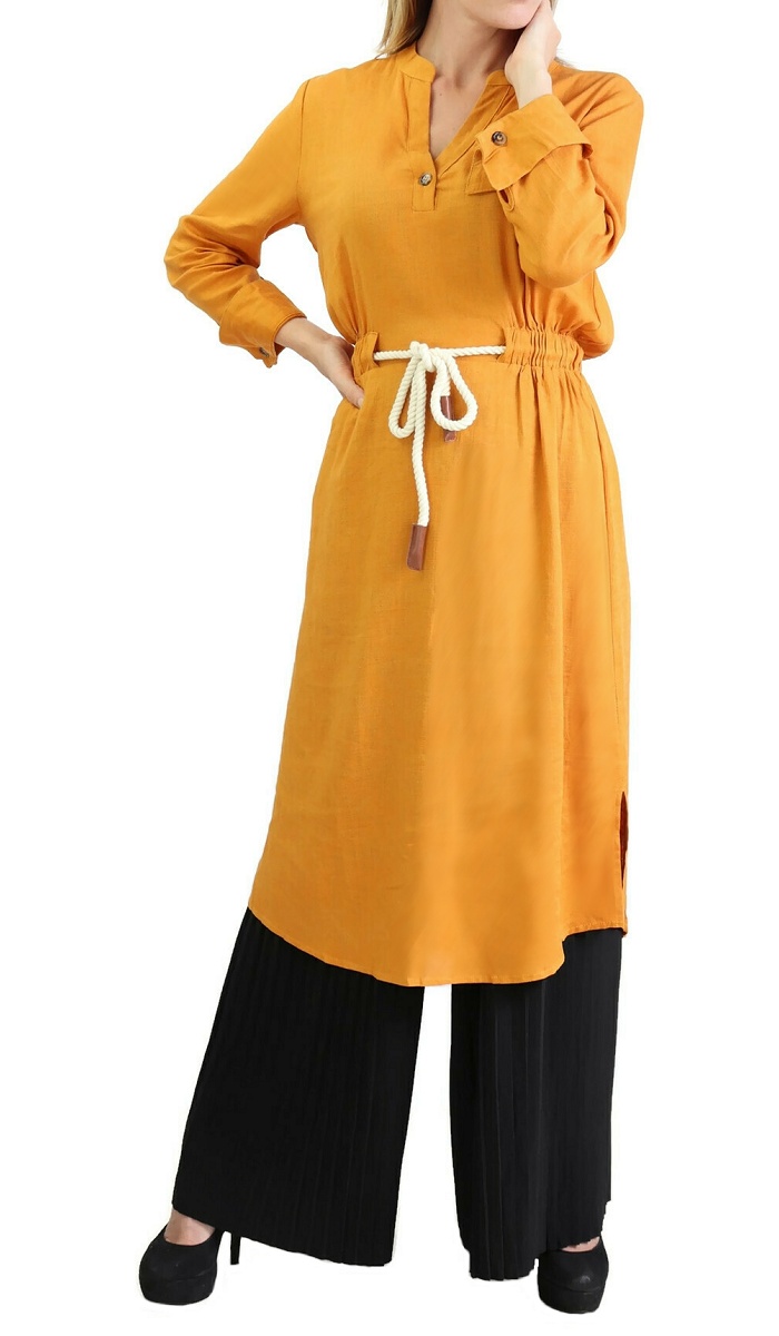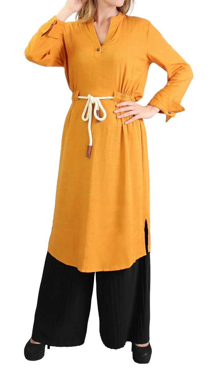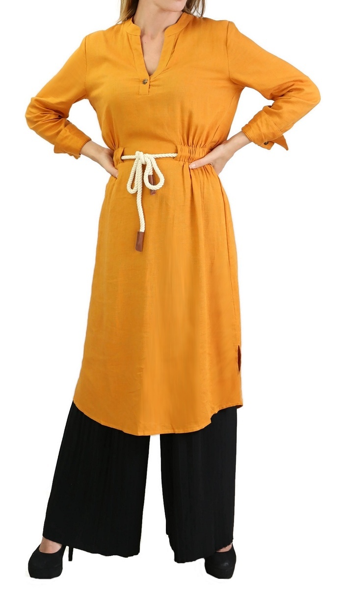 Tunique en lin avec ceinture - Couleur Jaune citrouille Vetement & Accessoire