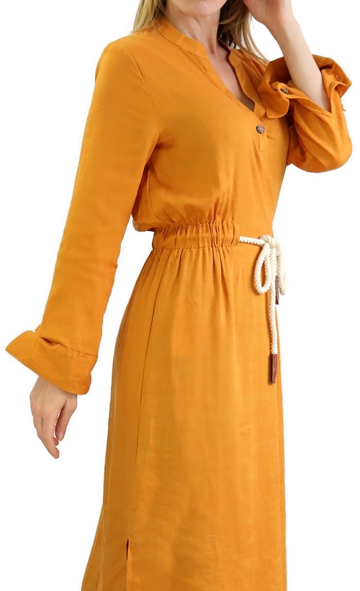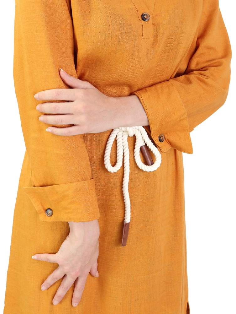 Tunique en lin avec ceinture - Couleur Jaune citrouille