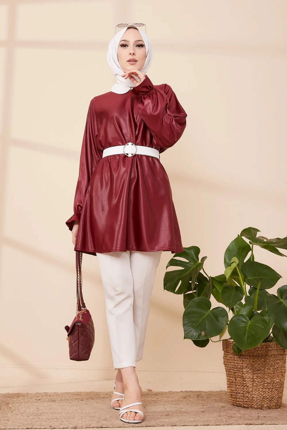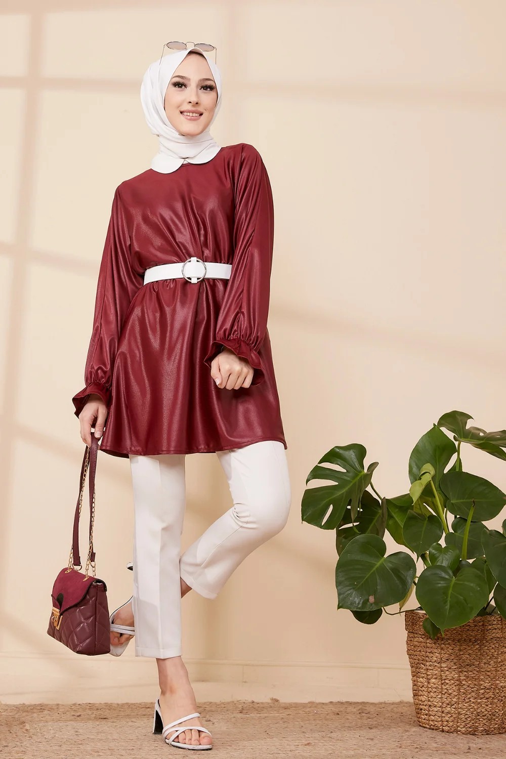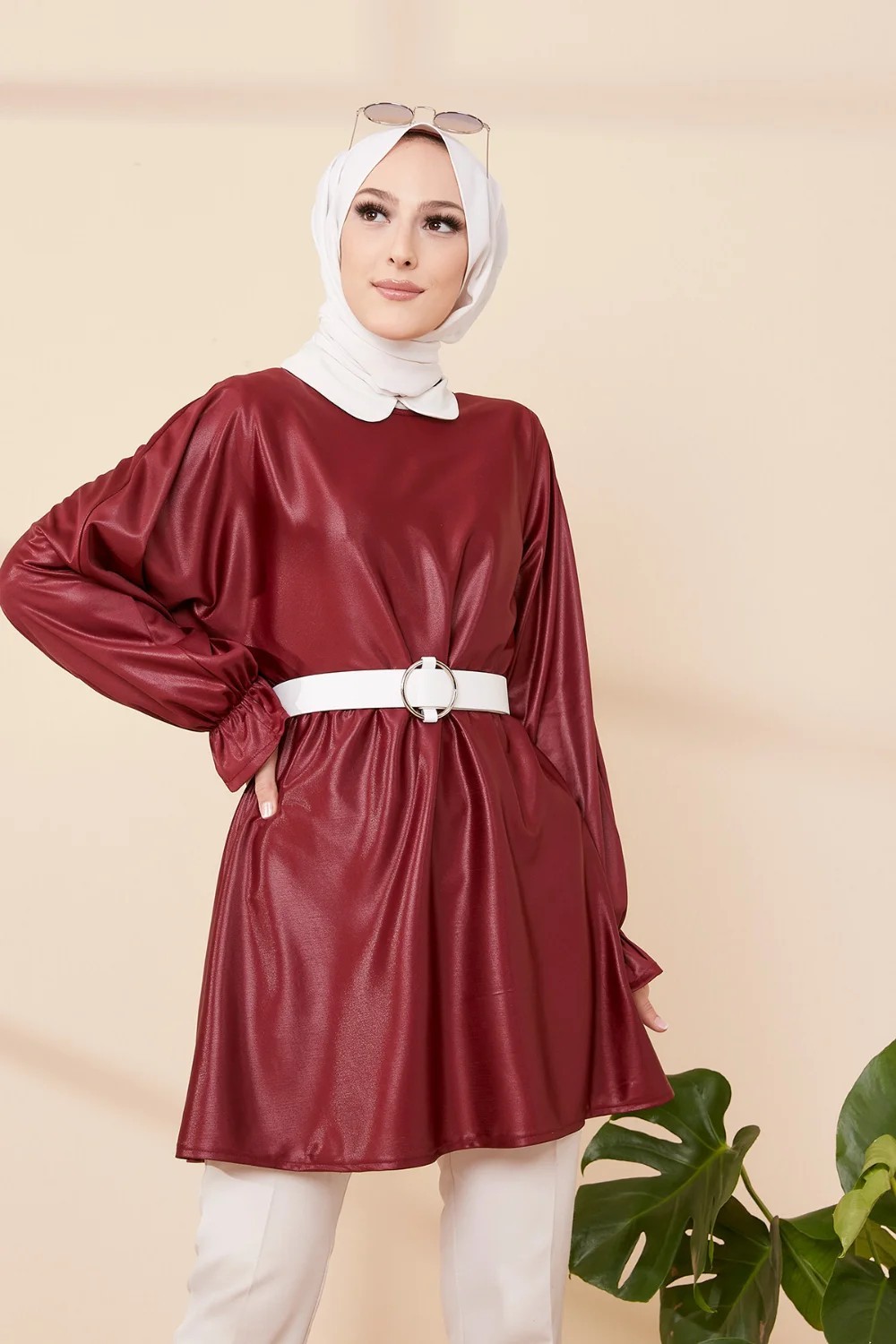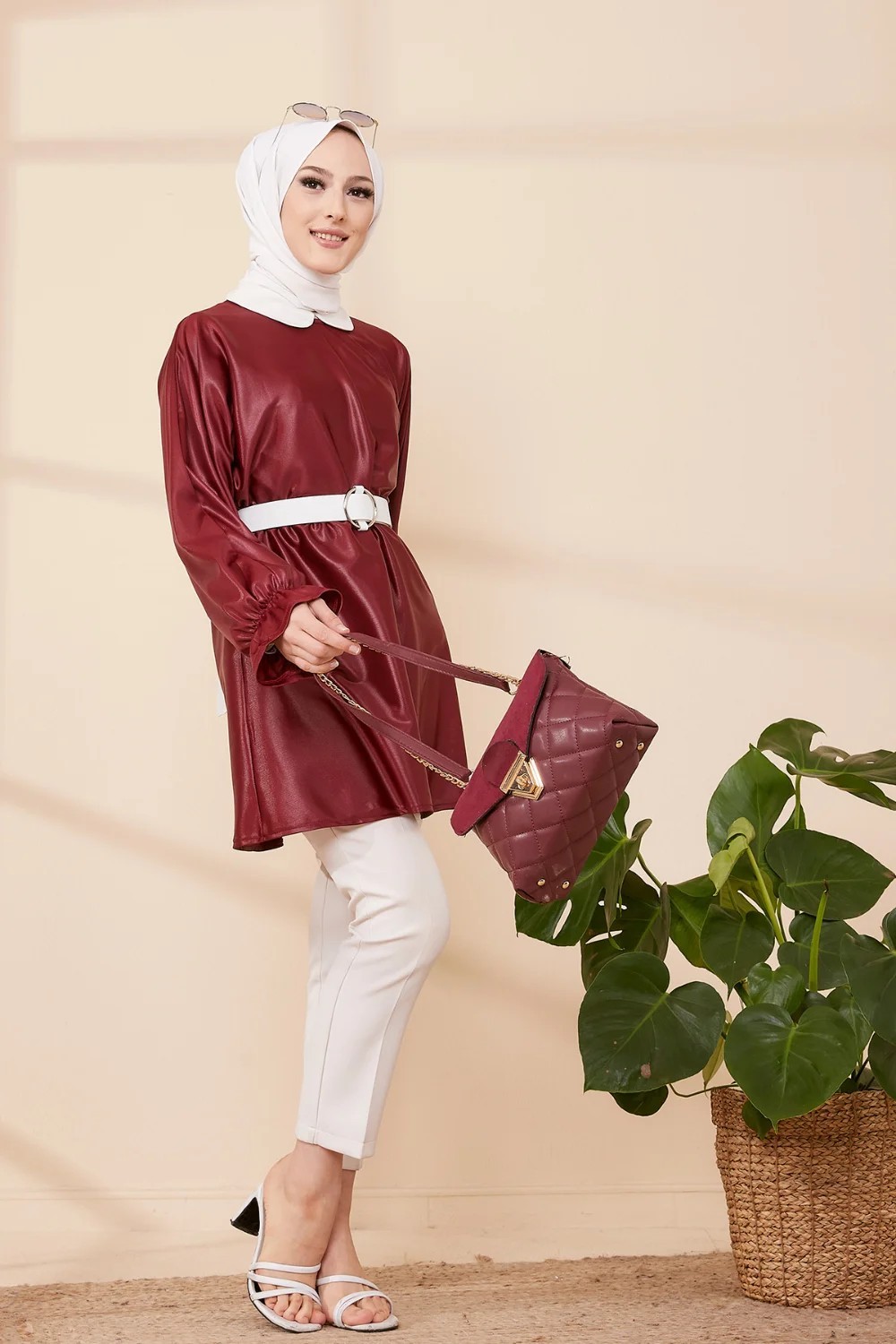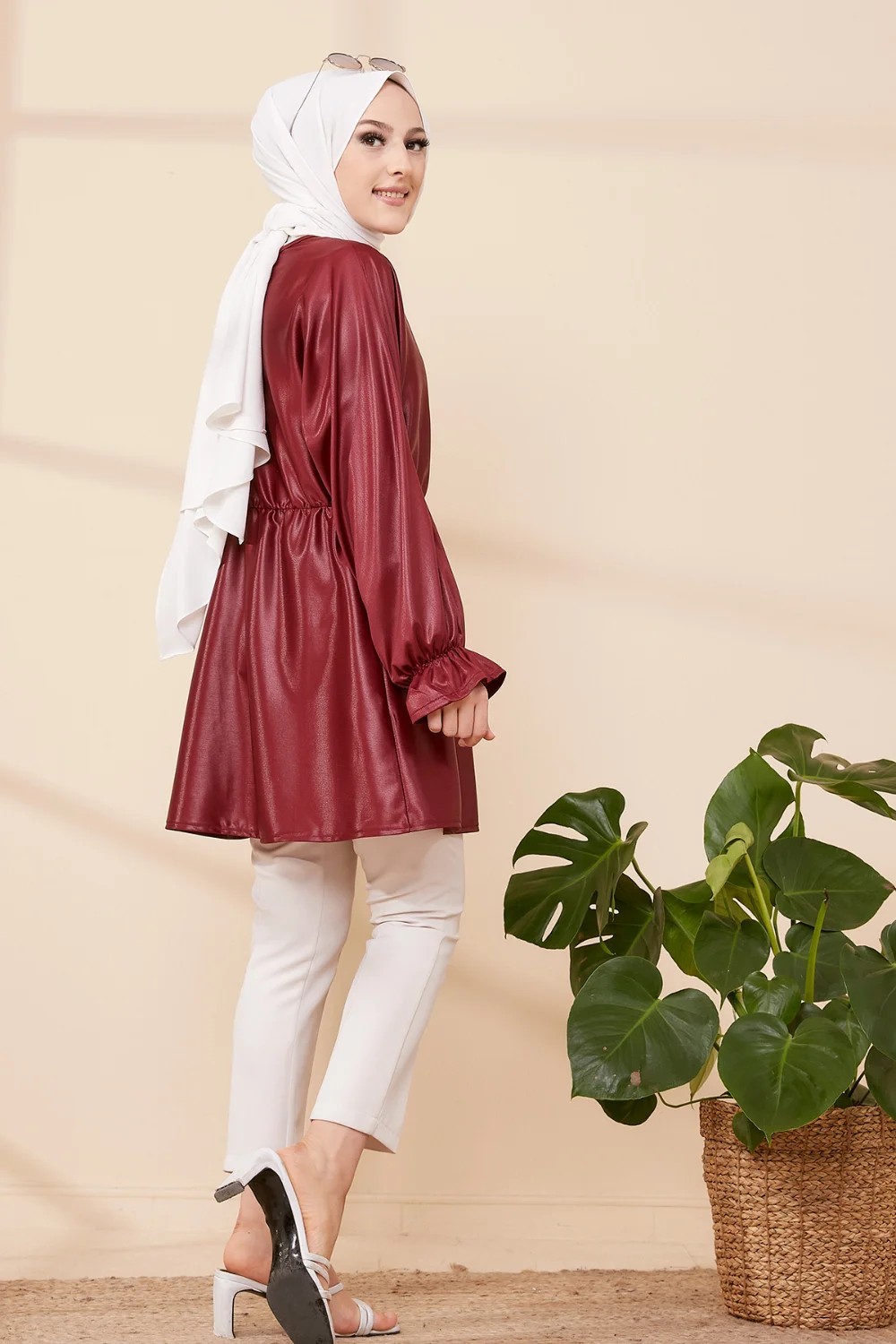 Tunique en skaï (simili cuir) pour femme (Vêtement chic et moderne pour hijab) - Couleur Bordeaux Vetement & Accessoire