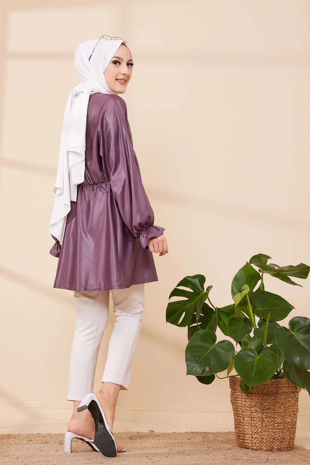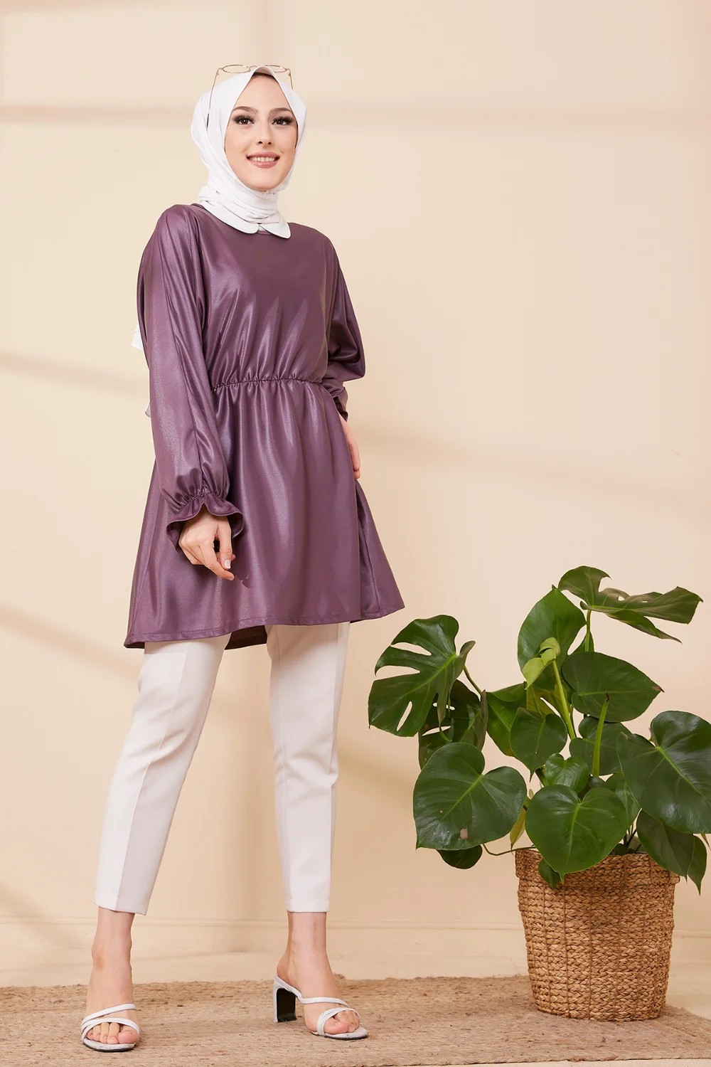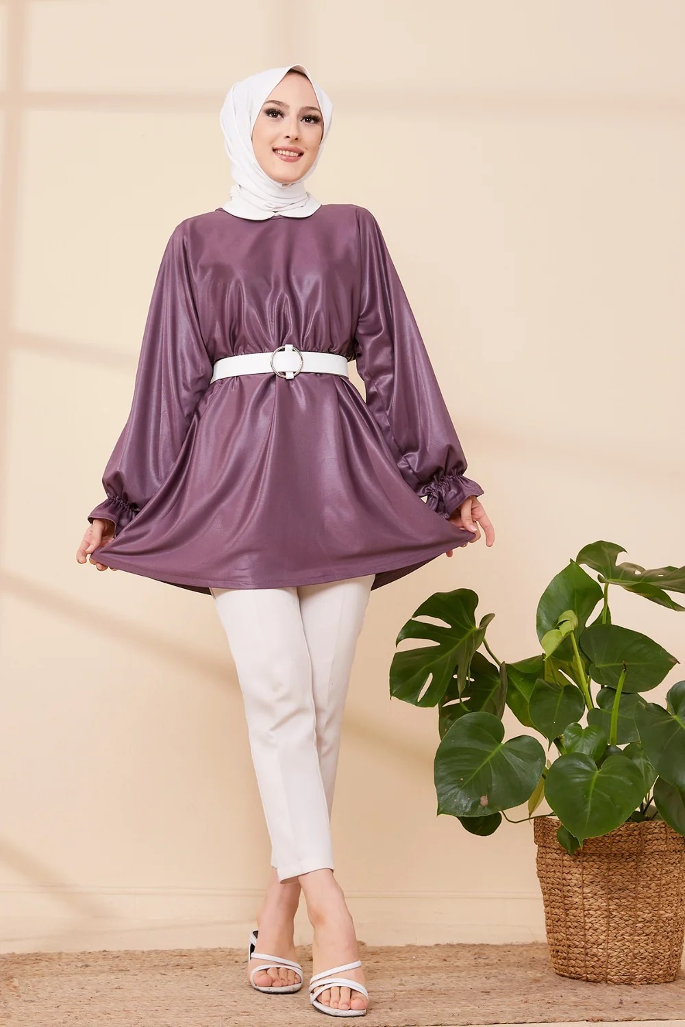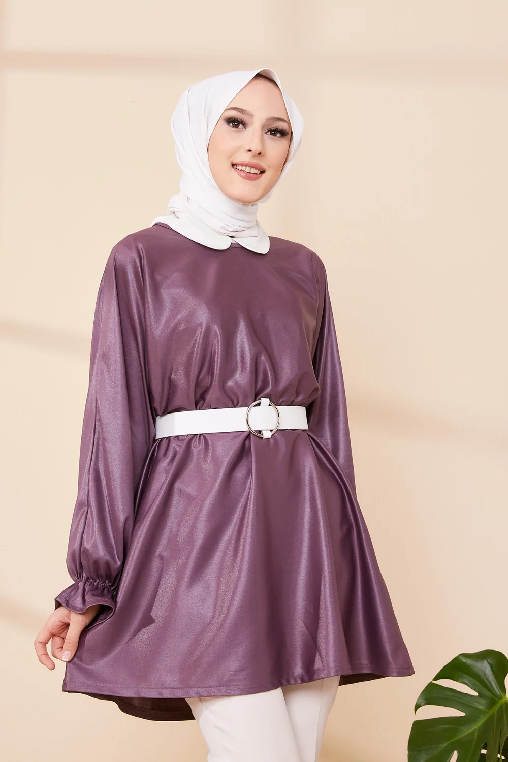 Tunique en skaï (simili cuir) pour femme (Vêtement chic pour hijab) - Couleur prune Vetement & Accessoire
