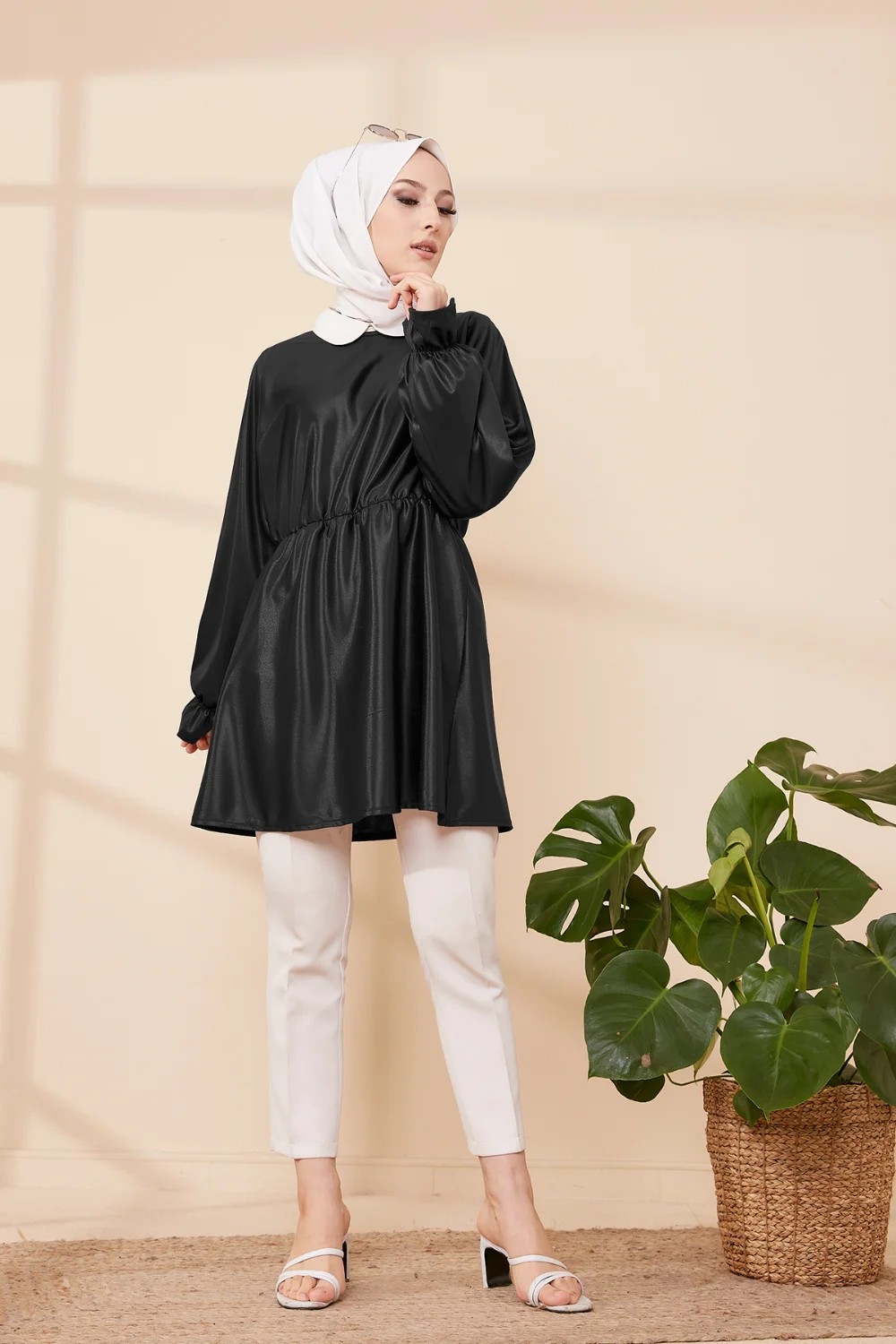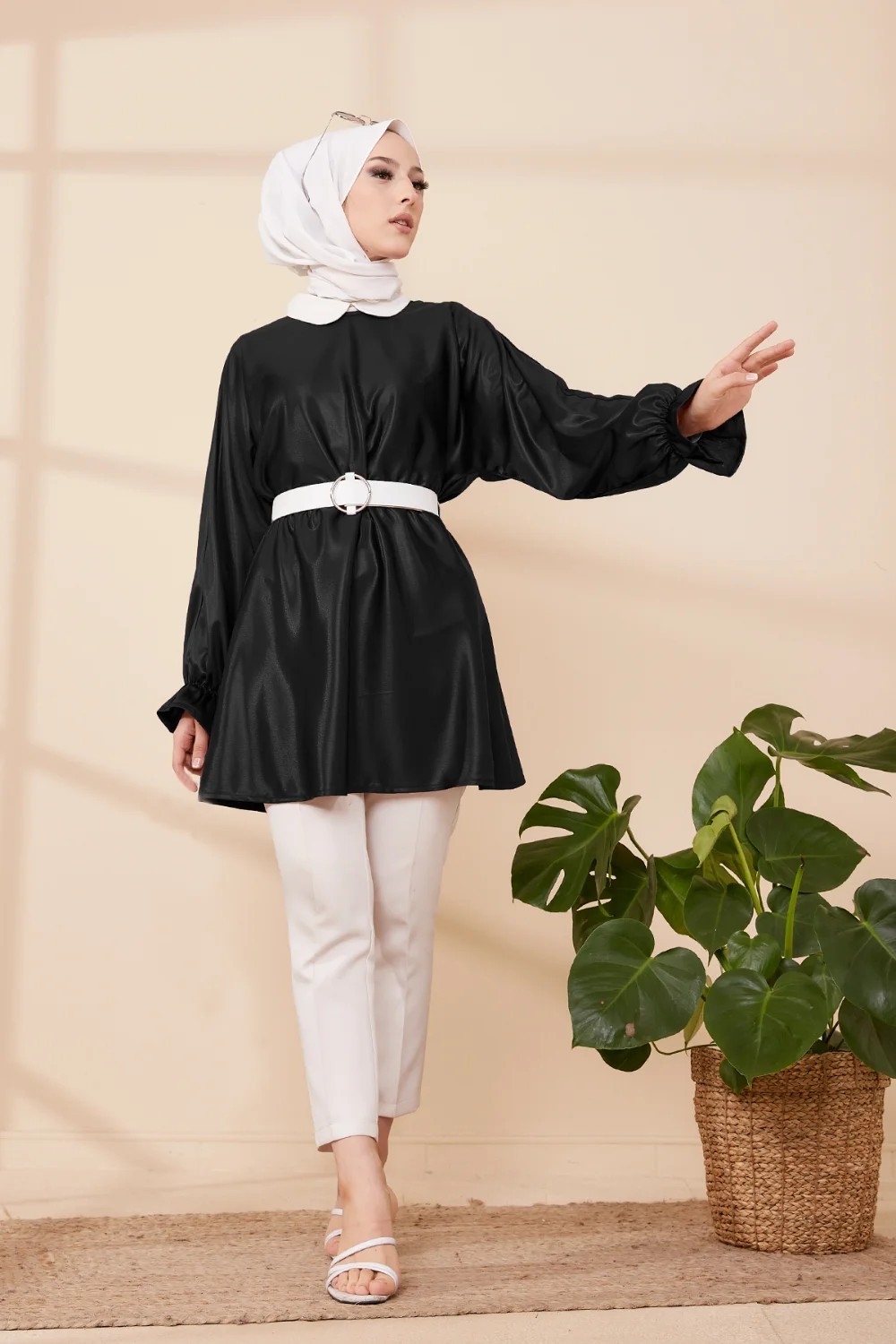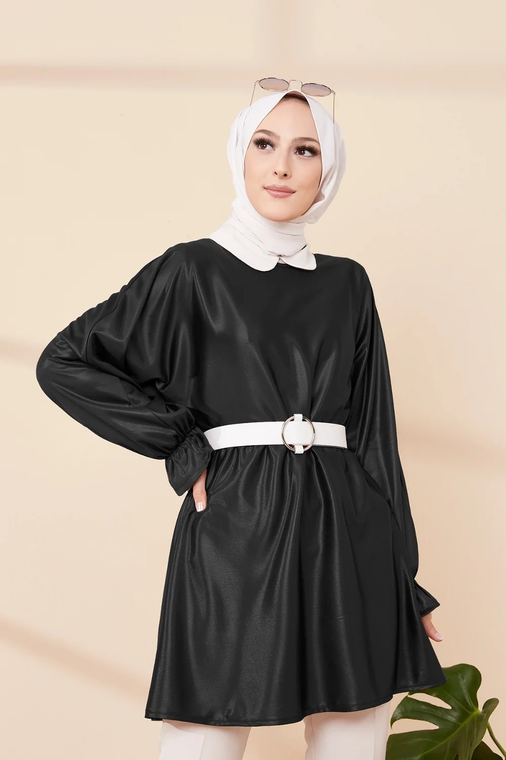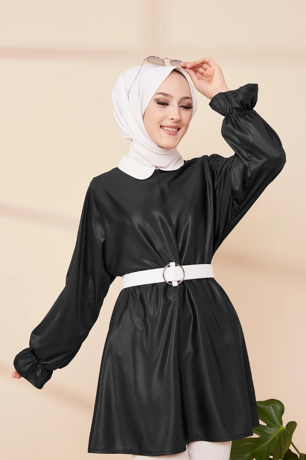 Tunique en skaï (simili cuir) pour femme (Vetement moderne pour hijab) - Couleur noir Vetement & Accessoire