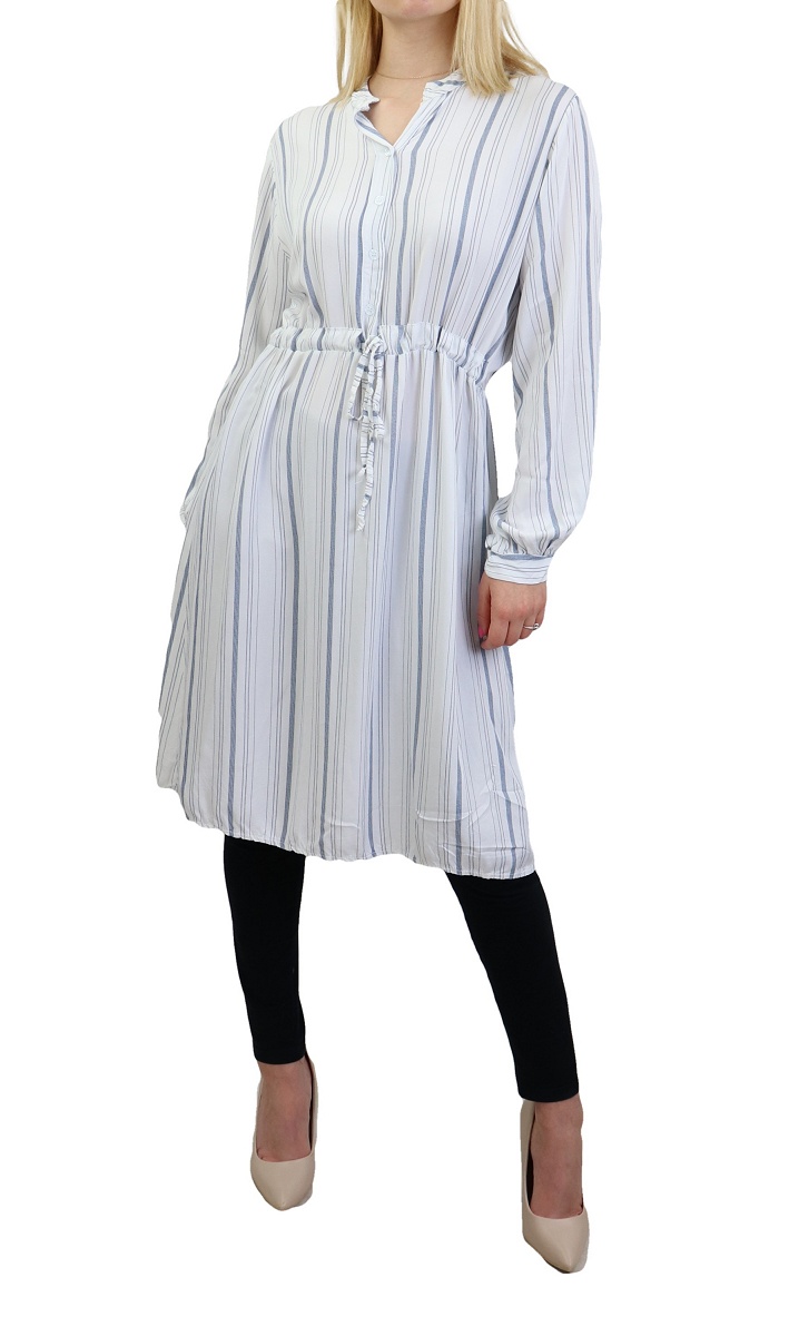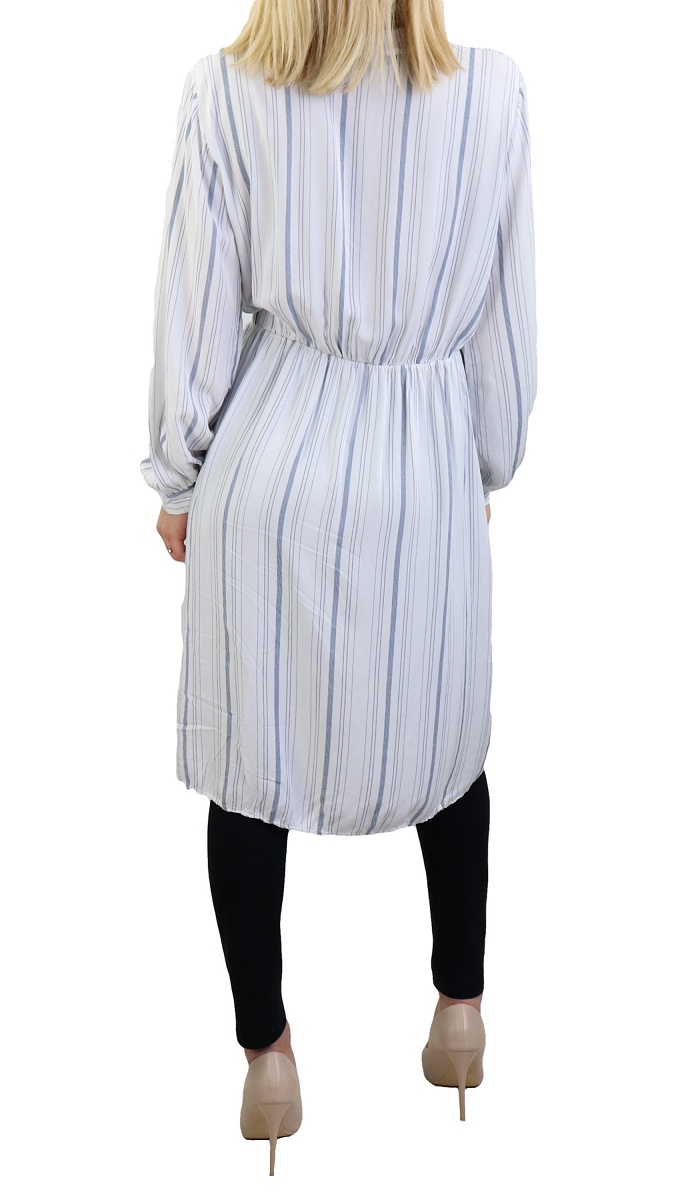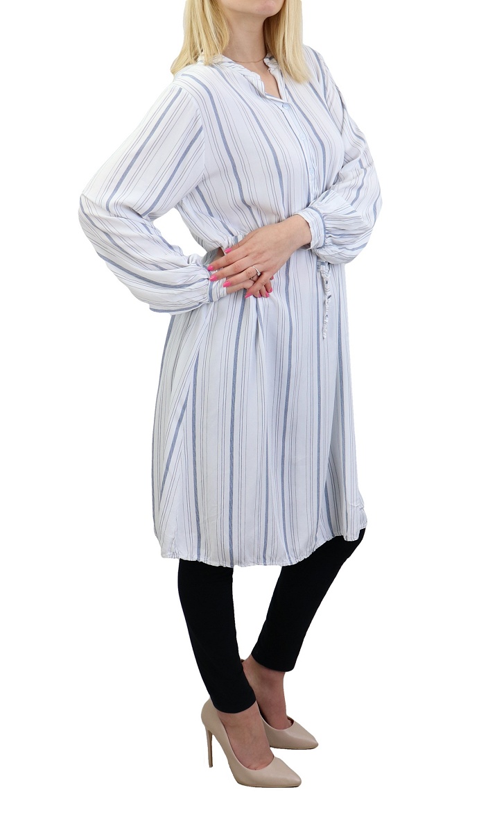 Tunique ample à manches longues, col mao, élastique au dos avec un lien de serrage à la taille, son tissu doux fluide.