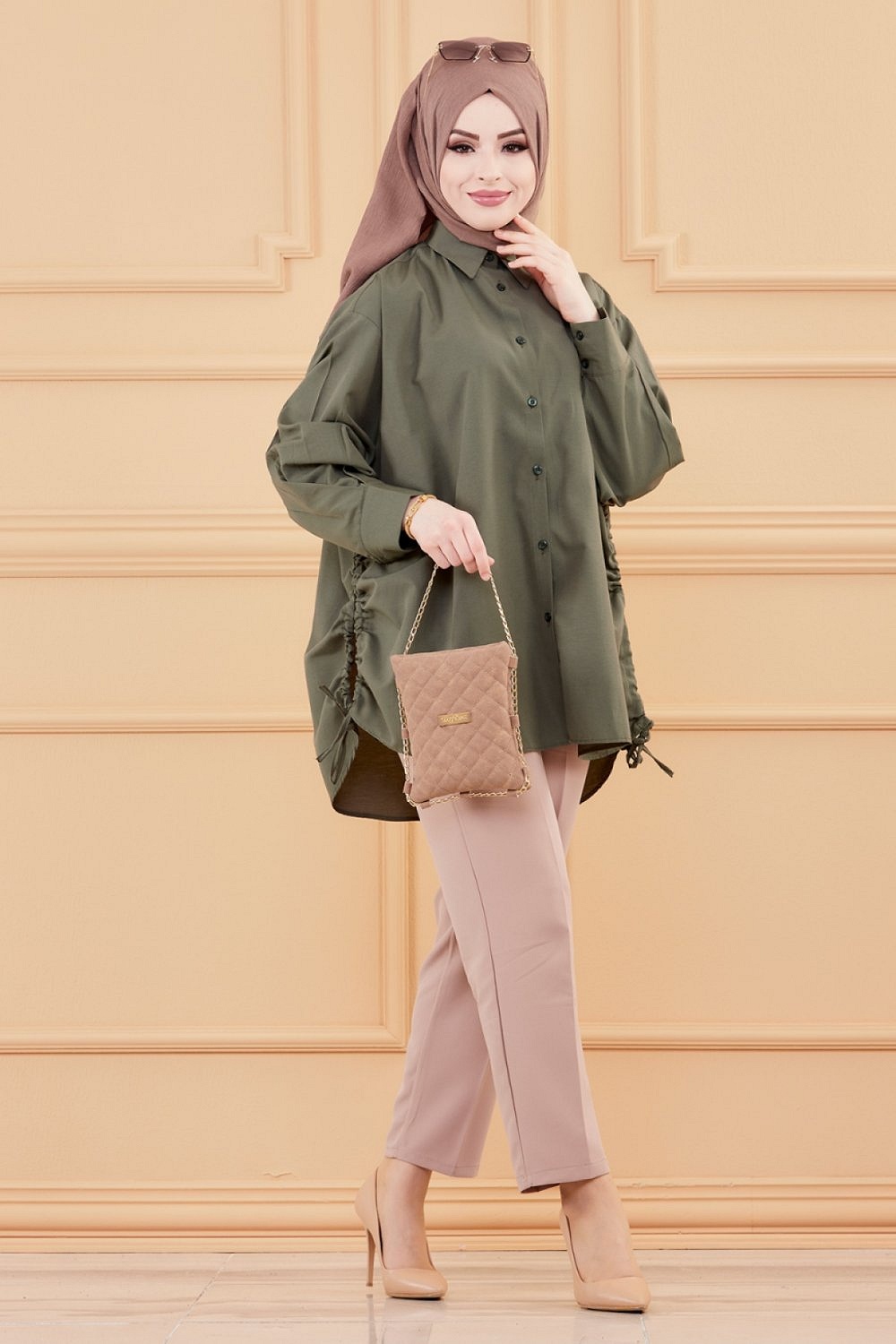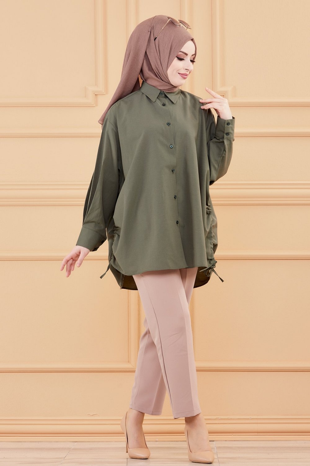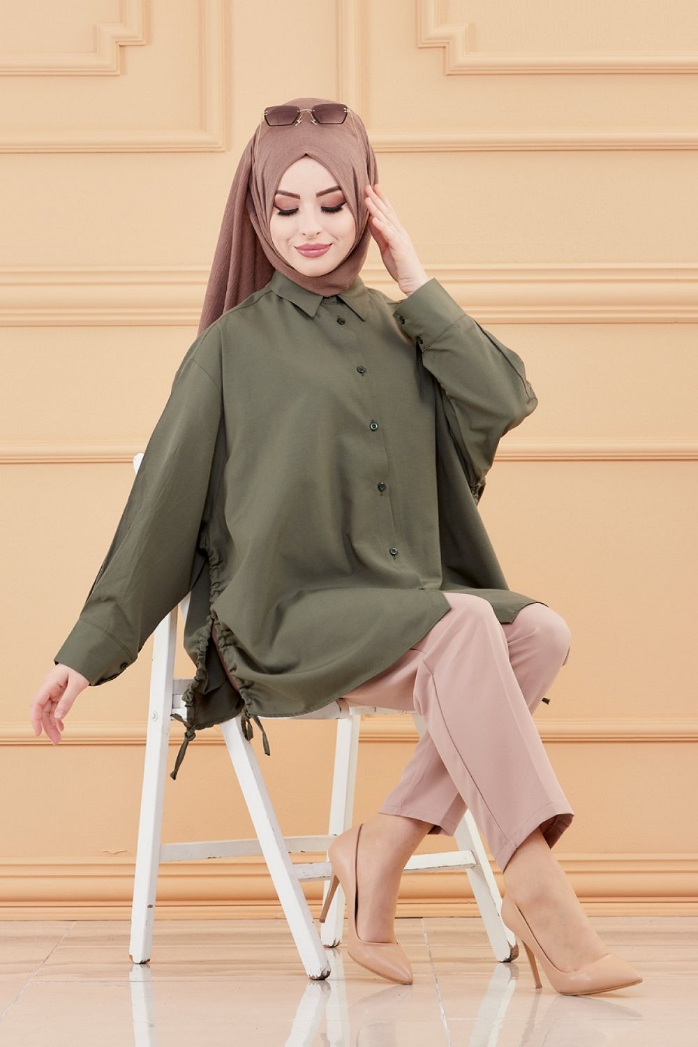 Tunique fendue ample habillee pour femme (Vetement Hijab Sytle) - Couleur kaki