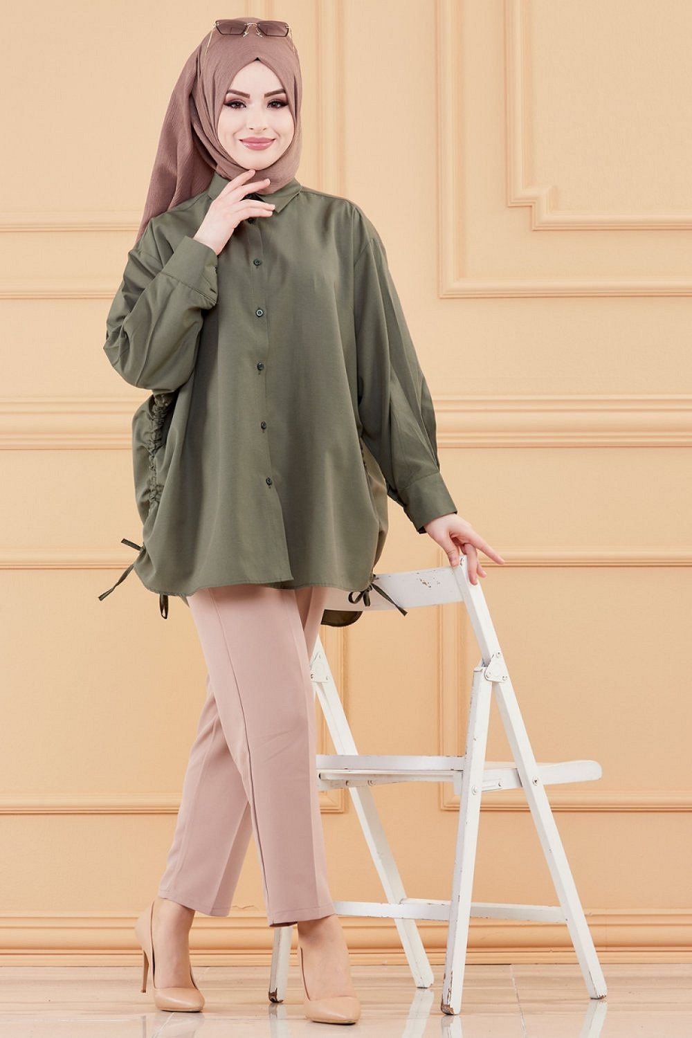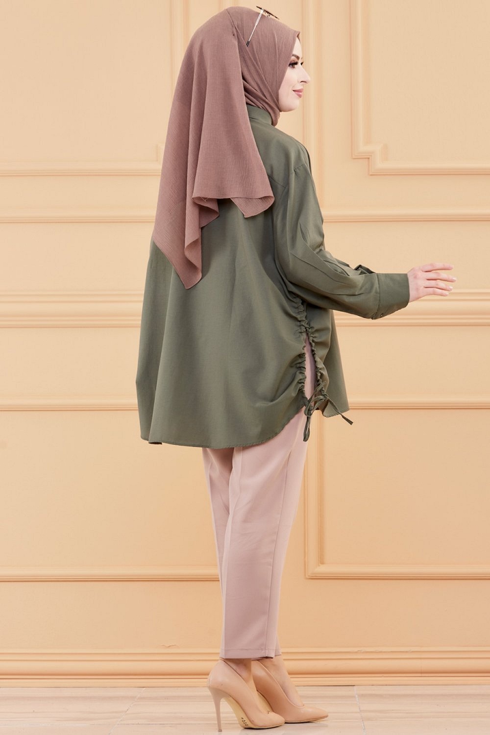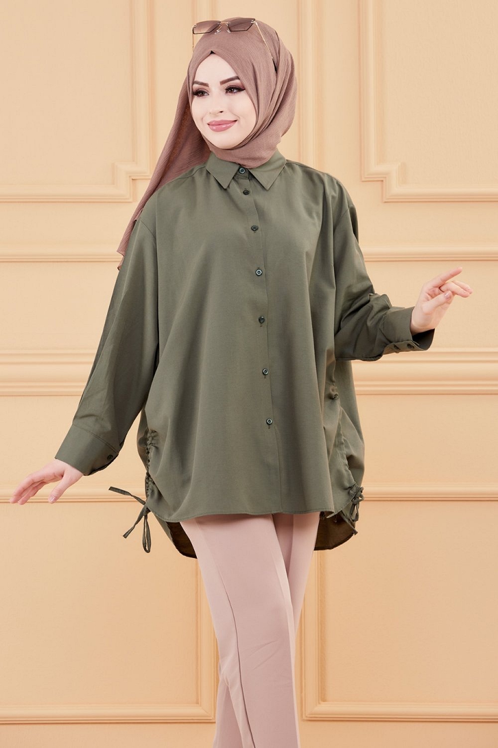 Tunique fendue ample habillee pour femme (Vetement Hijab Sytle) - Couleur kaki
