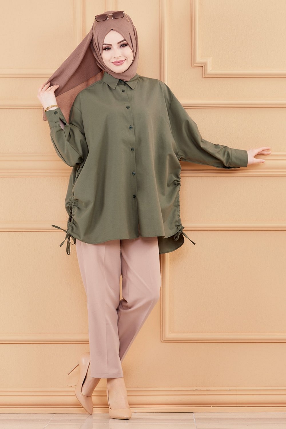 Tunique fendue ample habillée pour femme (Vêtement Hijab Sytle) - Couleur kaki Vetement & Accessoire