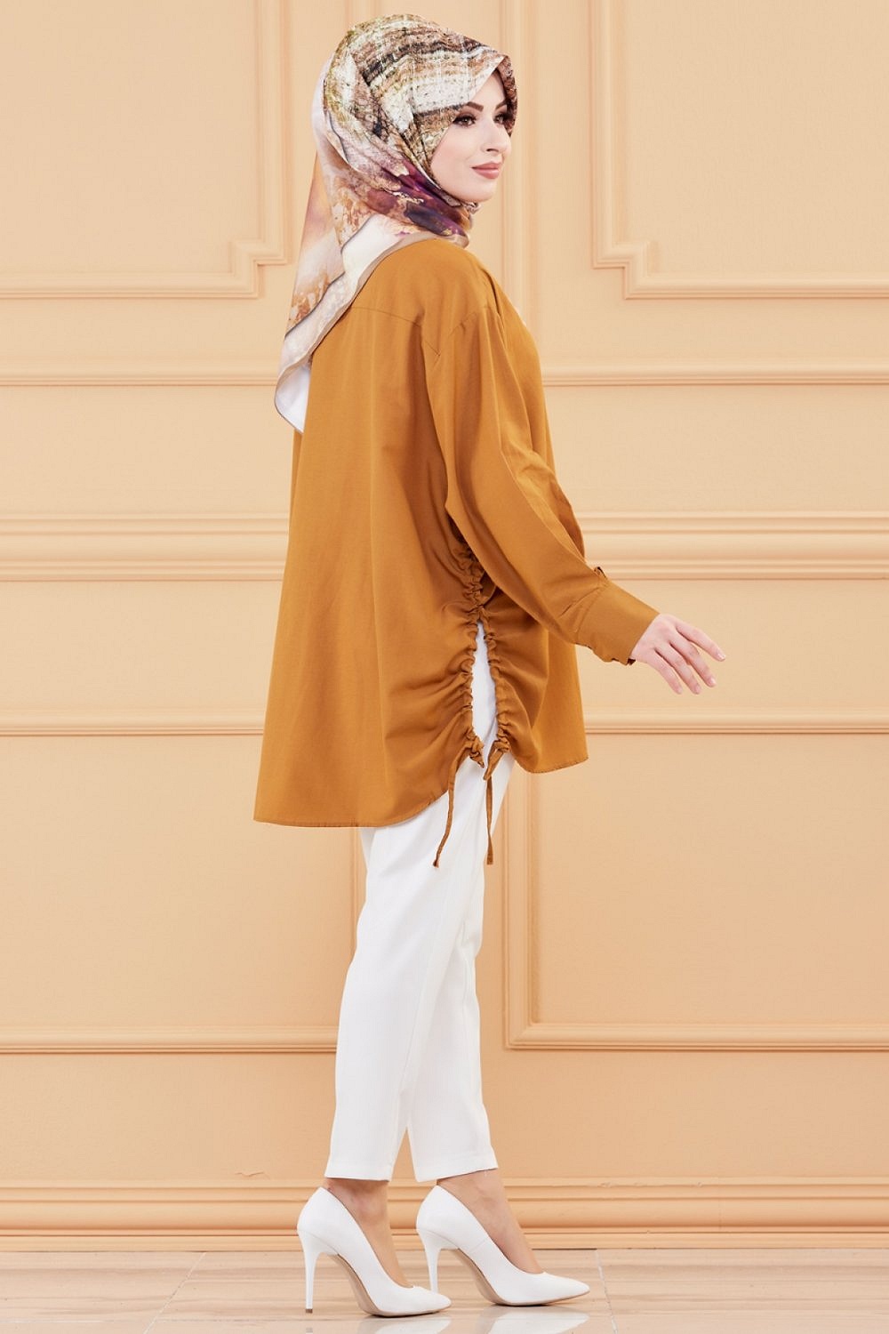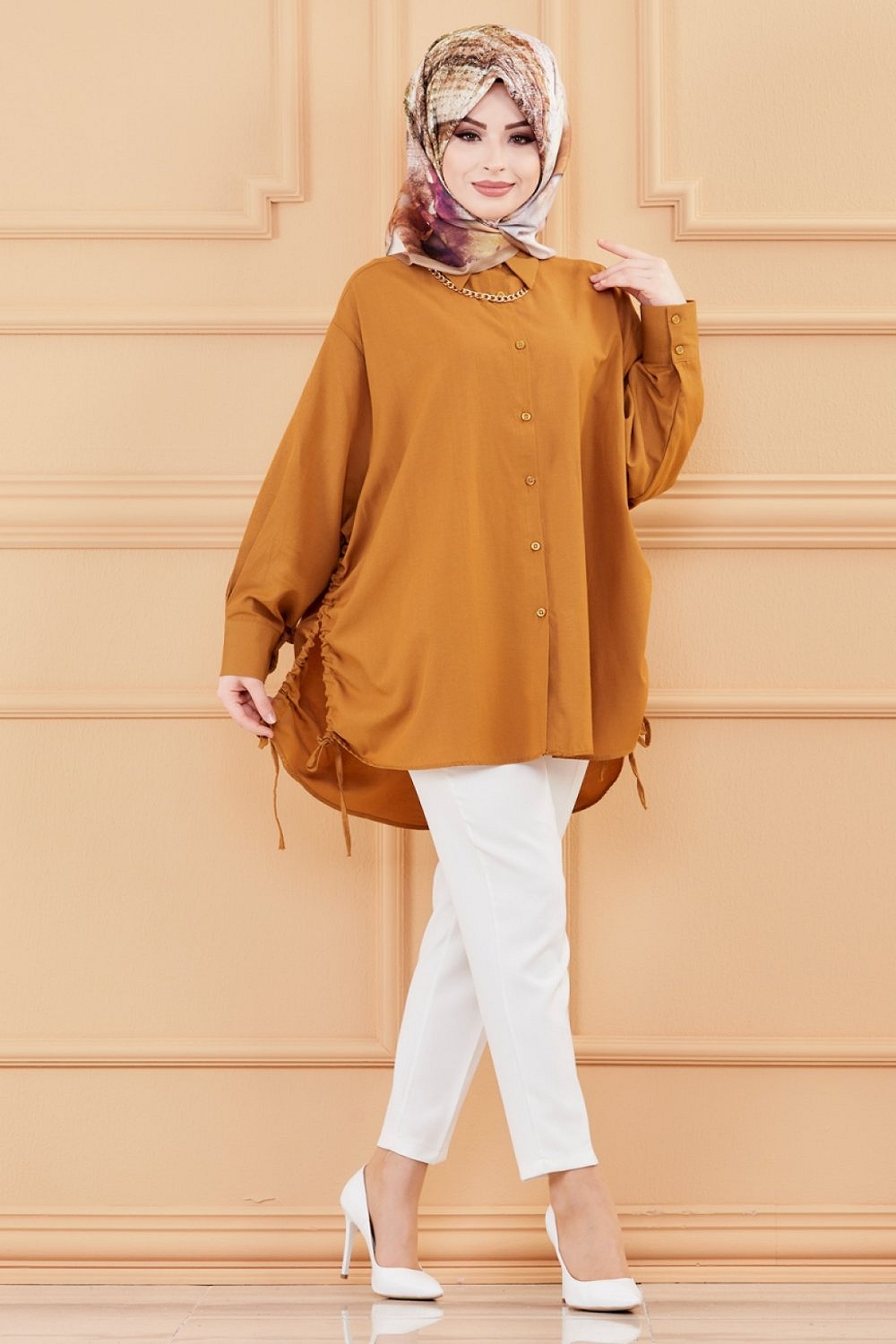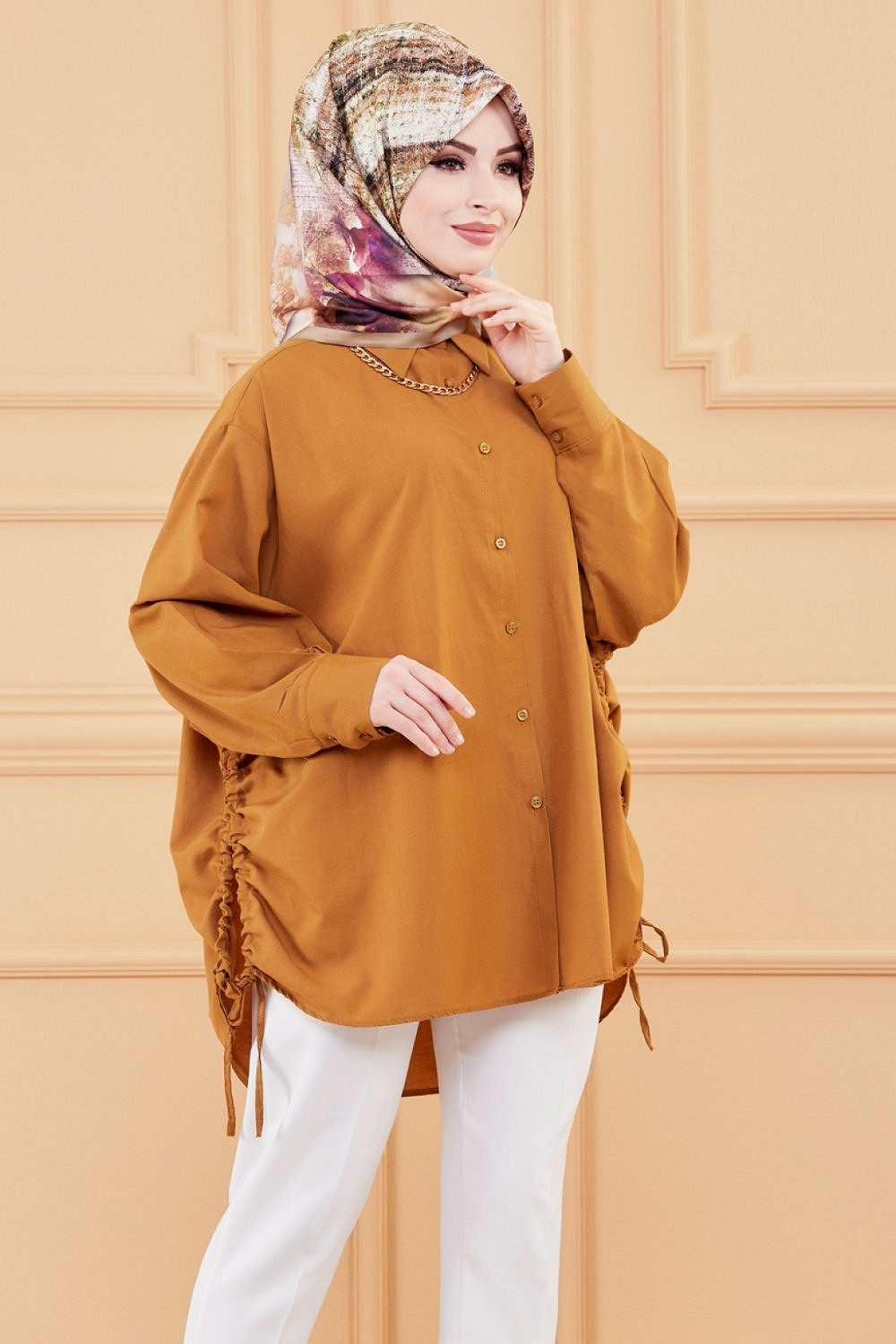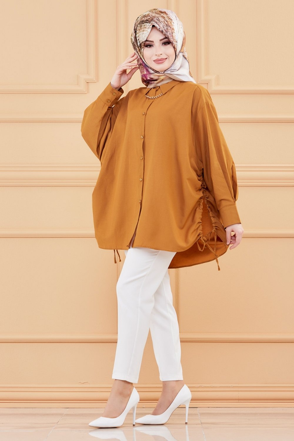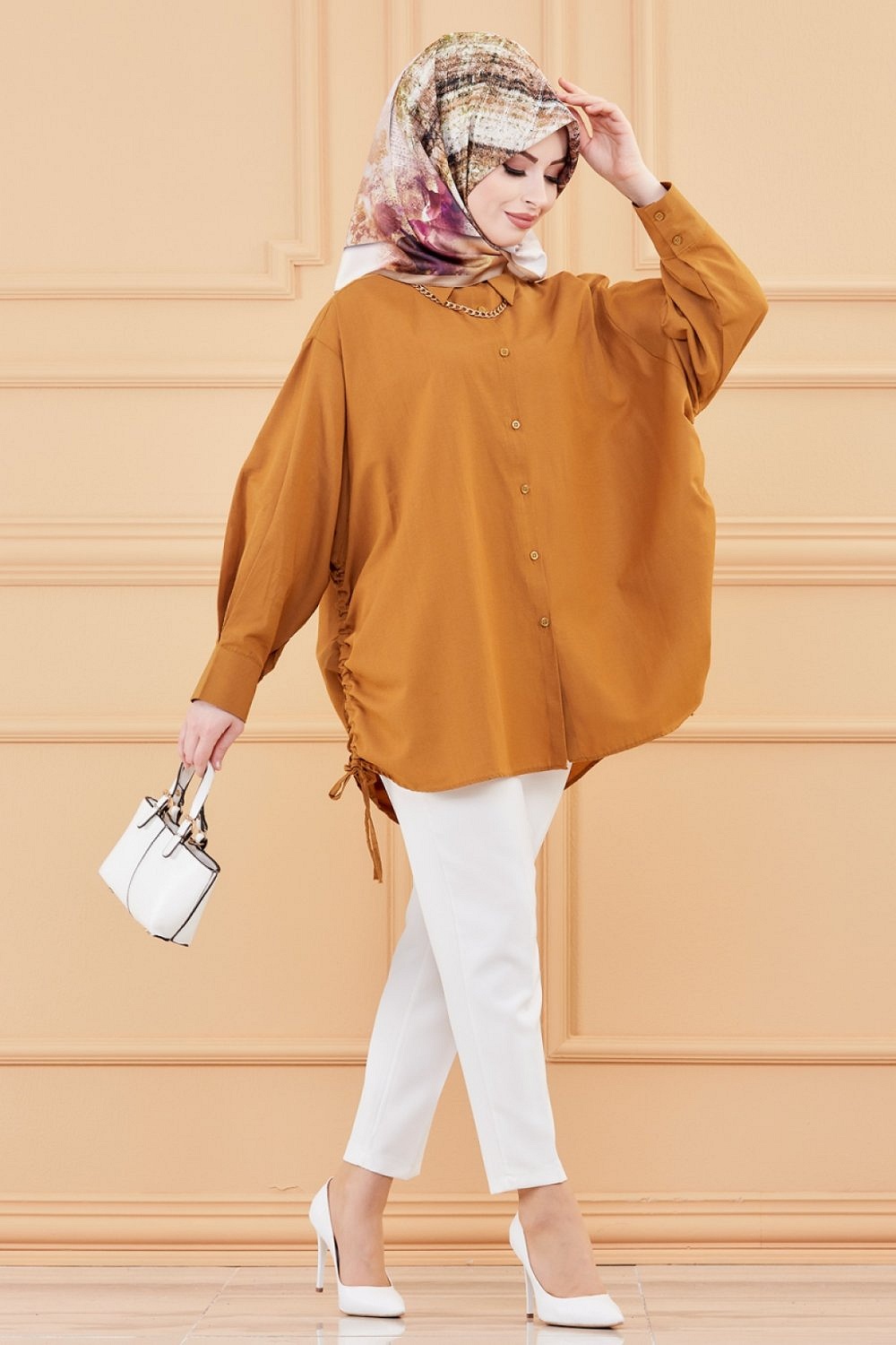 Tunique fendue habillée pour femme (Vêtement ample pour hijab) - Couleur tabac Vetement & Accessoire