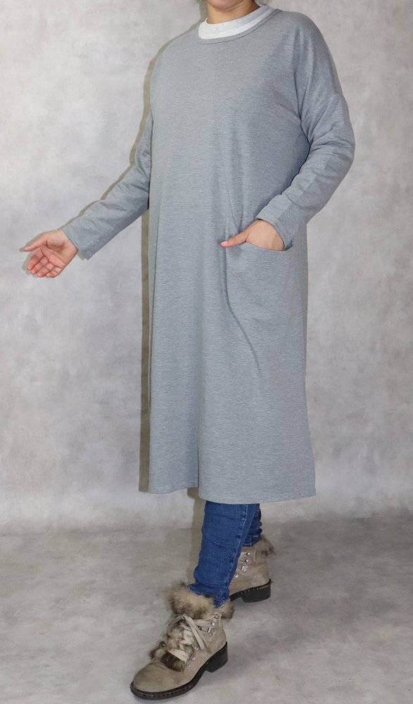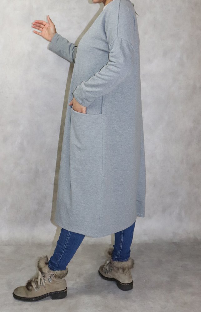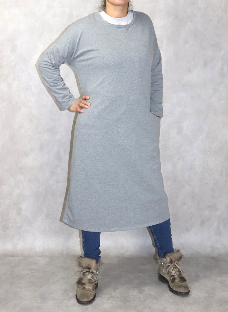 Tunique longue Sportswear en coton avec une grande poche pour femme - Couleur gris chine