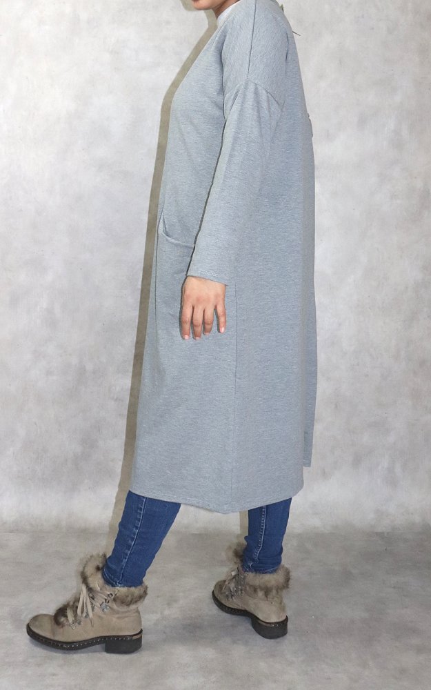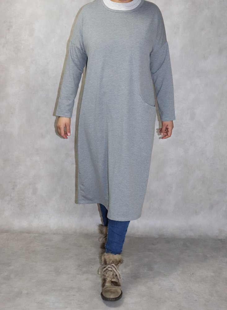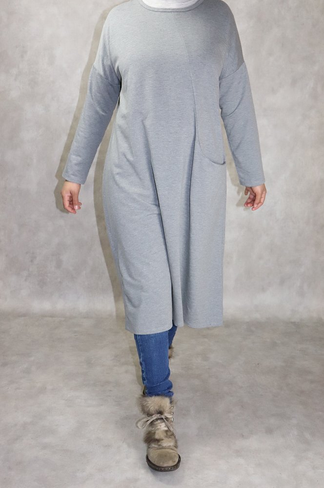 Tunique longue Sportswear en coton avec une grande poche pour femme - Couleur gris chiné Vetement & Accessoire