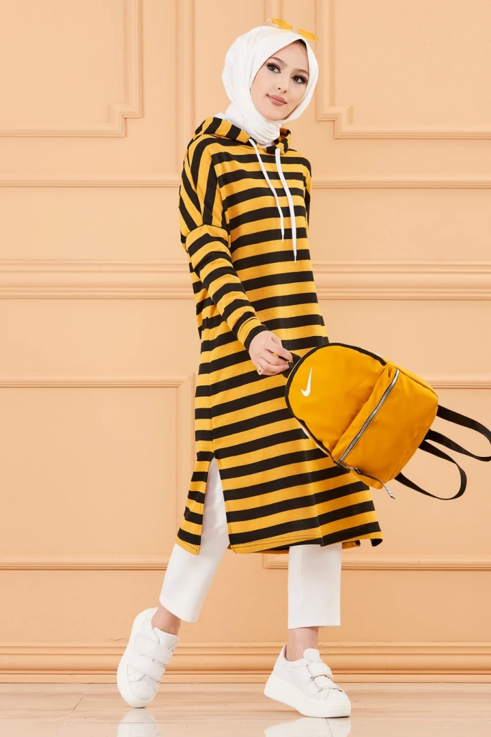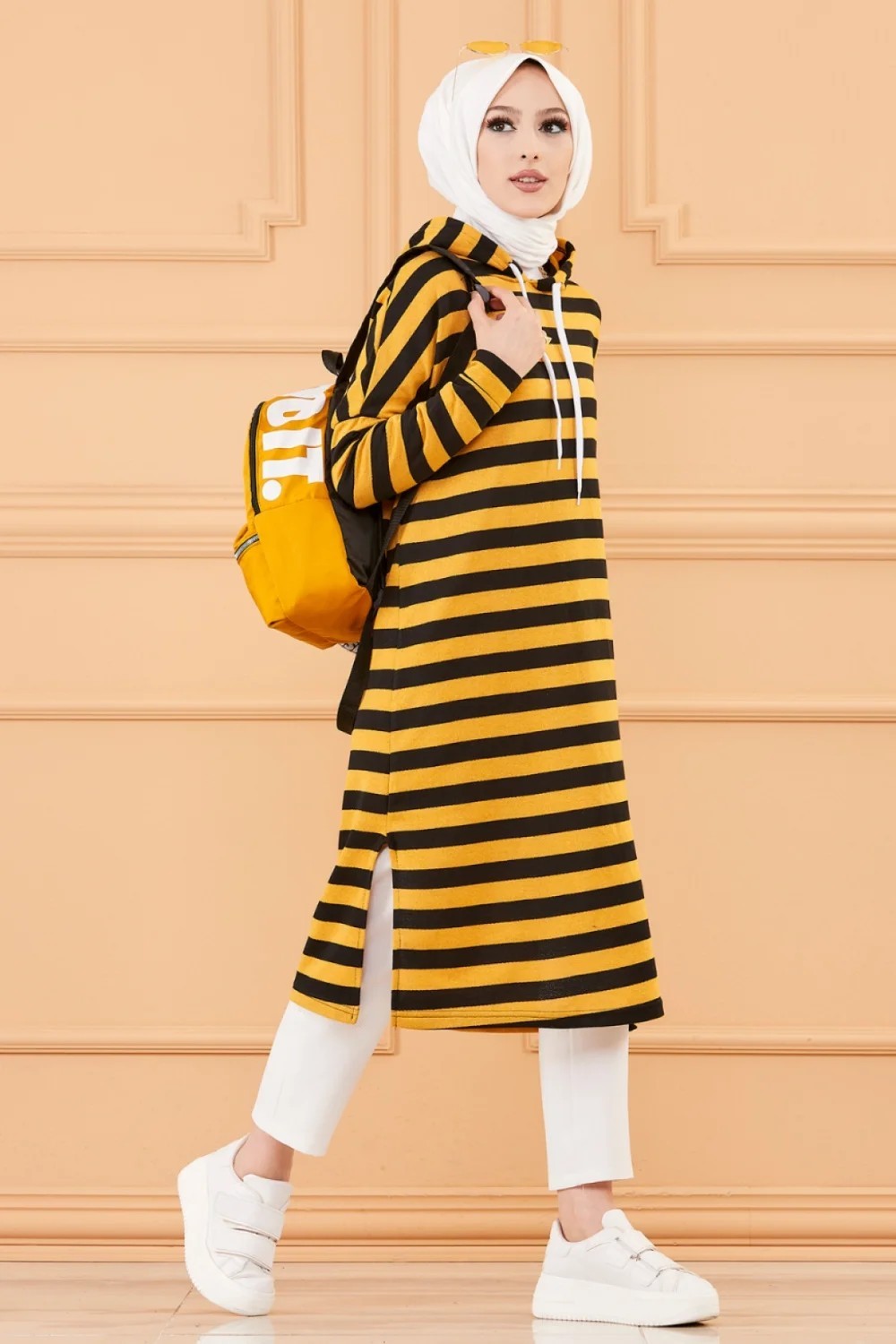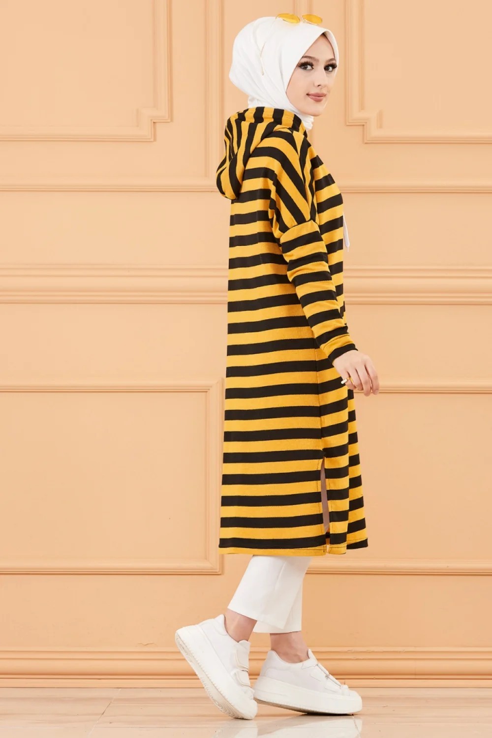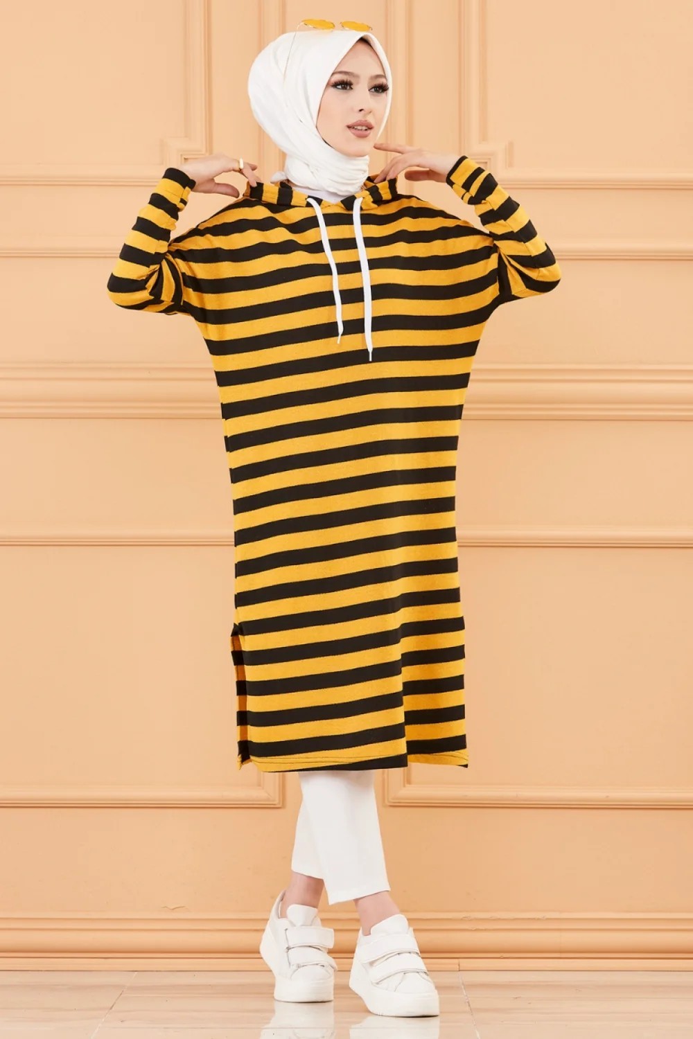 Tunique longue à rayures avec capuche (Tenue décontractée et sport pour hijab) - Couleur moutarde Vetement & Accessoire