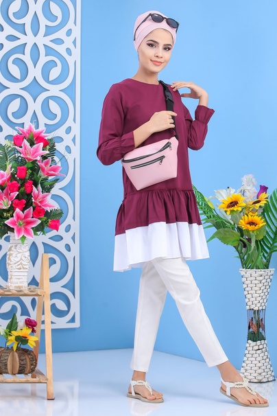 Tunique longue, col rond, fermeture zippé au dos, manches finition froufrous aux poignets, tissu léger. Cette tunique avec sa coupe originale et son volant dépareillé vous permettra de l'associer avec ce que vous voulez.