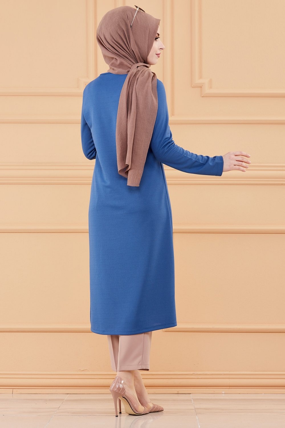 Tunique longue avec collier offert (Vetement hijab femme chic) - Couleur bleu indigo Vetement & Accessoire