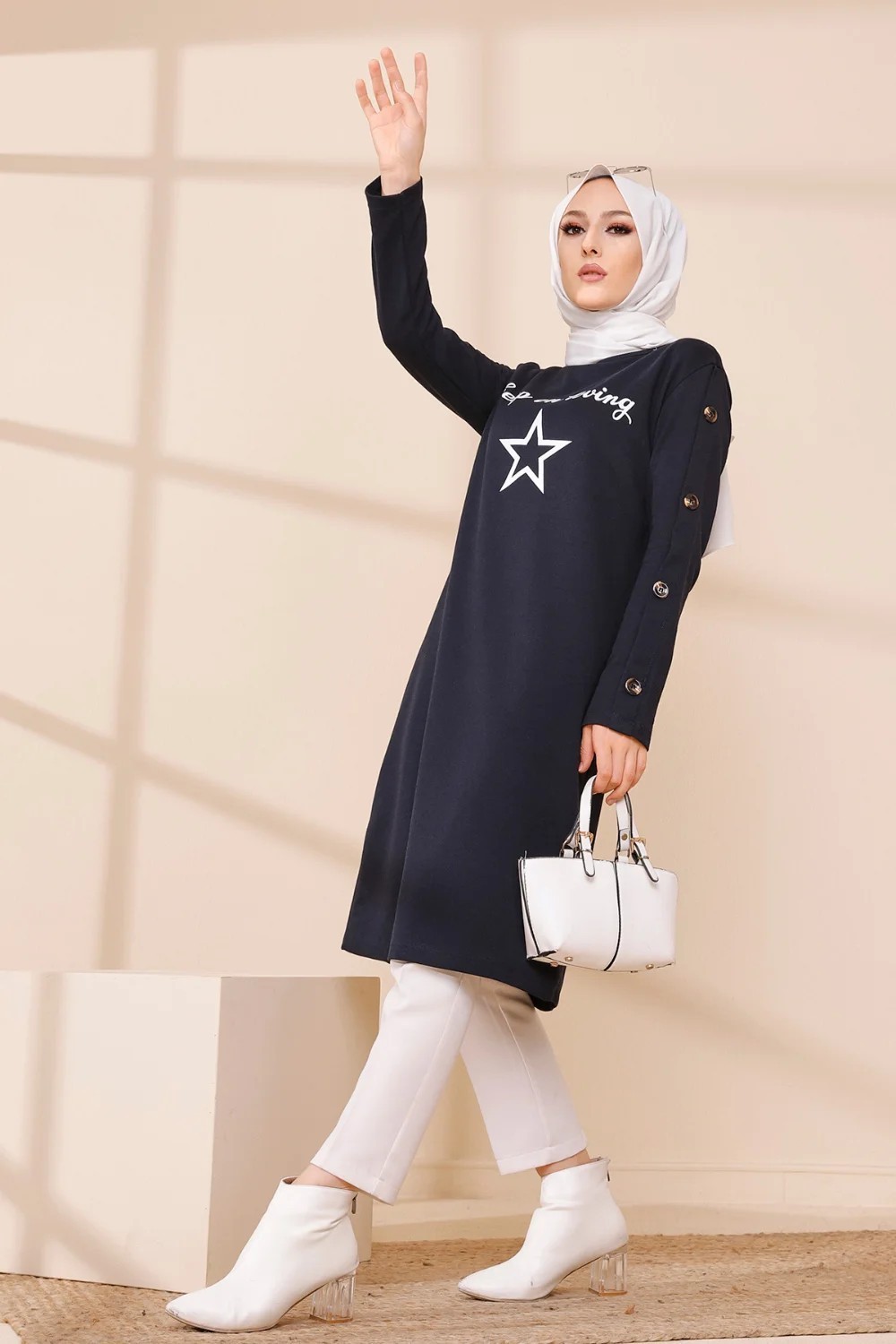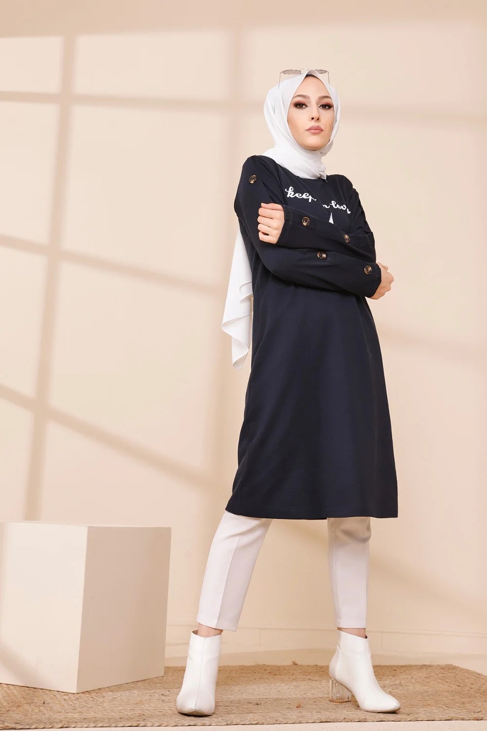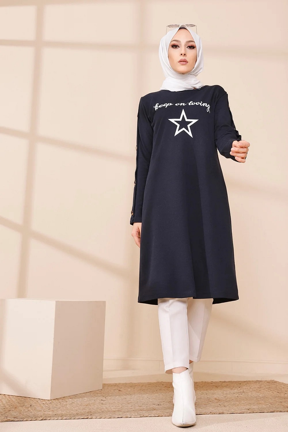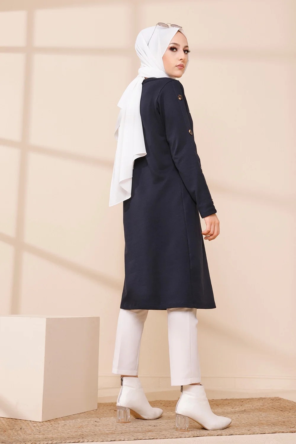 Robe - Tunique longue pour femme (Casual Hijab Outfit 2025) - Couleur bleu marine - REF. 38341 (28.00 €)