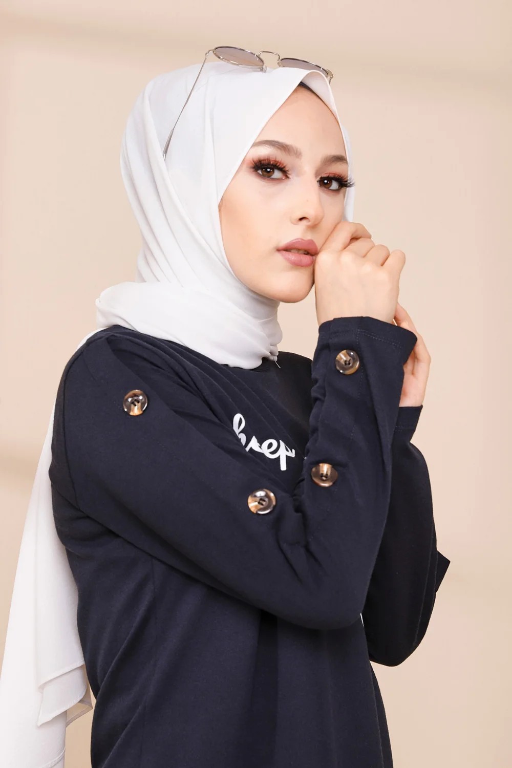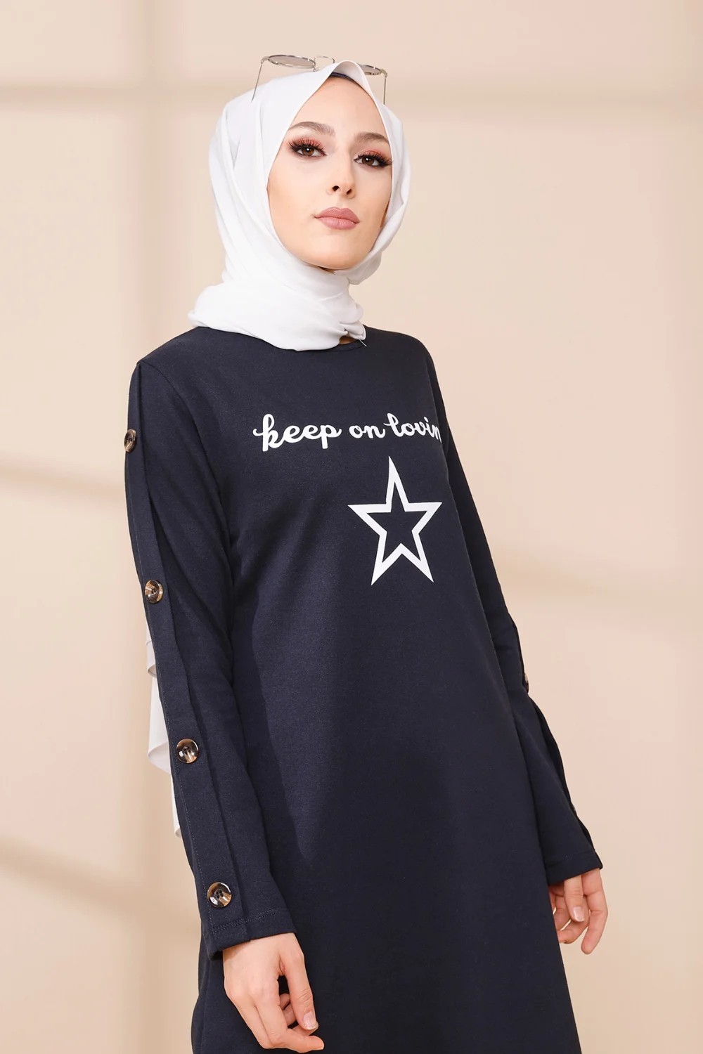 Tunique manches ballon (Tenue habillée pour femme voilée) - Couleur beige - REF. 35924 (19.90 €)