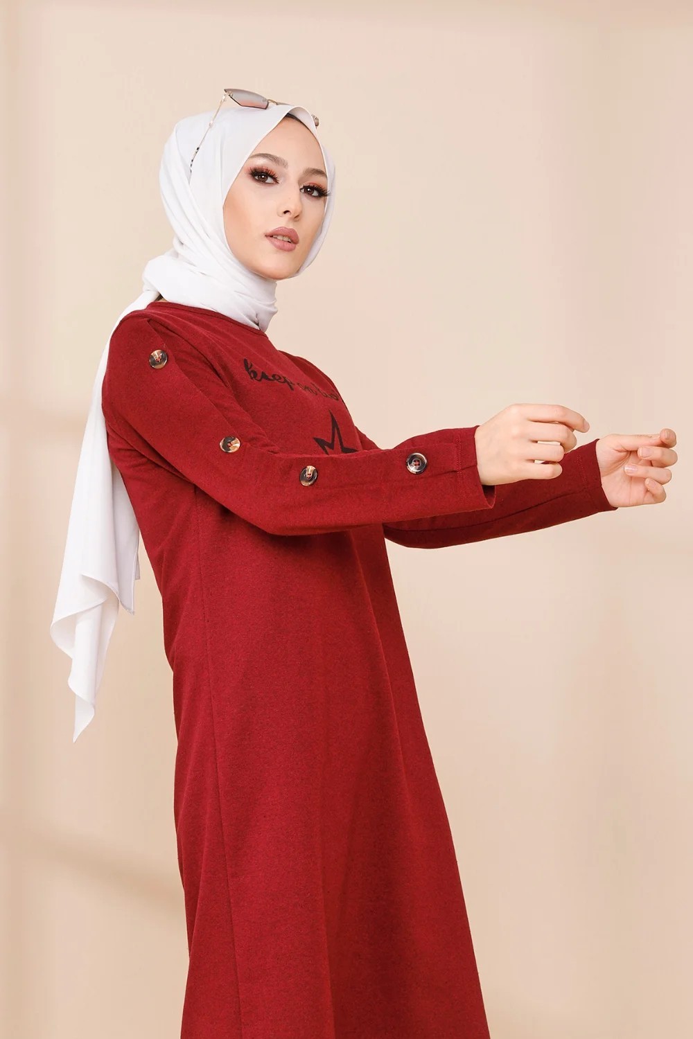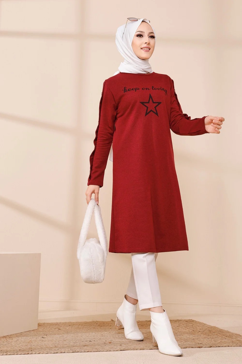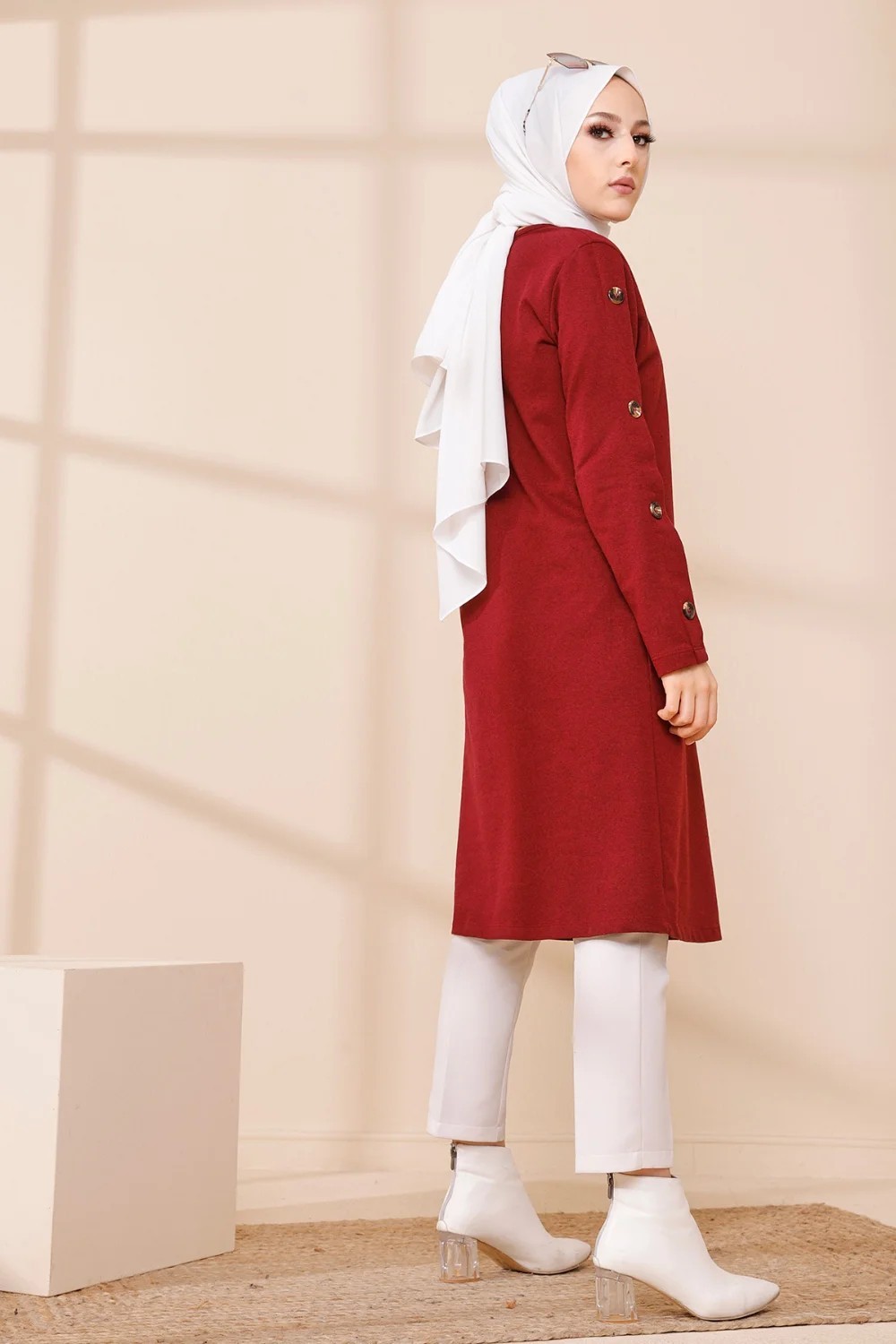 Chemise-Tunique fendue style habillé pour femme (Vêtement chic pour hijab) - Couleur bordeaux - REF. 37759 (24.90 €)
