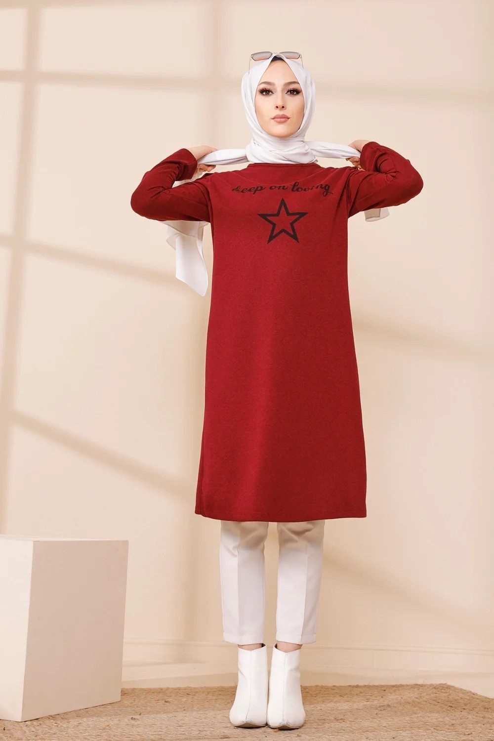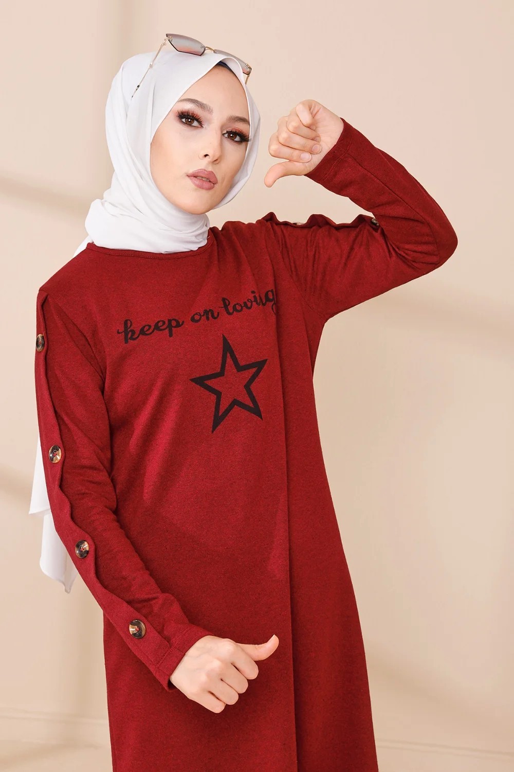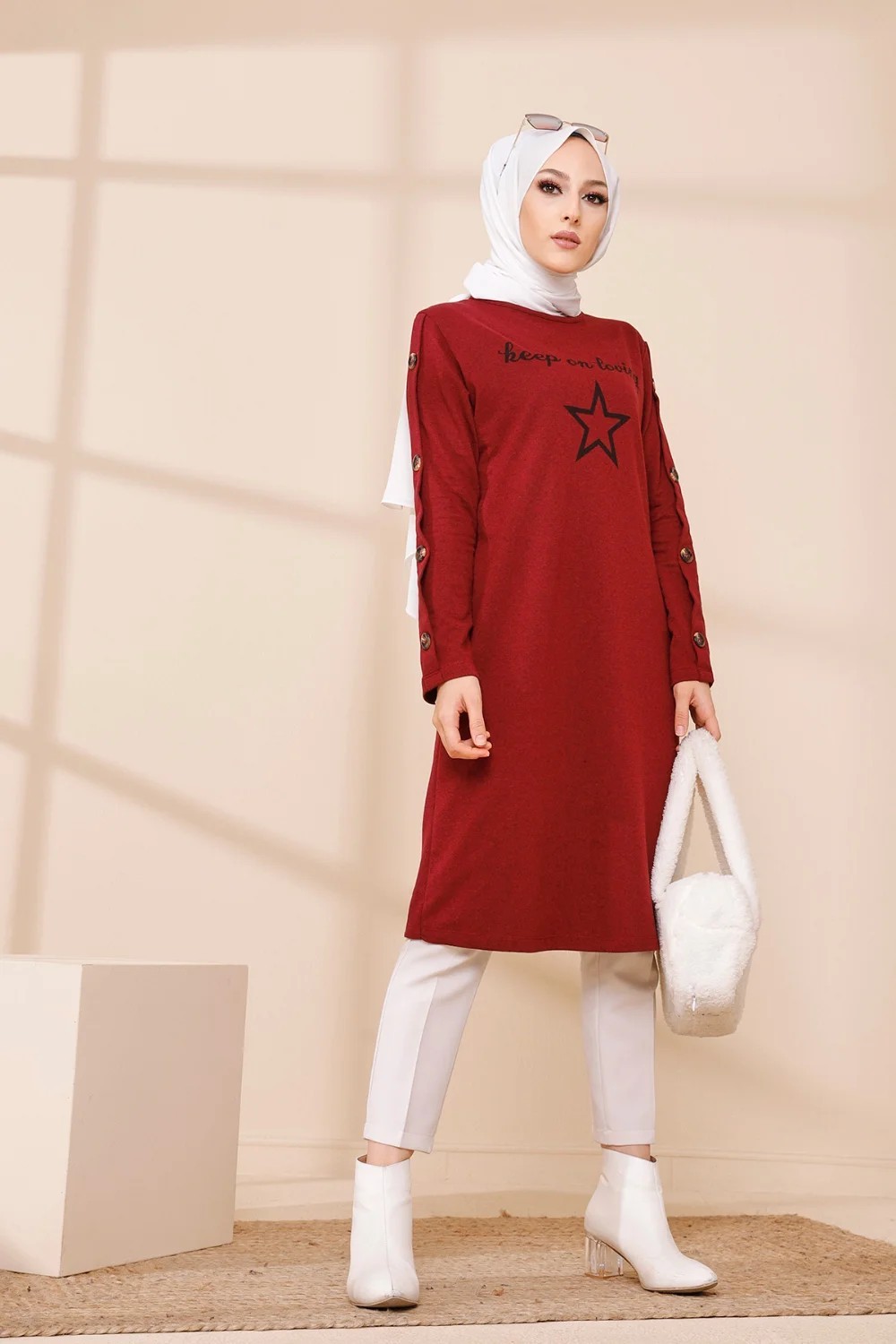Chemise-Tunique fendue style habillé pour femme (Vêtement chic pour hijab) - Couleur bordeaux - REF. 37759 (24.90 €)