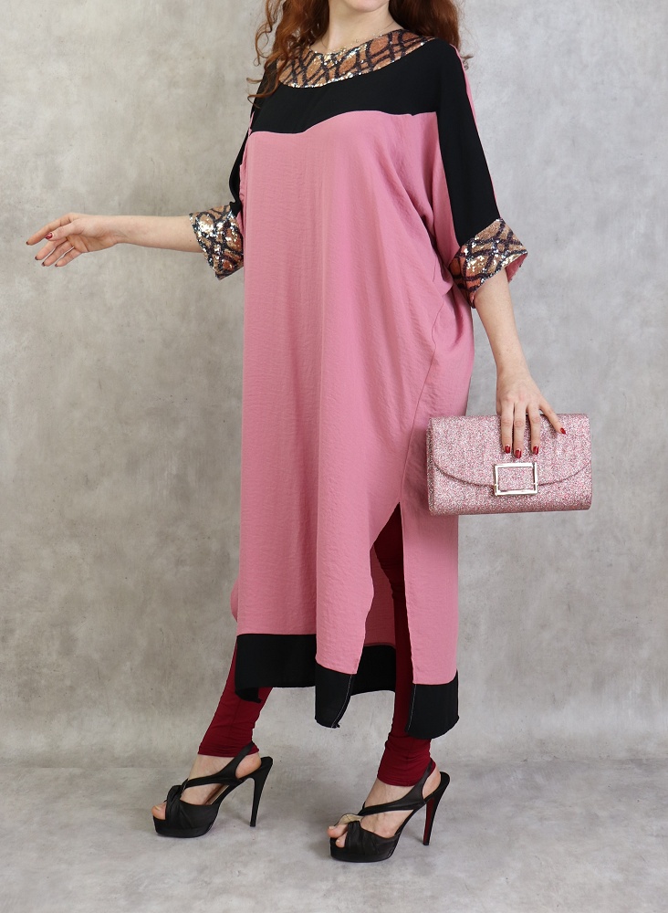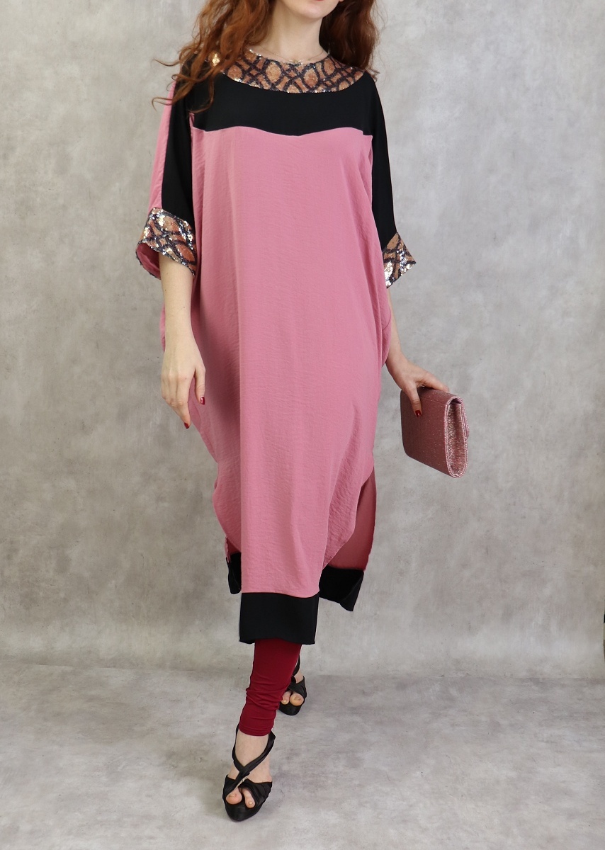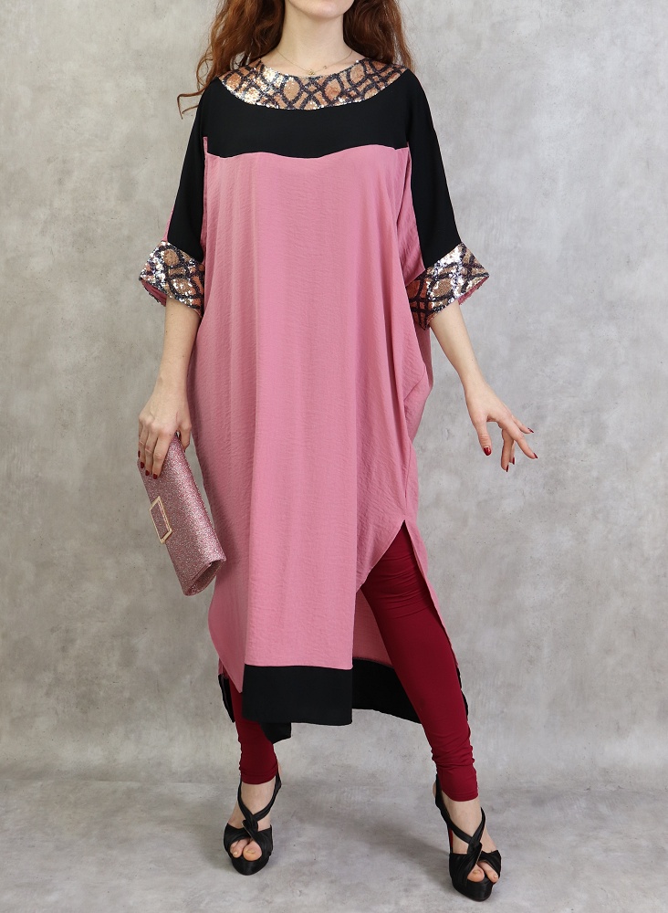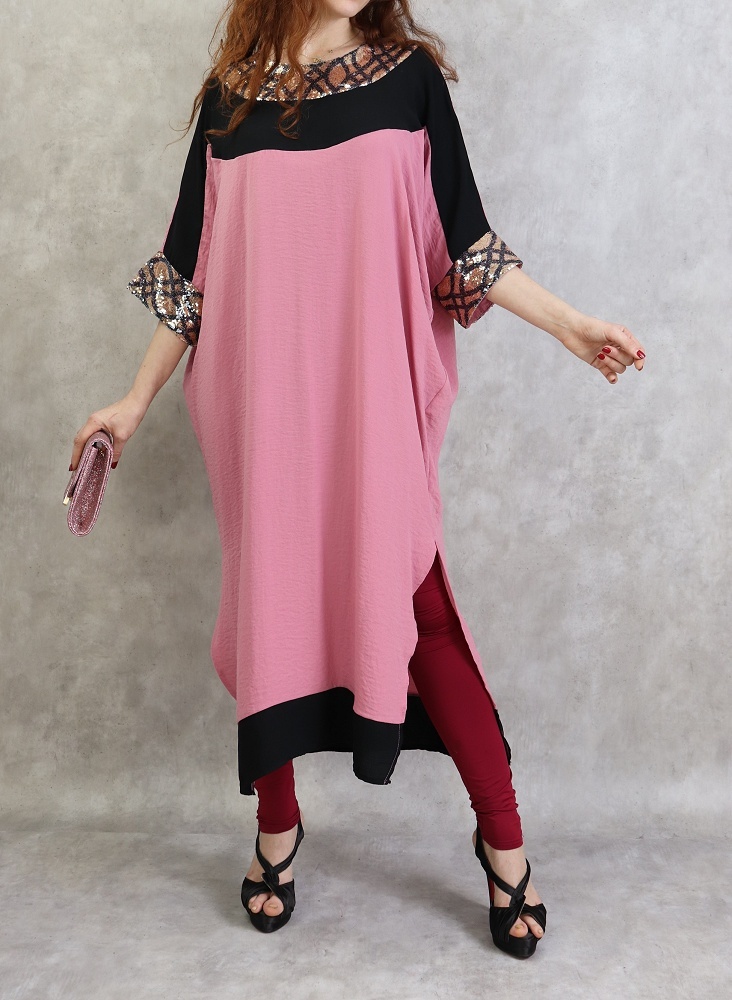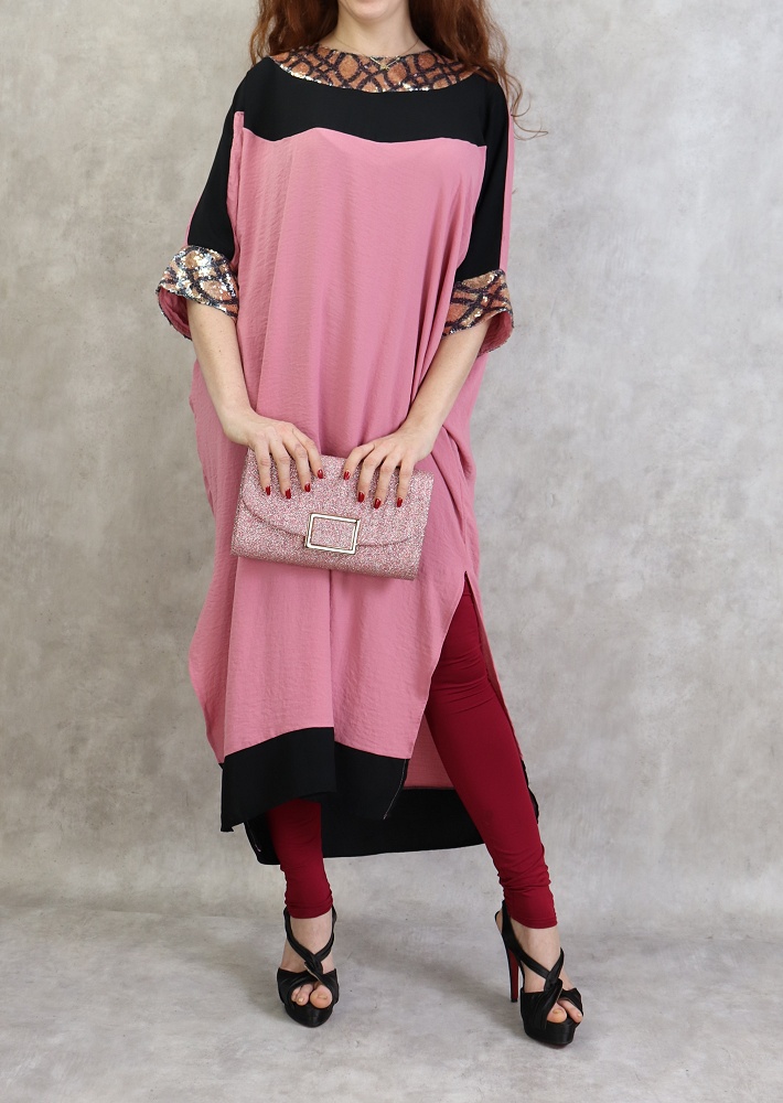 Tunique longue effet papillon à strass de couleur rose et noire Vetement & Accessoire