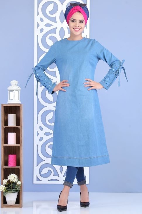 Tunique longue, col rond, fermeture zip au dos, manches finition lien de serrage et perles nacrées. Ce modèle reste le vêtement à avoir dans votre garde robe car il fait partie des indémodables qui s'associe à tout et en toute saison.