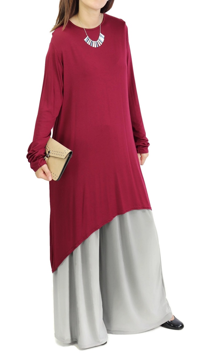 Tunique longue en viscose pour femme - Couleur Bordeaux Vetement & Accessoire