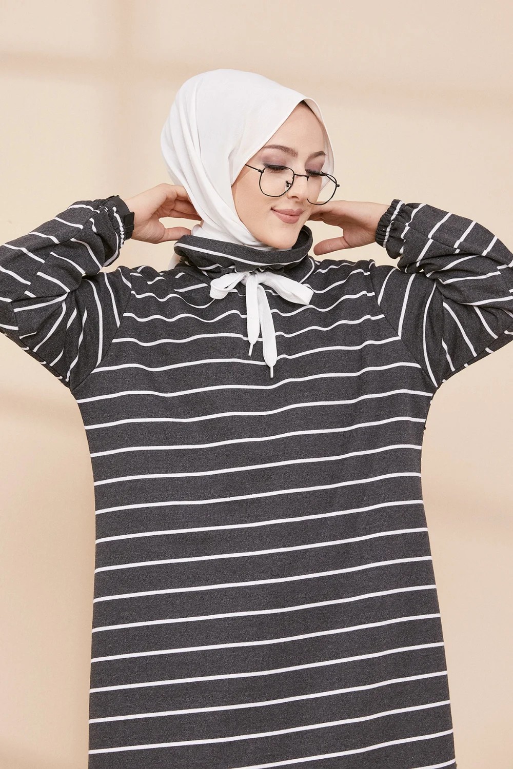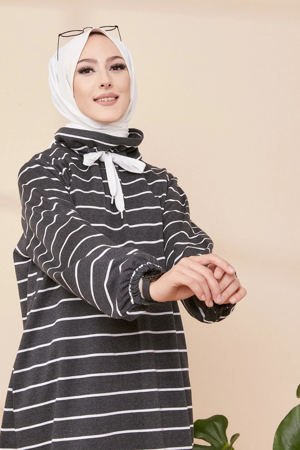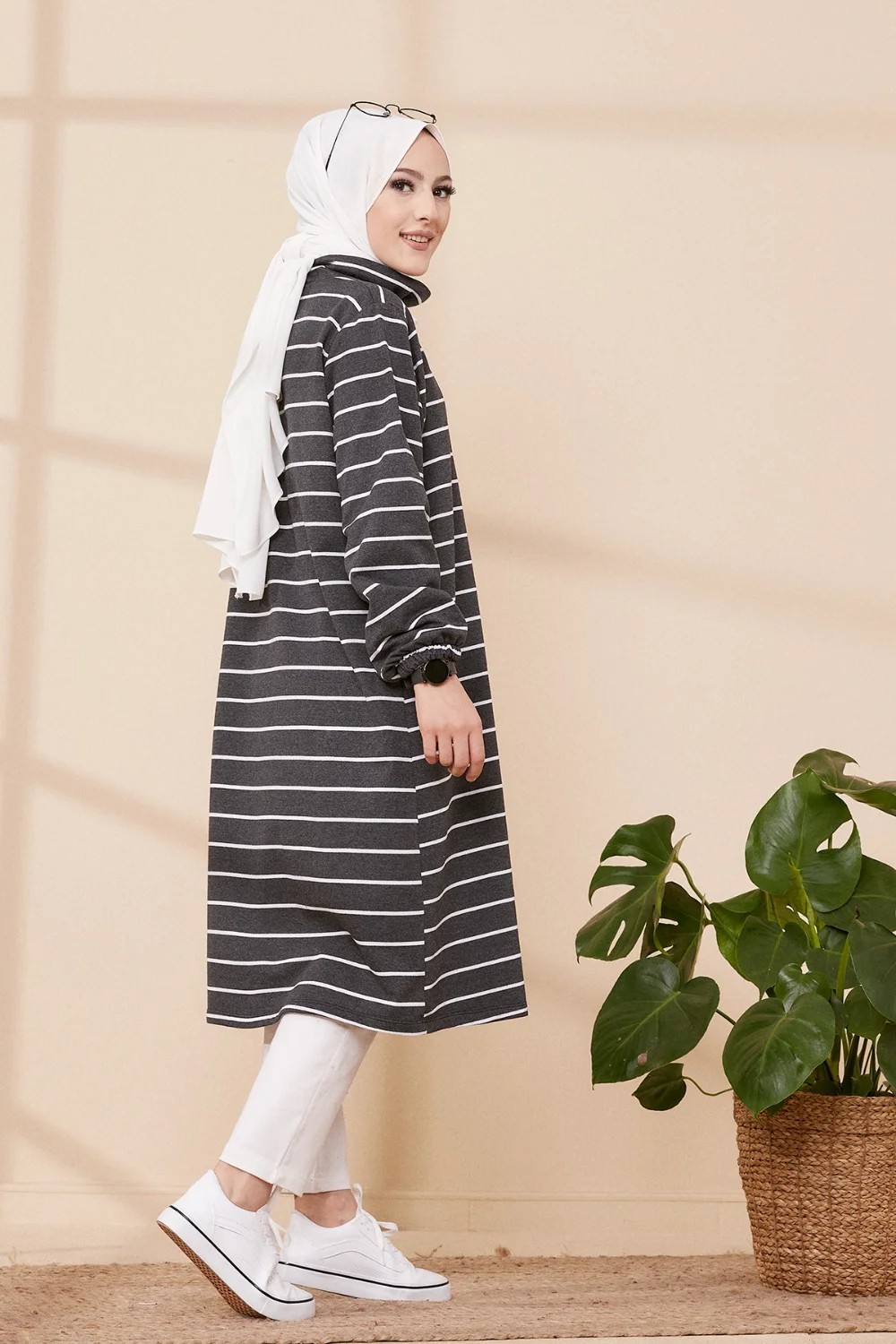 Tunique longue et ample à rayures pour femme (Vêtement décontracté pour Hijab) - Couleur anthracite Vetement & Accessoire