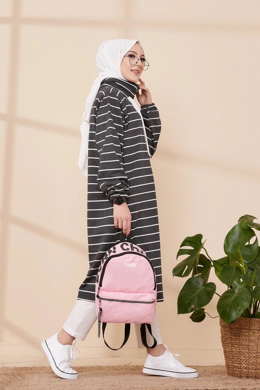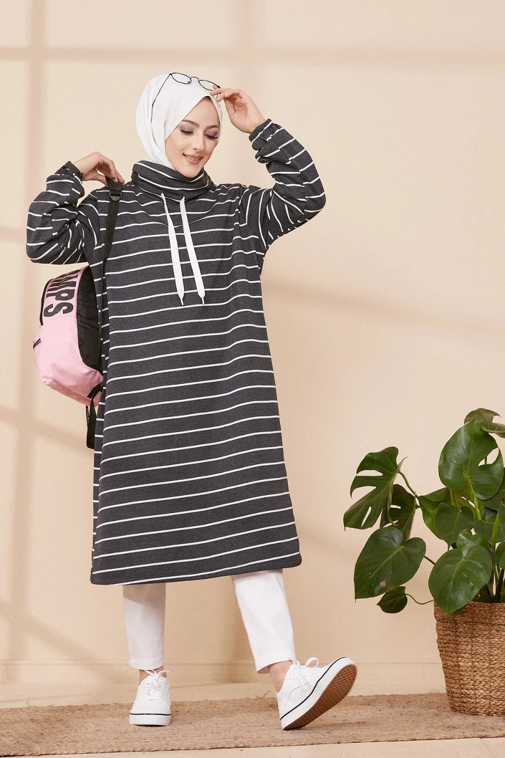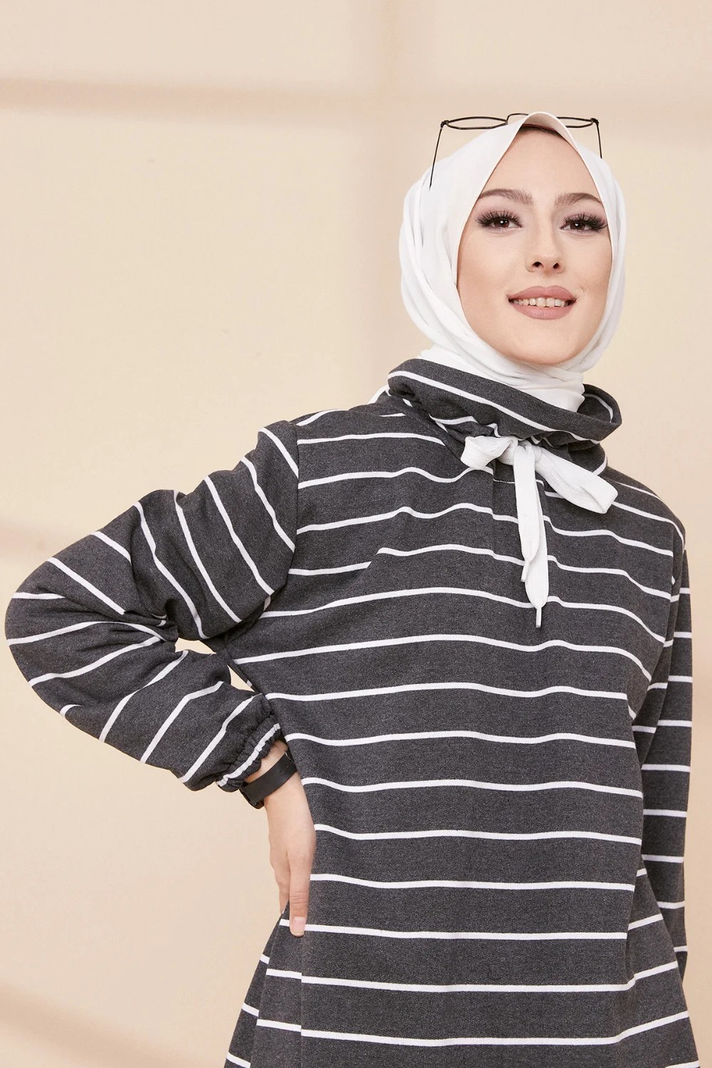 Tunique longue et ample à rayures pour femme (Vêtement décontracté pour Hijab) - Couleur anthracite Vetement & Accessoire
