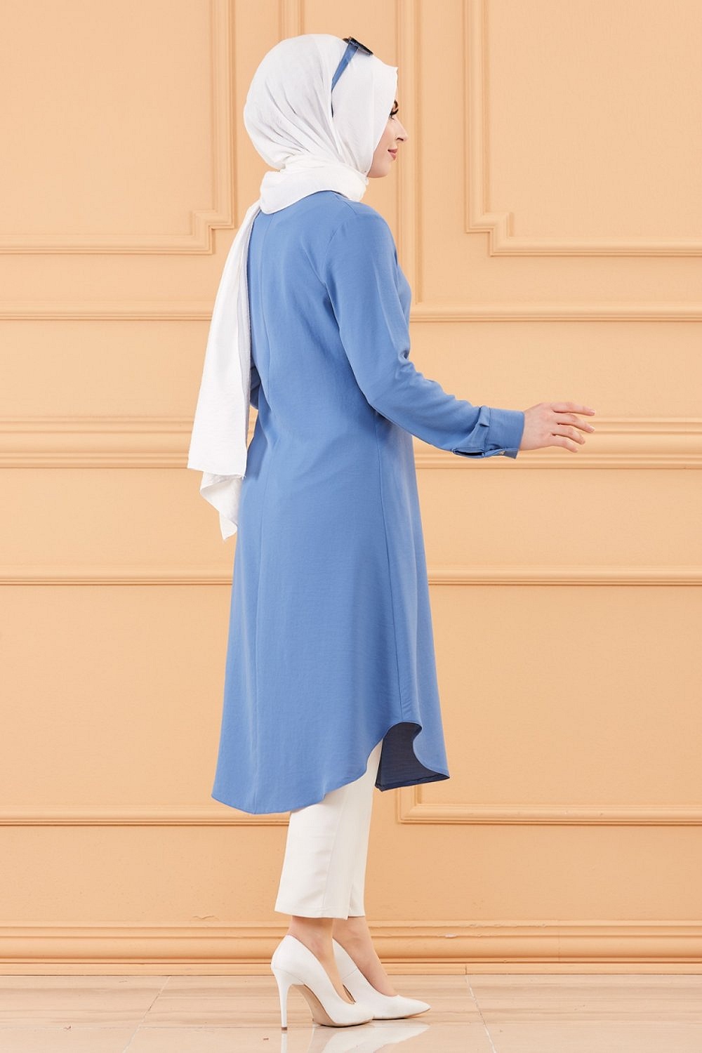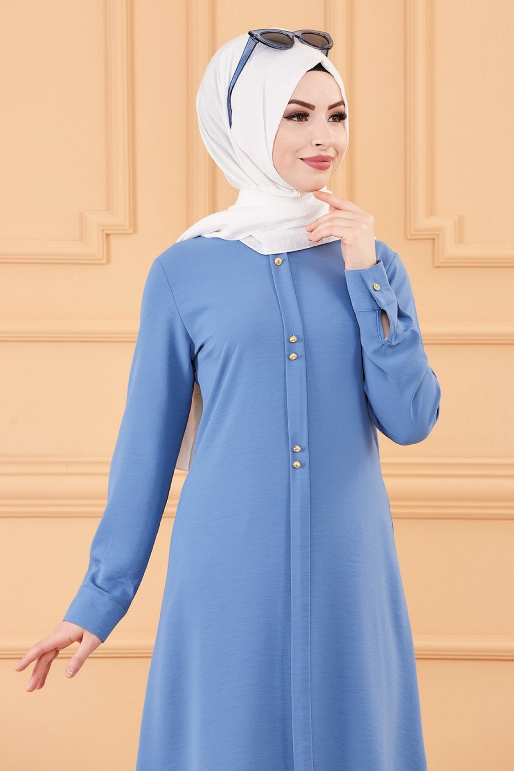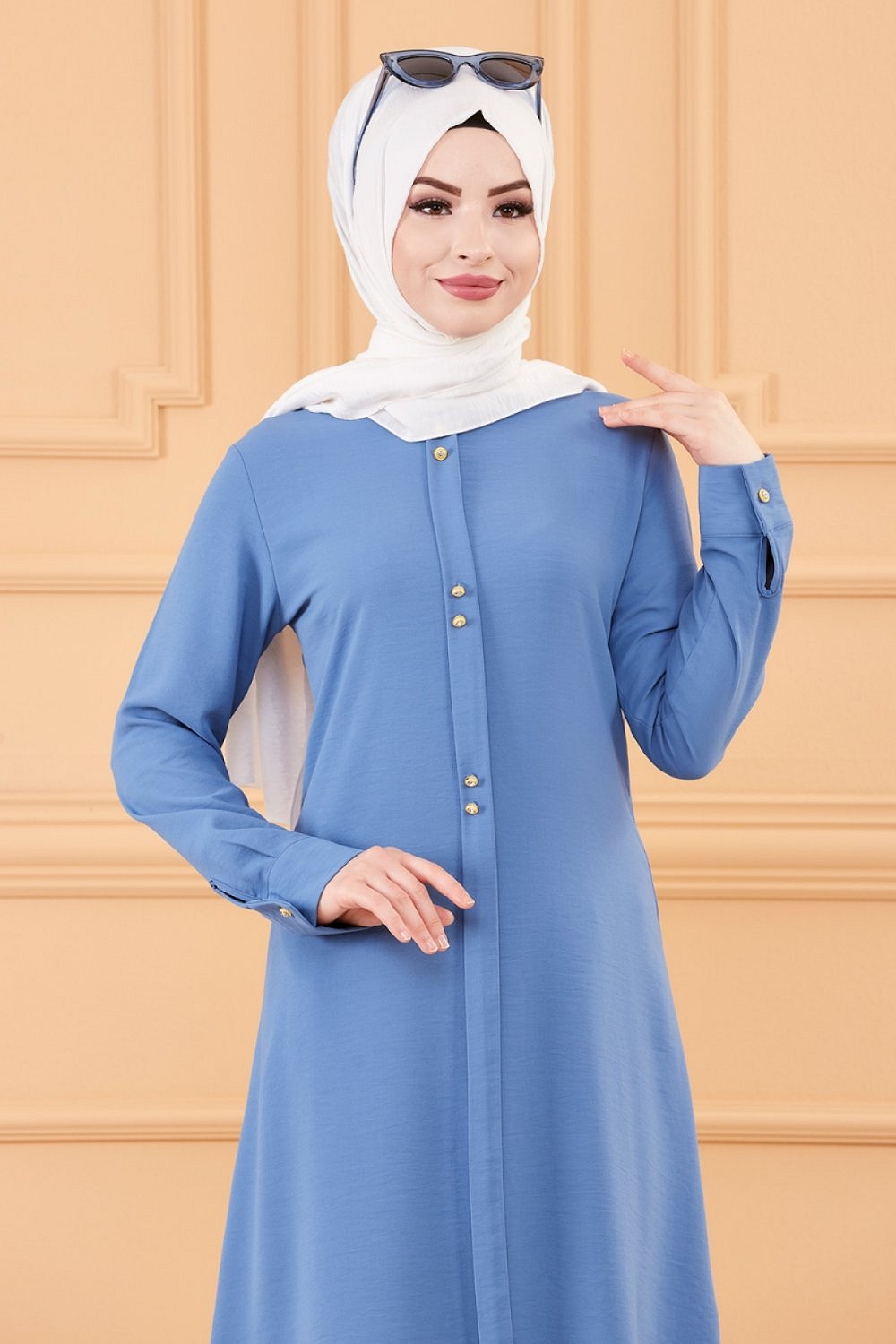 Tunique longue évasée boutonnée pour femme (Vêtement style habillé pour hijab) - Couleur bleu indigo Vetement & Accessoire