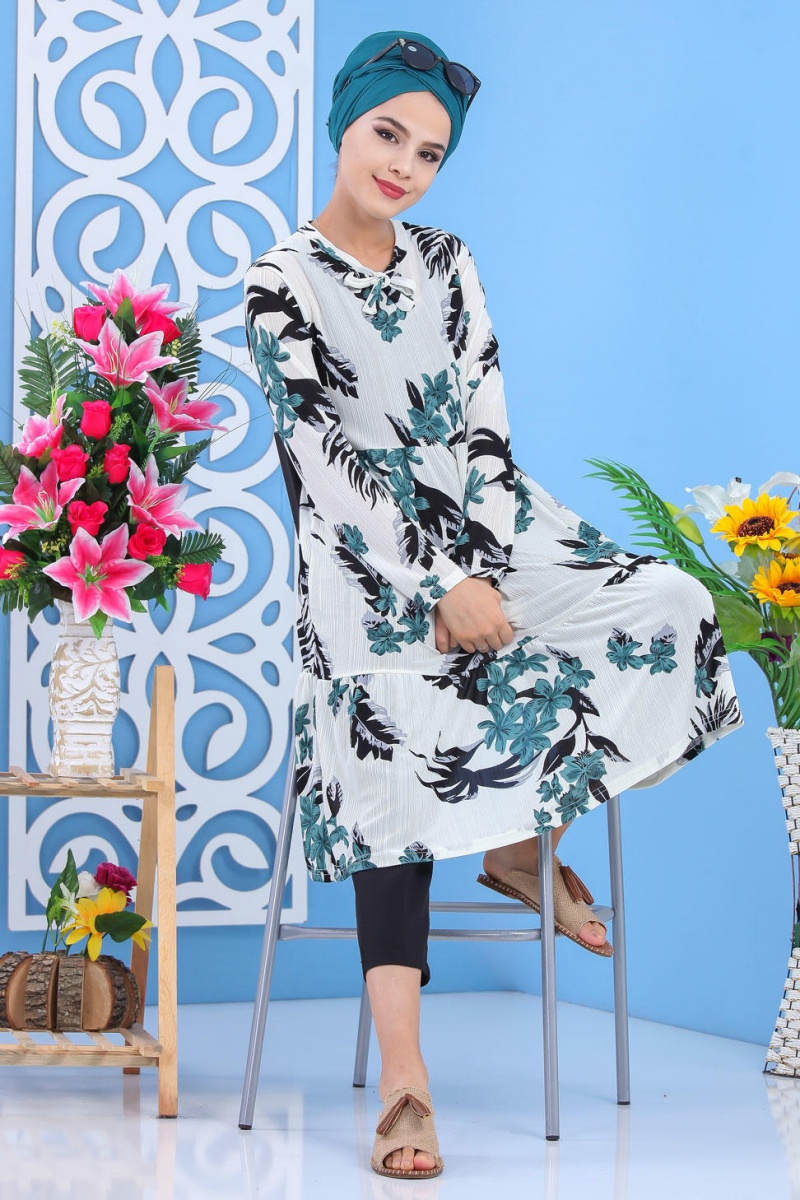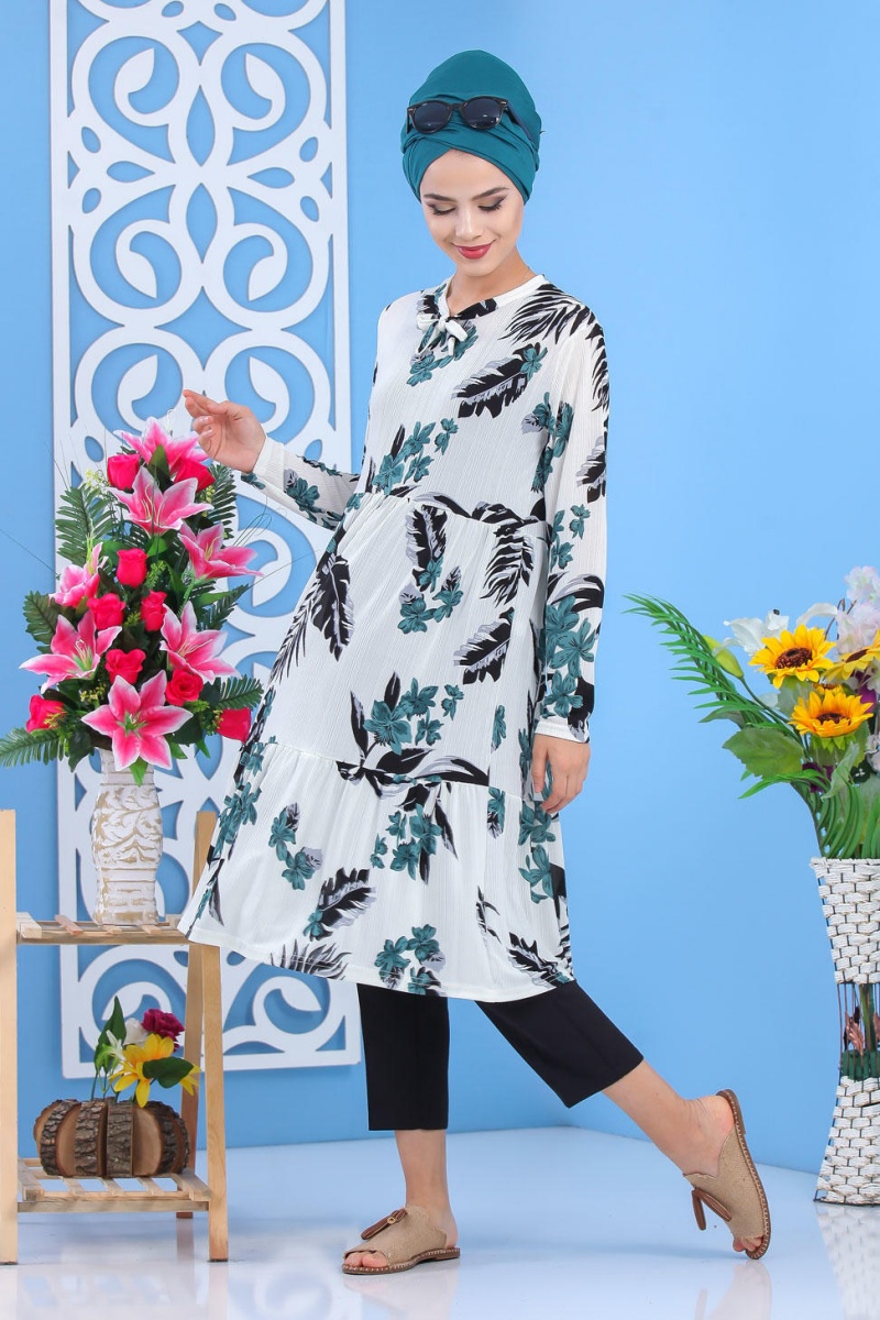 Tunique longue imprimée floral vert-noir pour femme Vetement & Accessoire