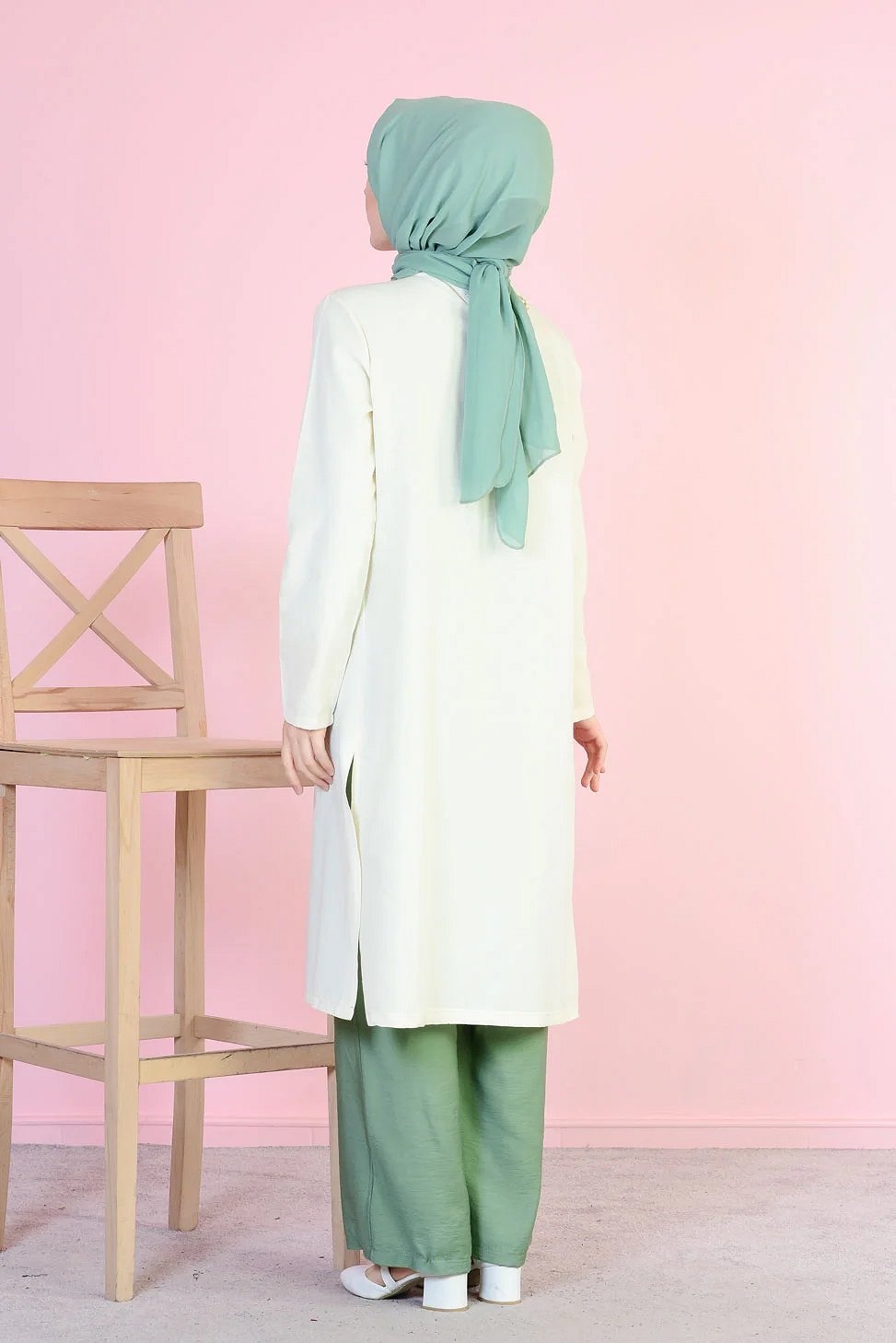 Chemise longue et ample pour femme (Vetement hijab tendance) - Couleur rose poudré - REF. 35639 (28.00 €) - En Promotion à 19.90 €