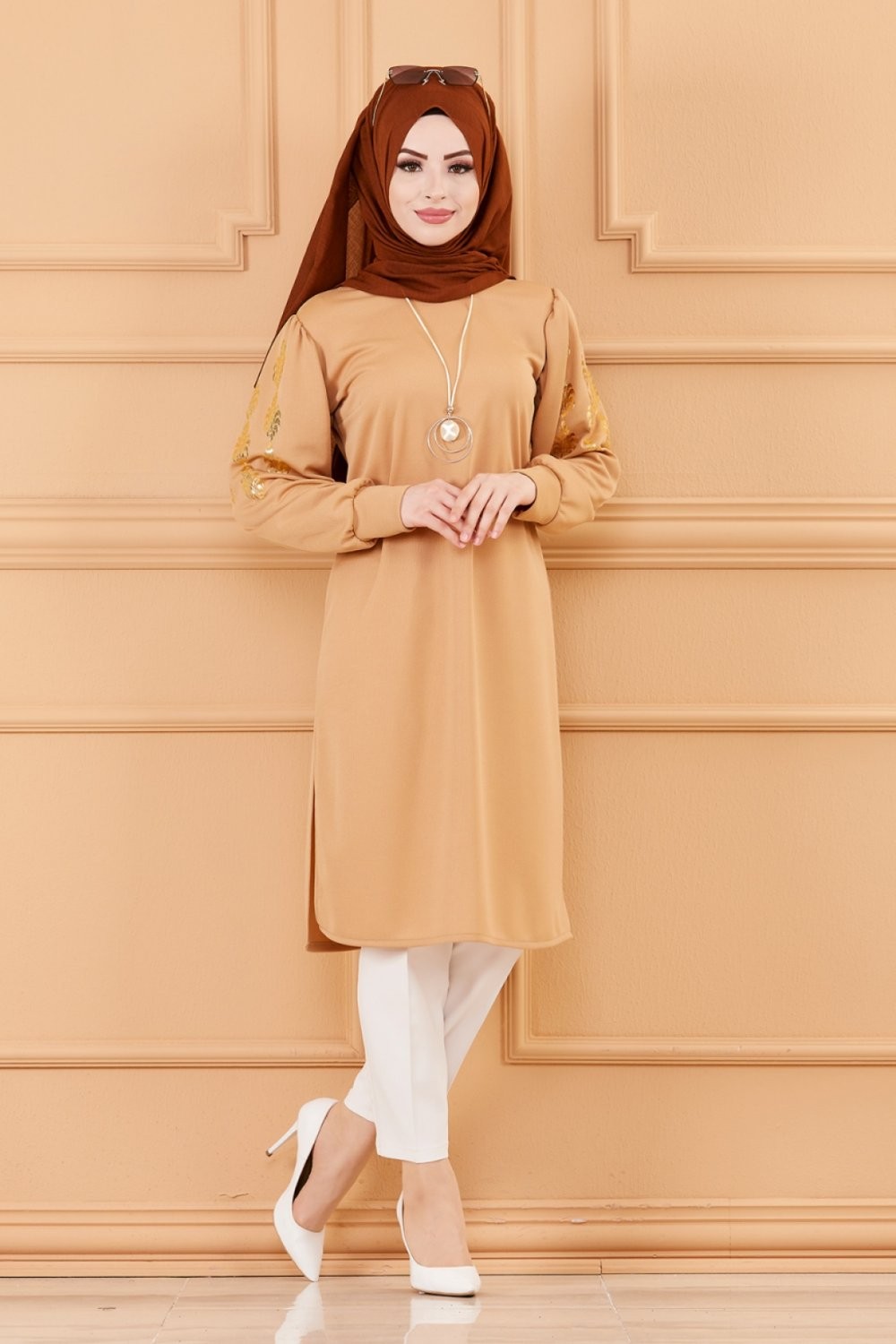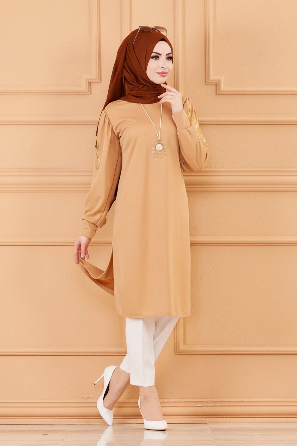 Tunique longue pour femme (Vetement hijab pour toute l'année) - Couleur vison Vetement & Accessoire