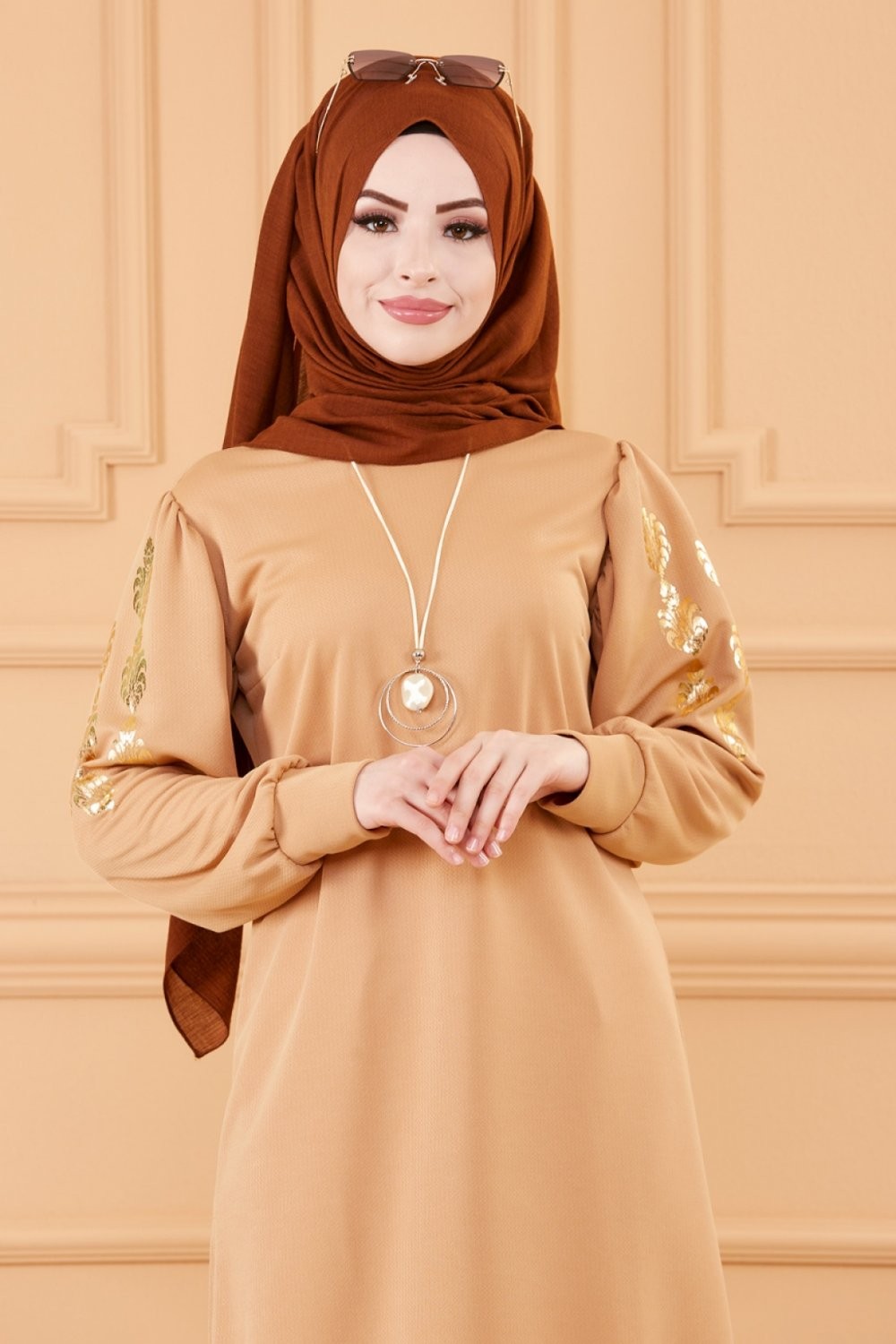Tunique longue pour femme (Vetement hijab pour toute l'annee) - Couleur vison