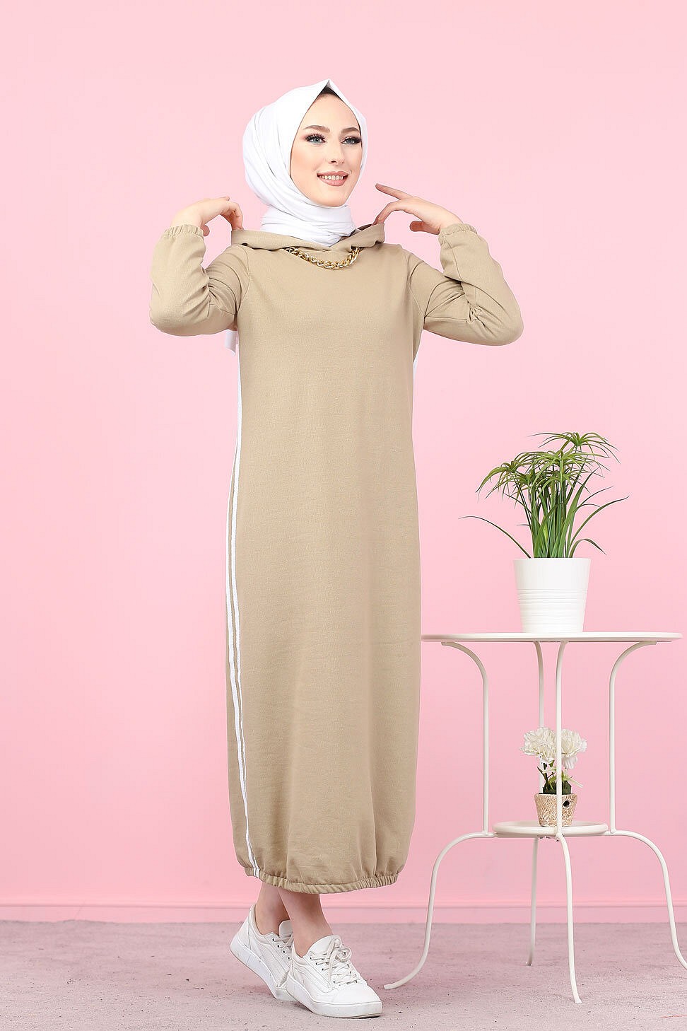 Robe moderne décontractée à capuche pour femme (Modest Fashion) - Couleur noir blanc et kaki - REF. 32965 (24.90 €) - En Promotion à 17.90 €