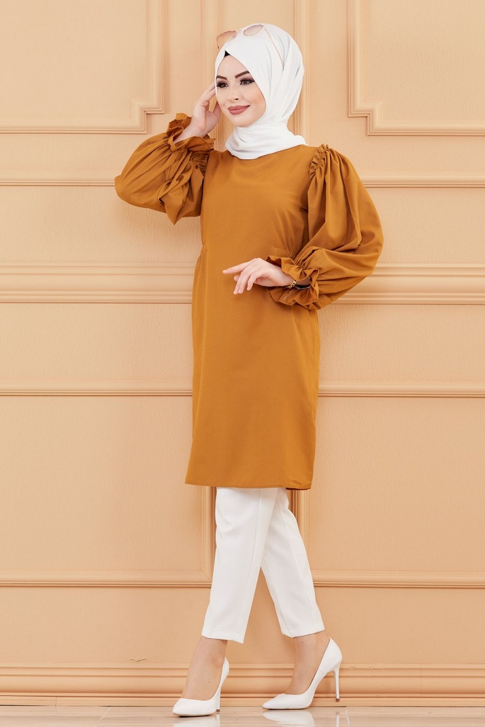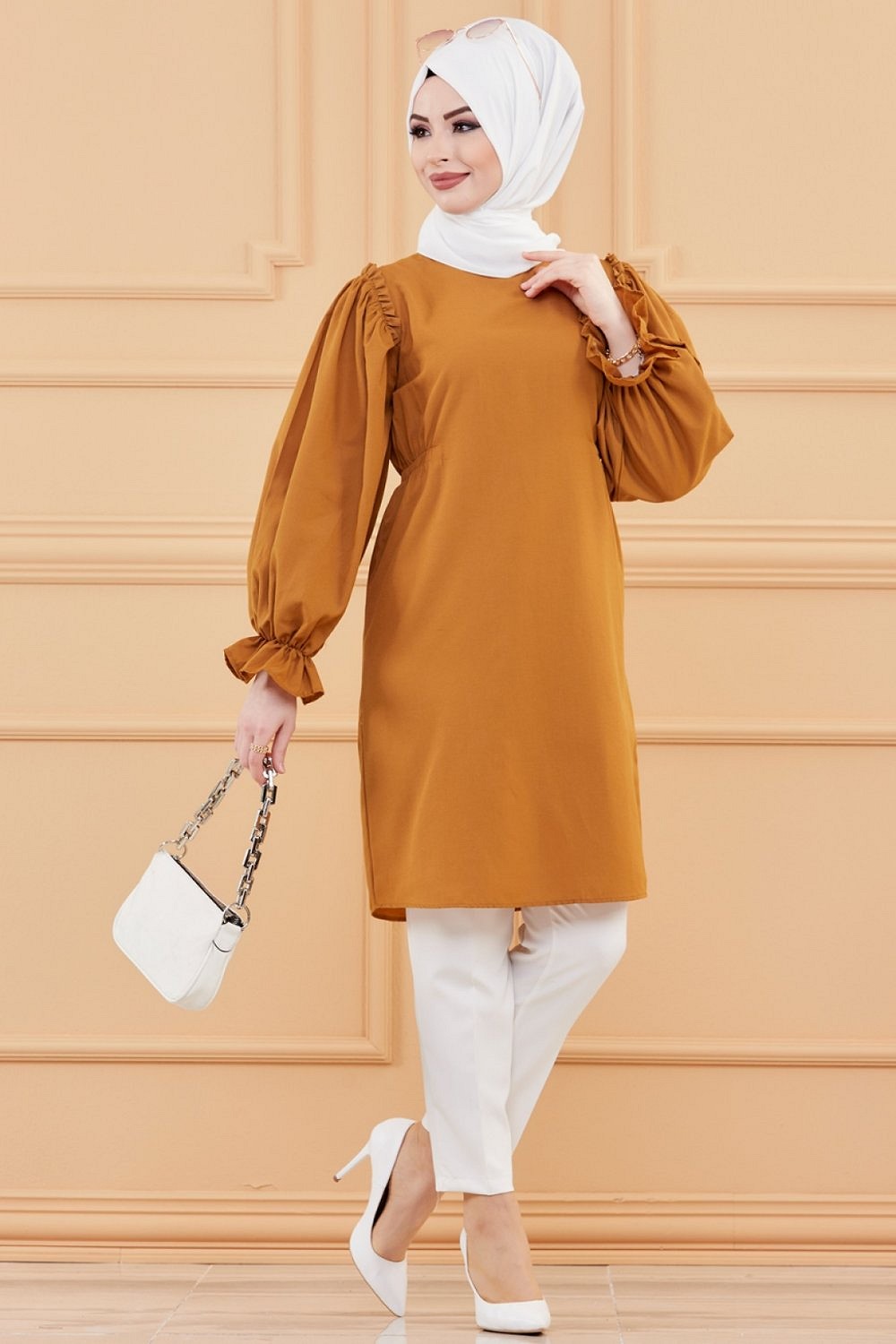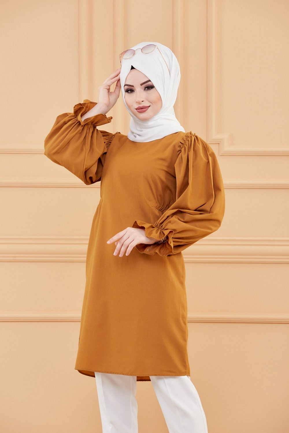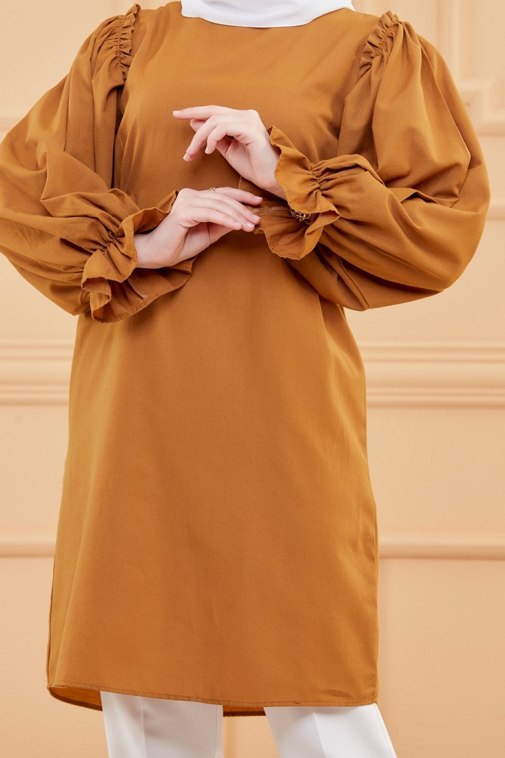 Tunique manches ballon (Tenue style habille pour hijab) - Couleur tabac