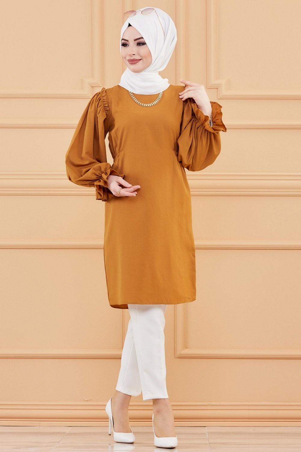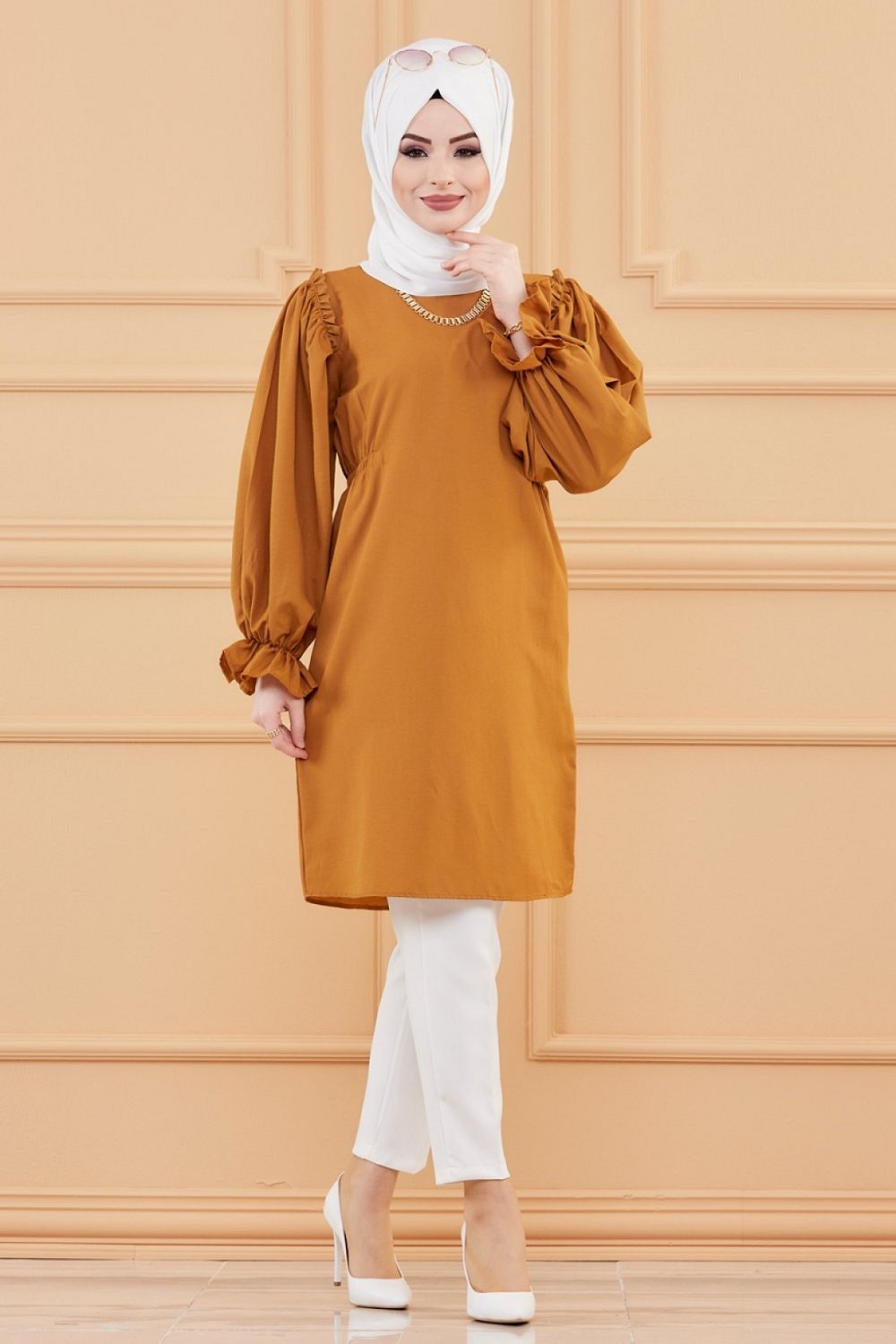 Tunique manches ballon (Tenue style habillé pour hijab) - Couleur tabac Vetement & Accessoire