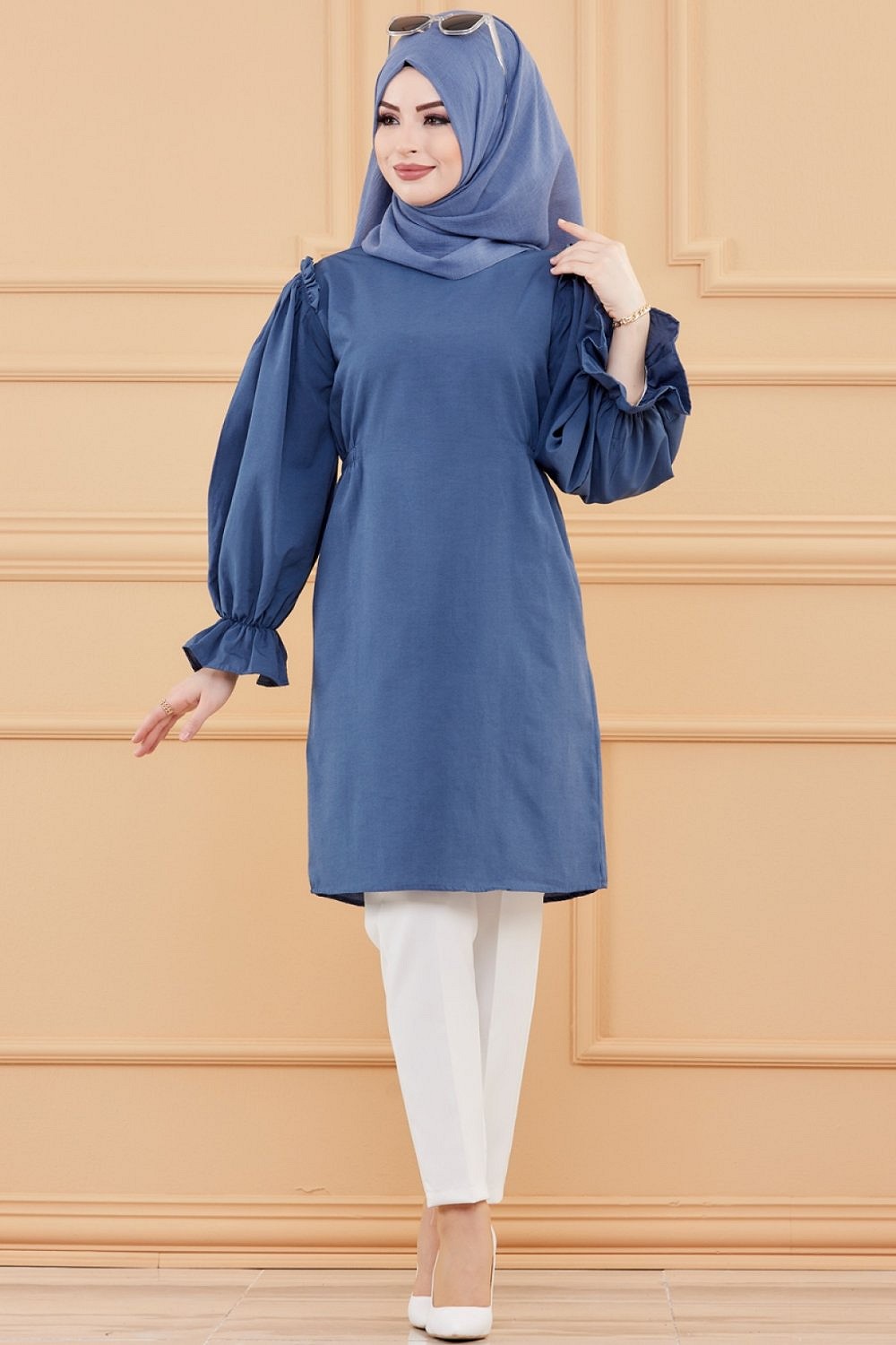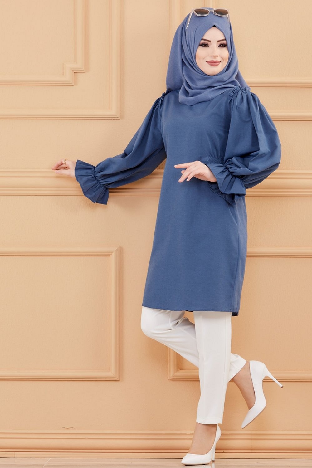Tunique manches ballon (Vetement hijab habille pour femme) - Couleur bleu petrole