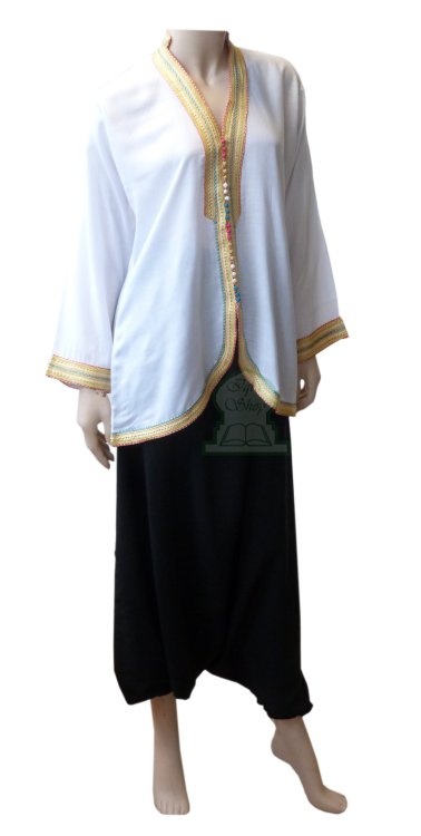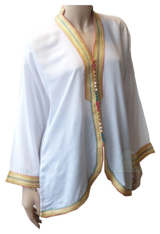 Tunique marocaine blanche courte avec noeuds multicouleurs Vetement & Accessoire