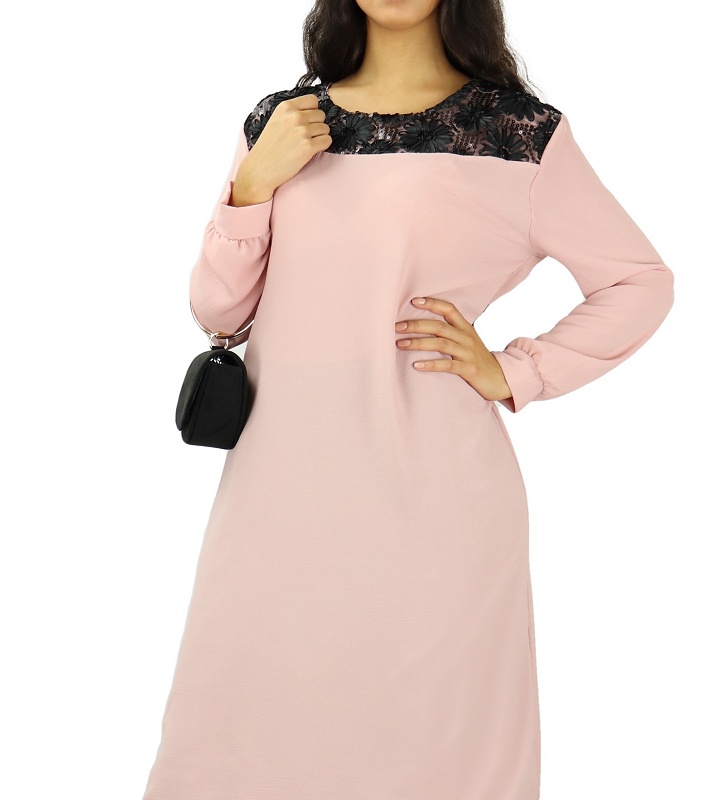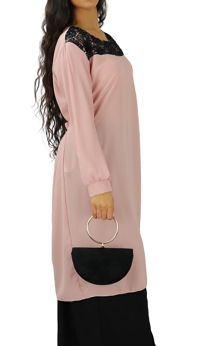 Tunique mi-longue haut dentelle et strass - Couleur Rose Vetement & Accessoire