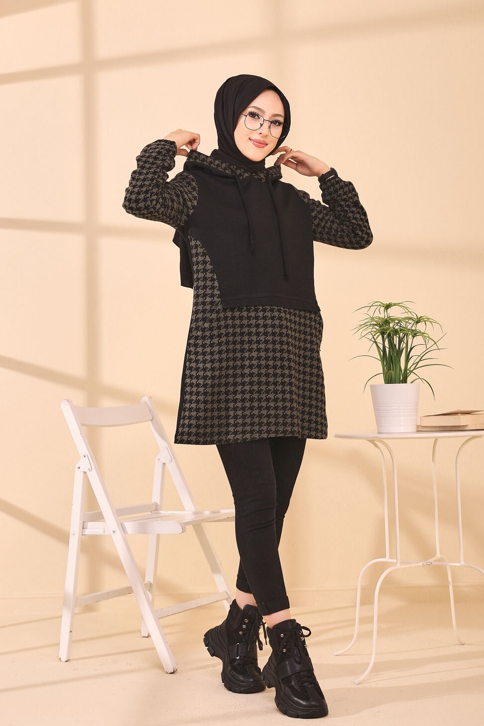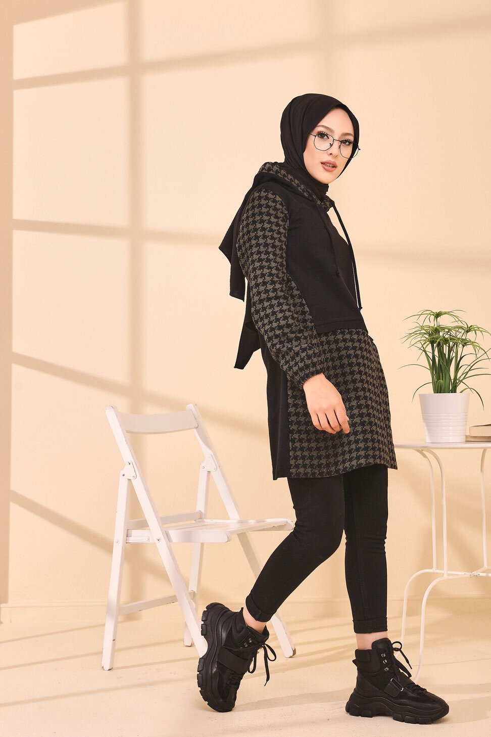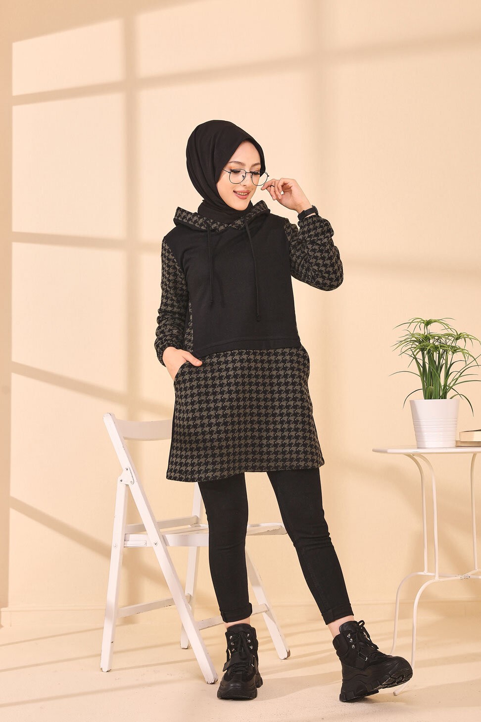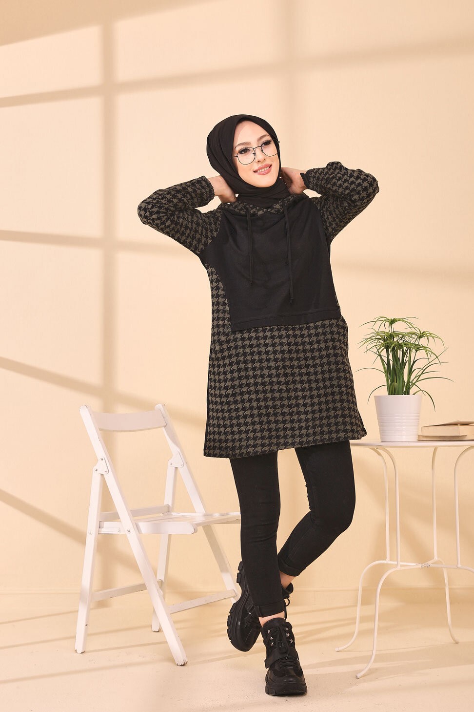Tunique moderne avec capuche (Vêtement Hijab) - Couleur noir et kaki Vetement & Accessoire