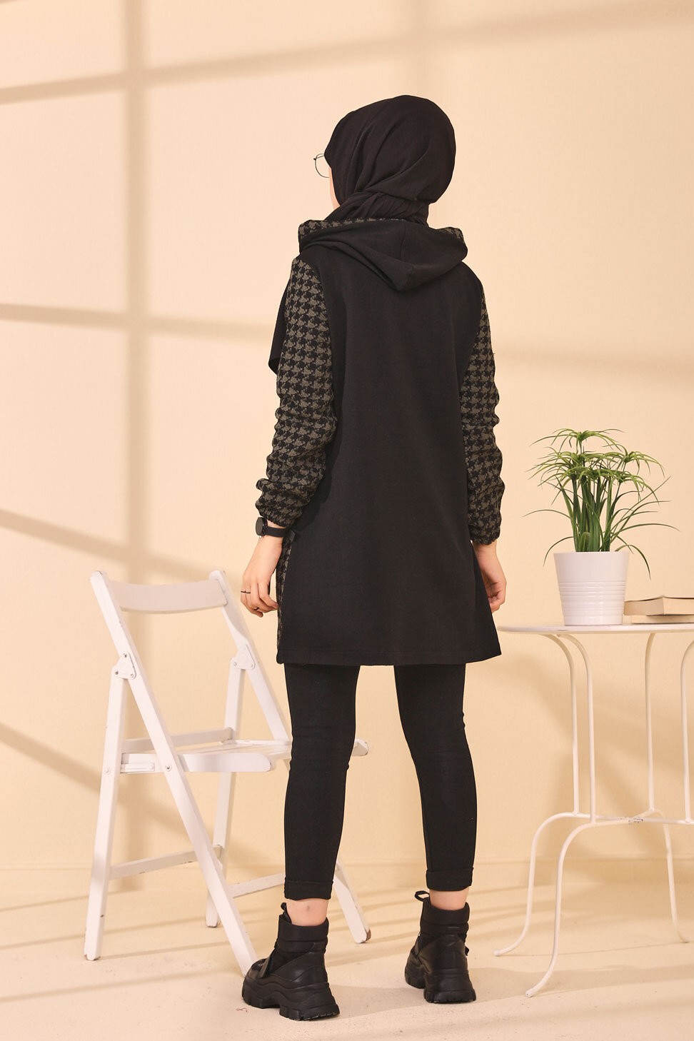 Cardigan style décontracté et sport zippé à capuche pour femme (Vêtement islamique moderne - France) - Couleur noir - REF. 37508 (26.00 €)