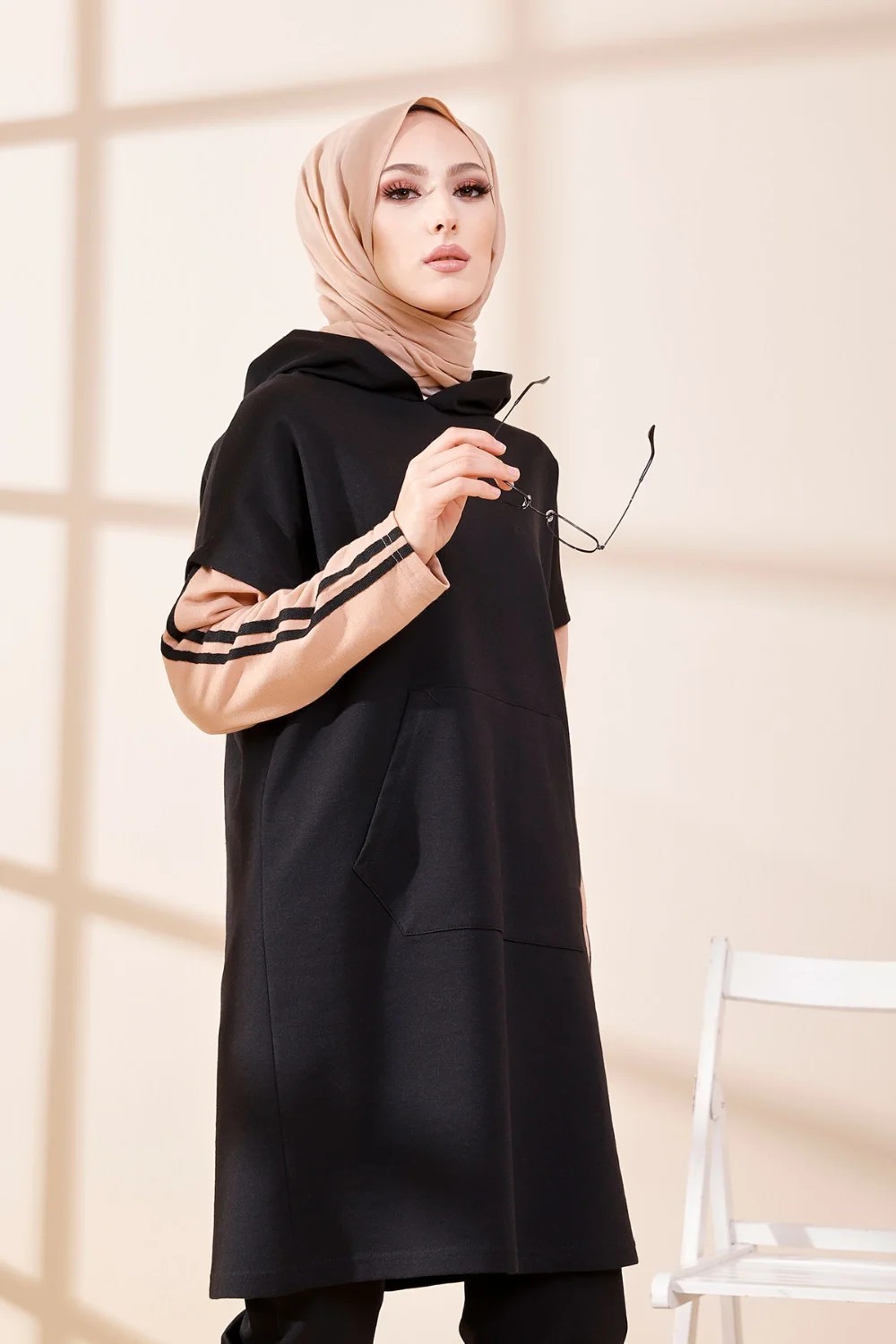 Tunique avec capuche bicolore (Vêtement moderne pour femme voilée - Collection) - Couleur noir et blanc - REF. 35841 (23.00 €)