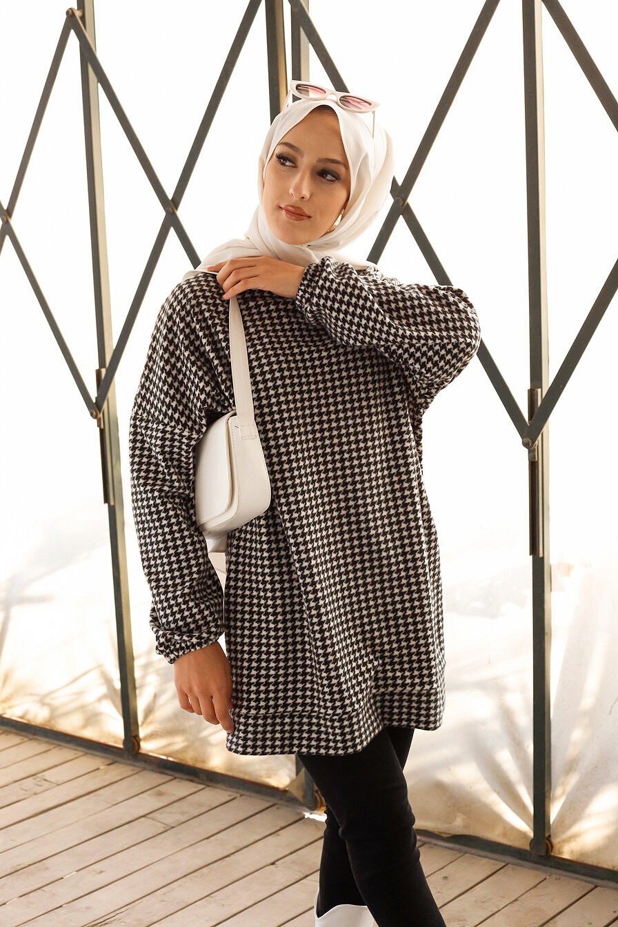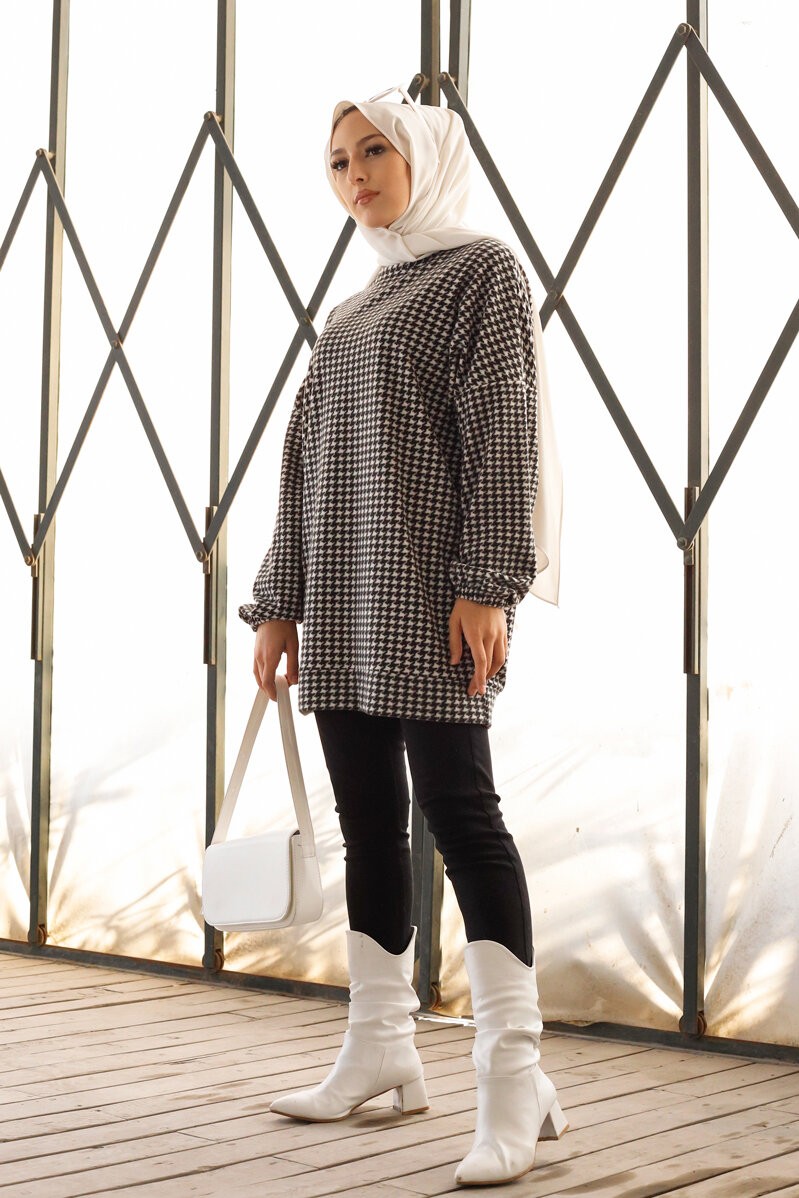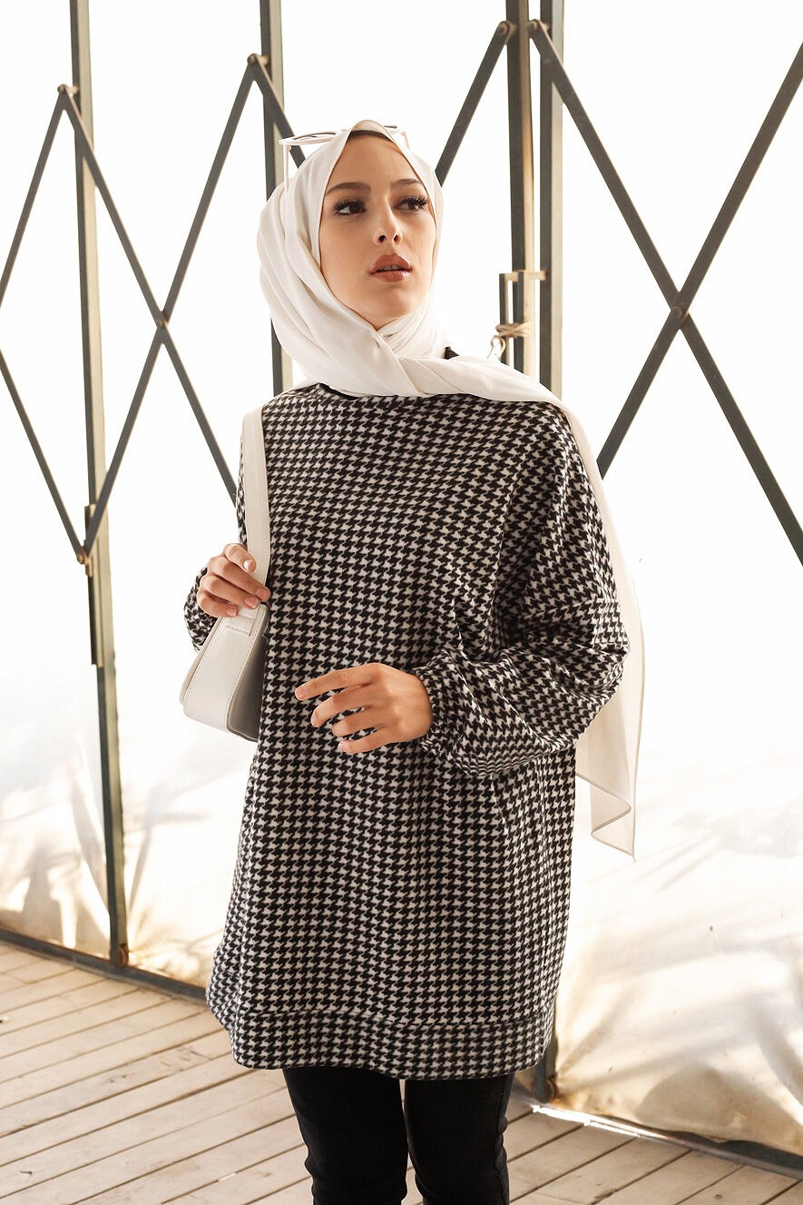 Tunique noire et blanche pour femme (Vêtement Hijab pour Saison Automne-Hiver) - Motif noir et blanc Vetement & Accessoire