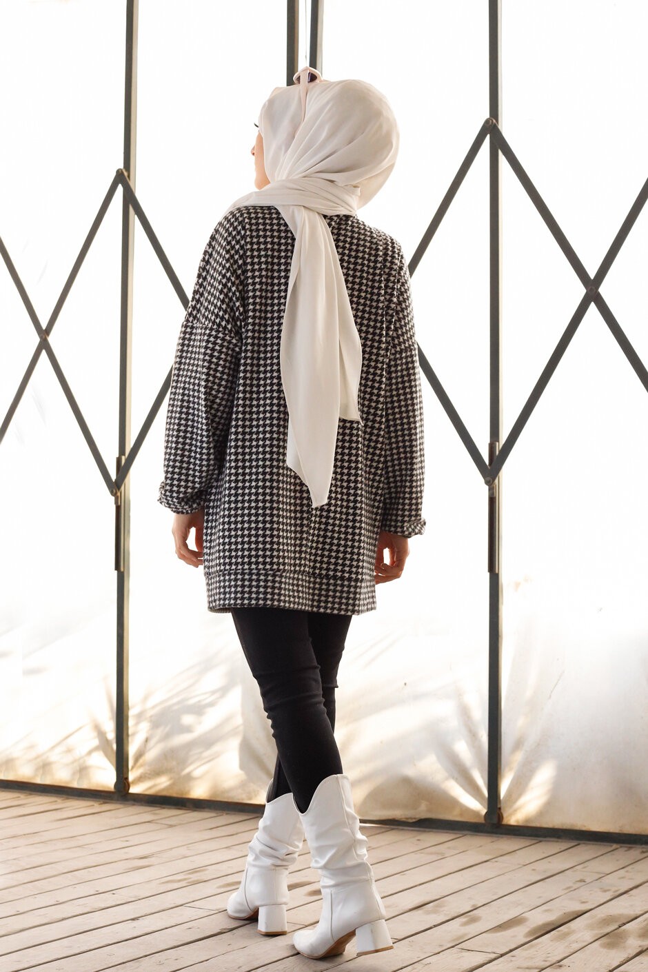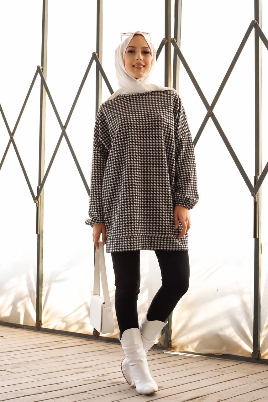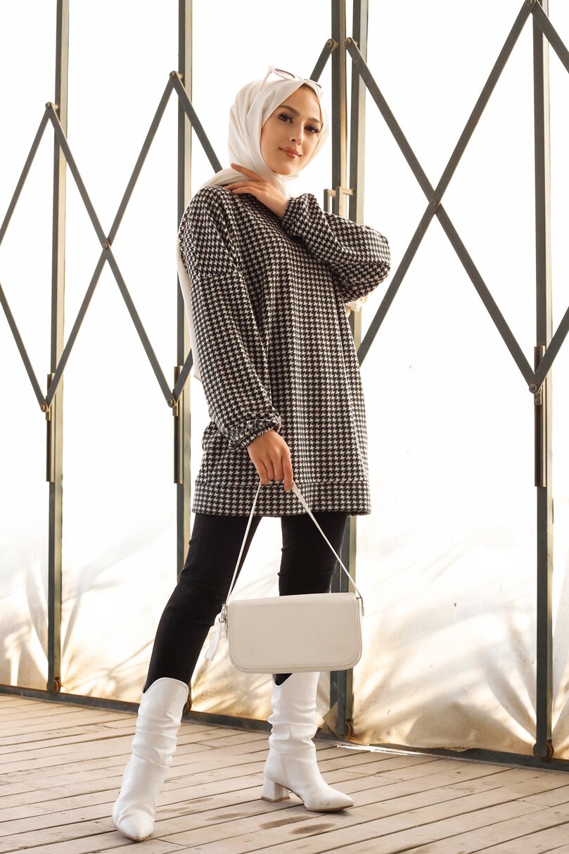 Tunique noire et blanche pour femme (Vêtement Hijab pour Saison Automne-Hiver) - Motif noir et blanc Vetement & Accessoire