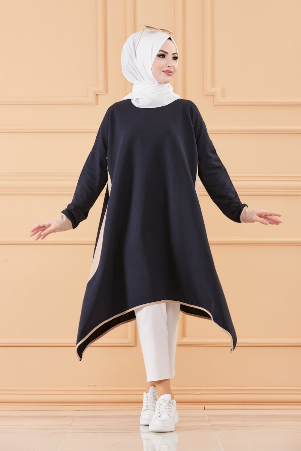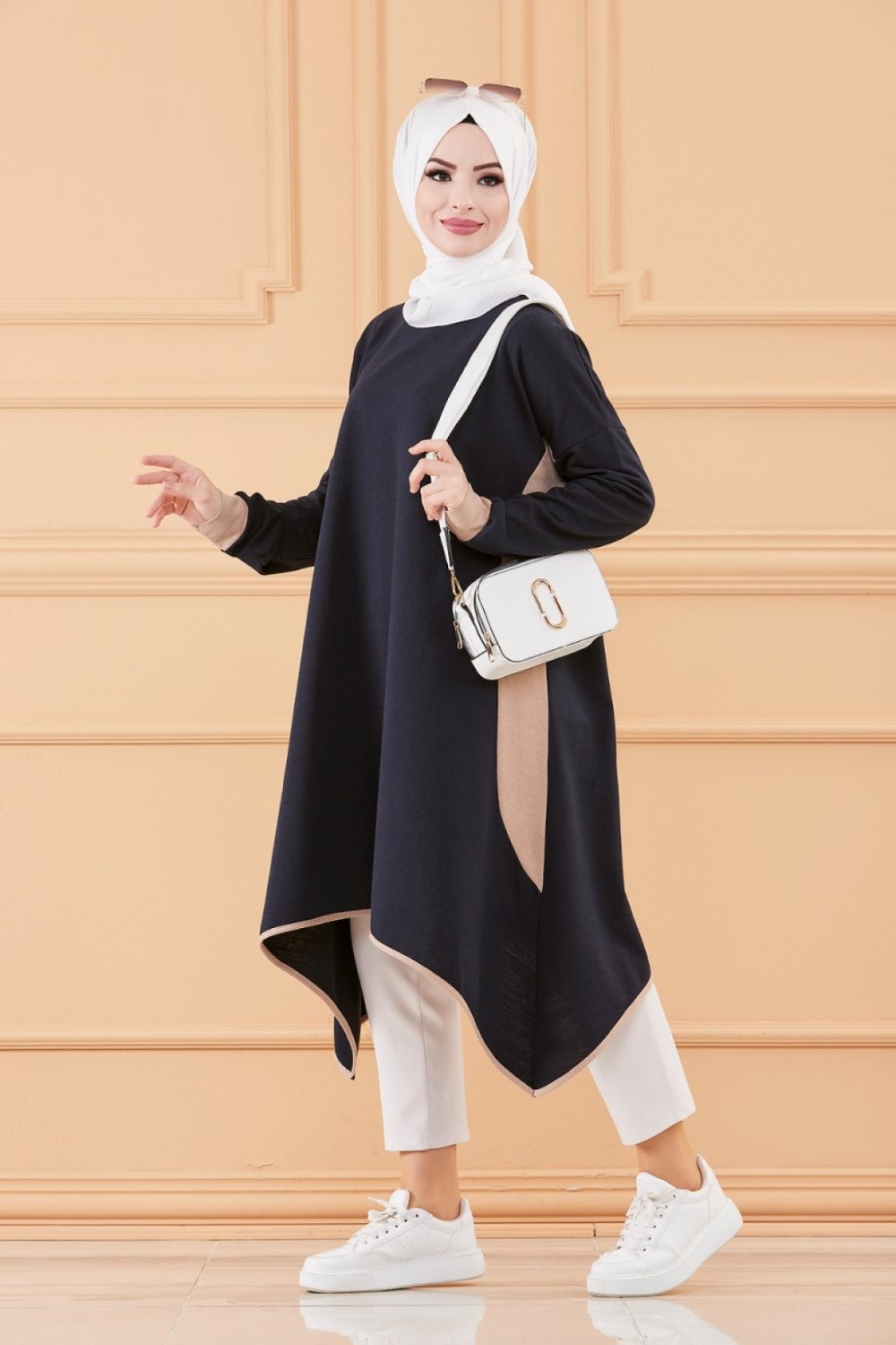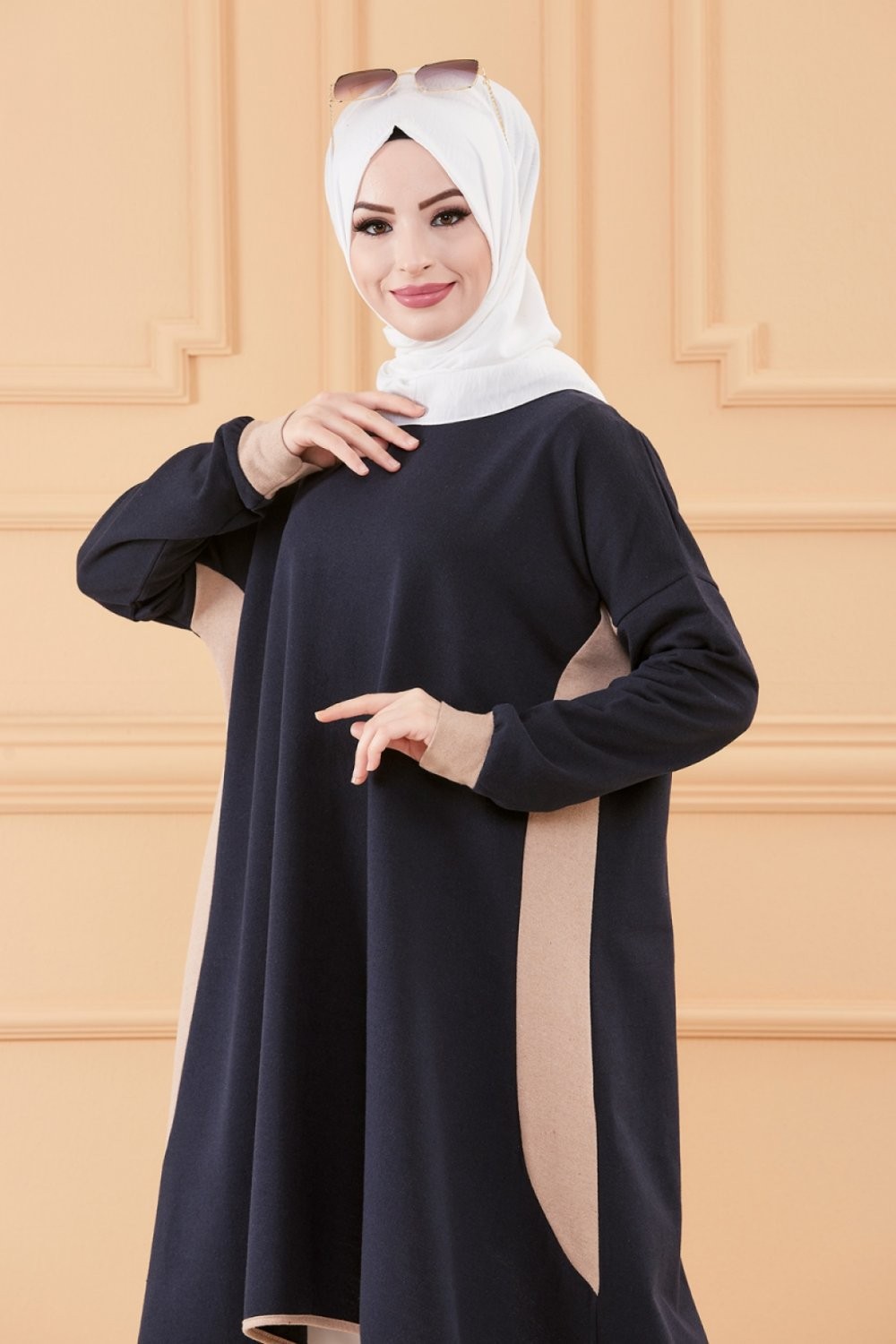 Robe - Tunique longue pour femme (Casual Hijab Outfit 2025) - Couleur bleu marine - REF. 38341 (28.00 €)