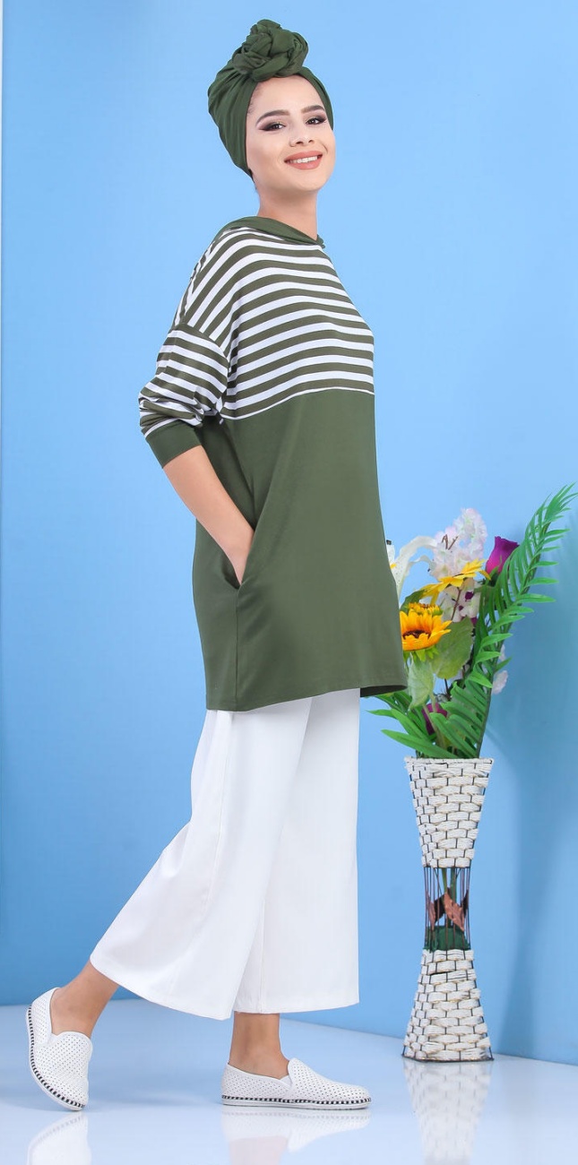 Tunique ample coupe originale (Vetement Hijab pour femme voilée) - Couleur kaki - REF. 33943 (19.90 €)