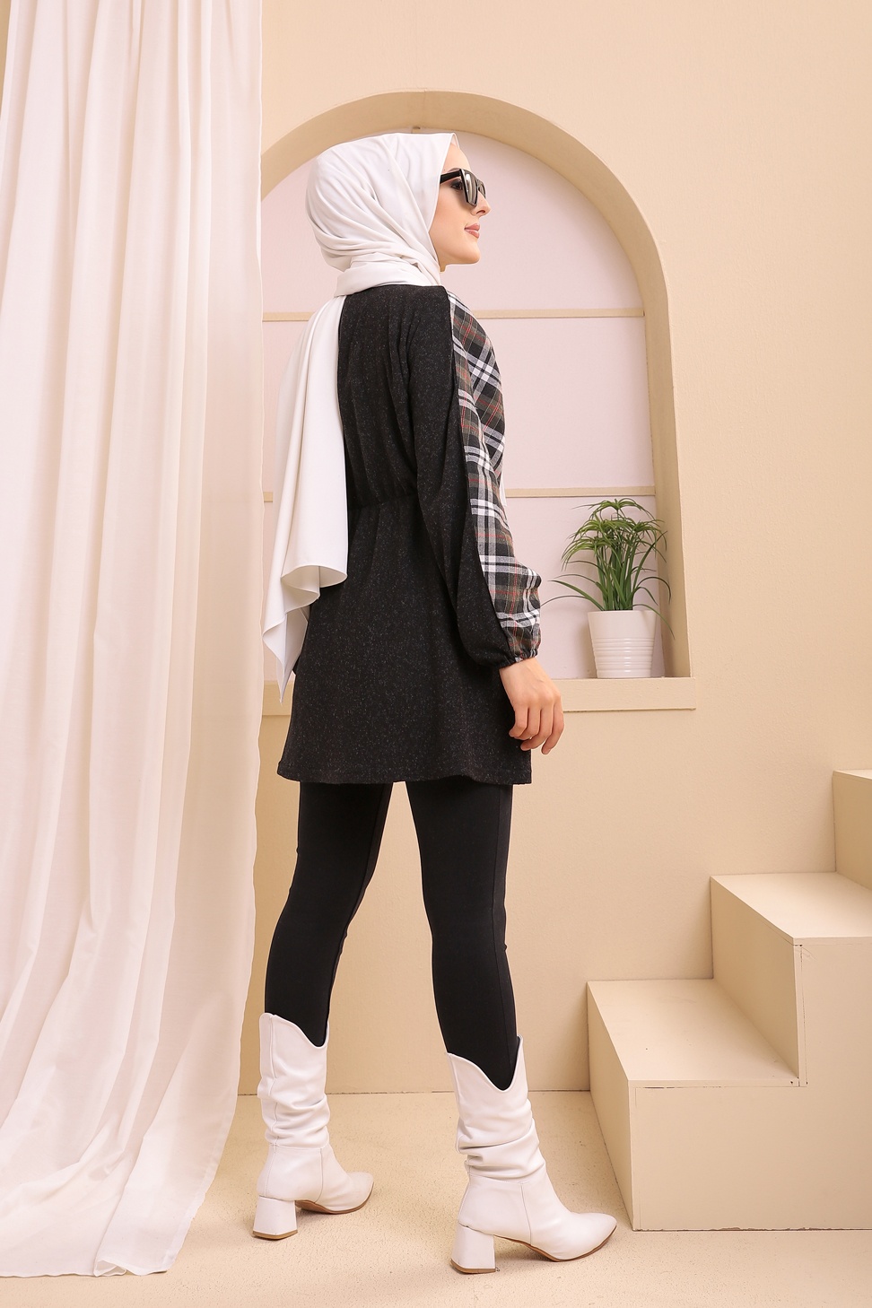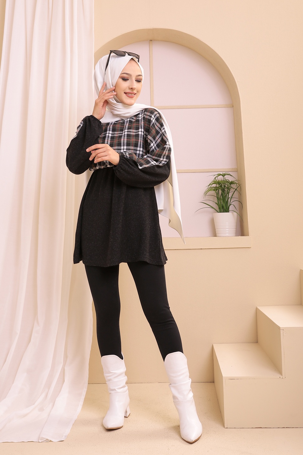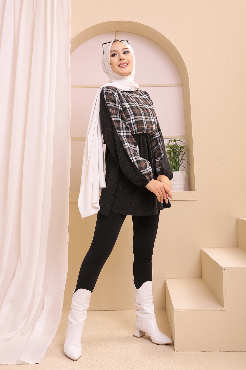 Chemise à carreaux (Boutique vêtements modernes turque pour femme) - Couleur noir et kaki - REF. 35166 (24.90 €)
